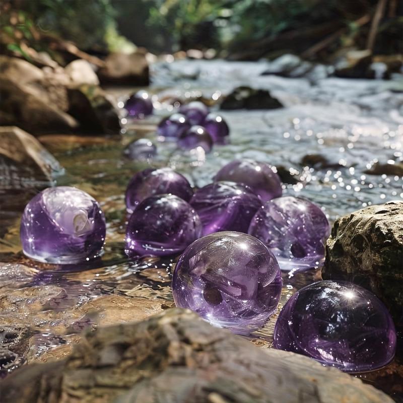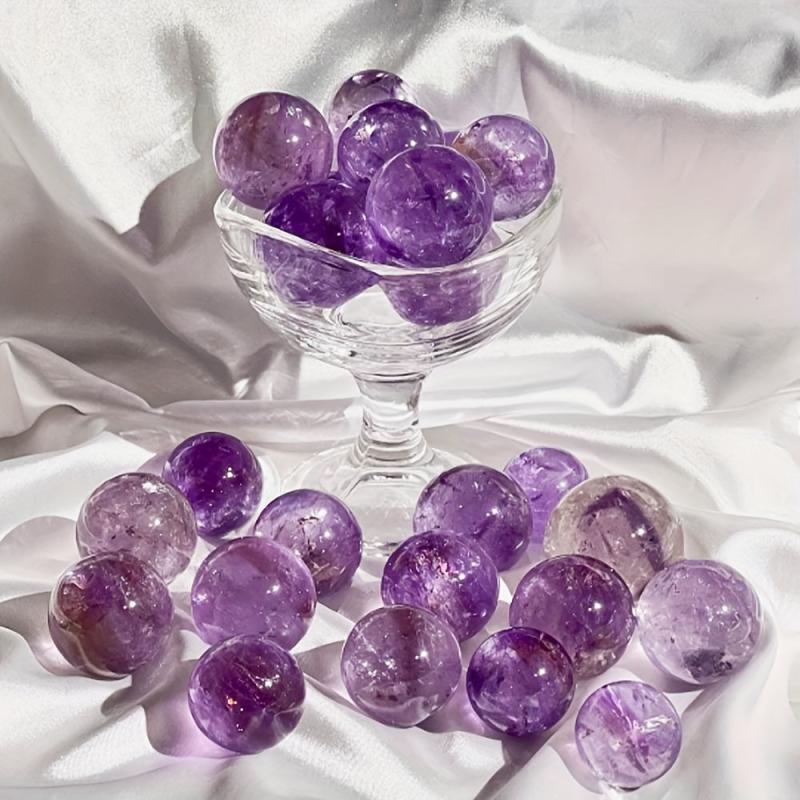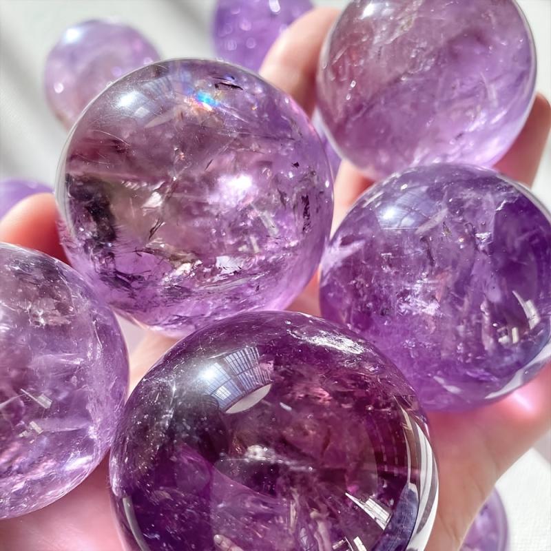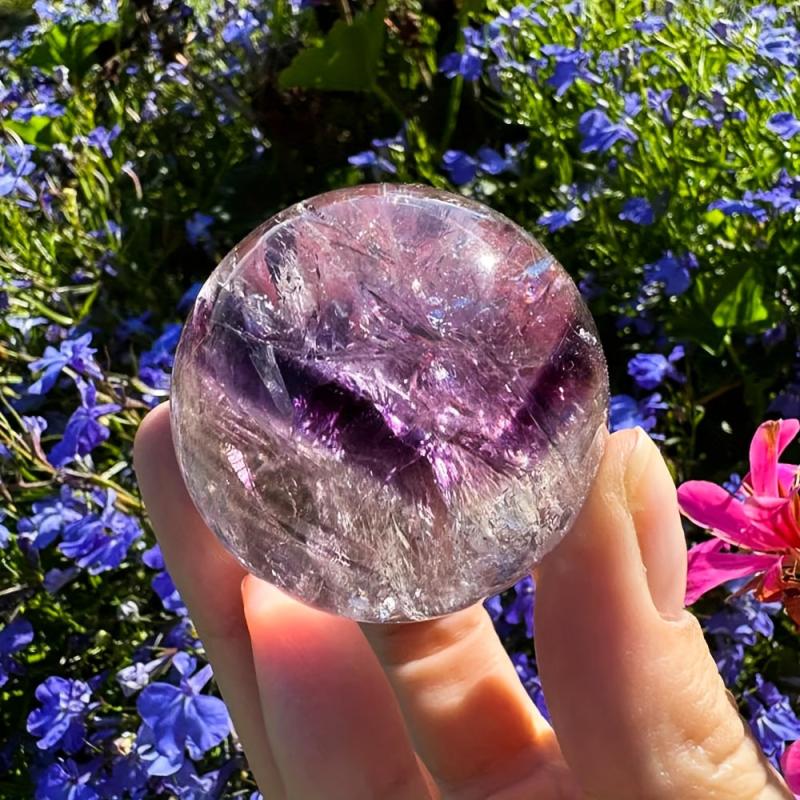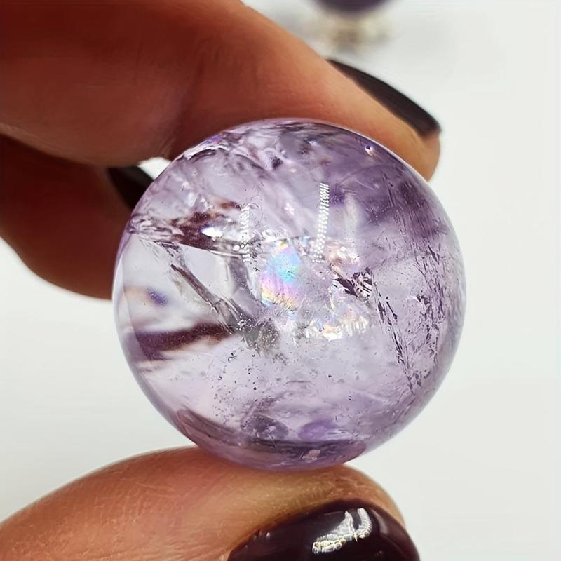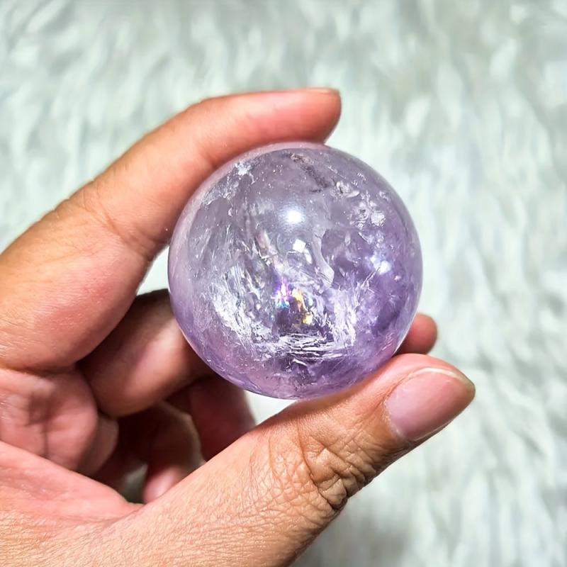 Stunning extra rare Bohemian amethyst sphere with crystal clear appearance and captivating rainbow inclusions. Perfect for jewelry making, home decor, and unique collections.
