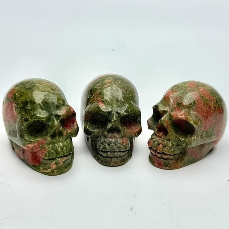 Add a touch of bohemian style with this natural floral crystal skull carving. Perfect for Halloween or as a unique gift for Easter. Ideal for home, office, or as a shoe/boot accessory.