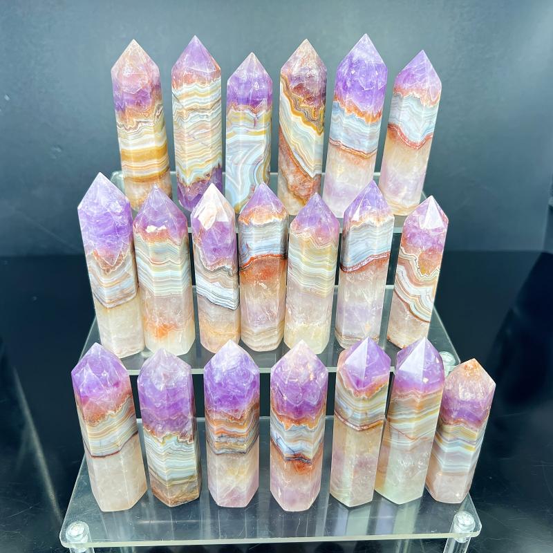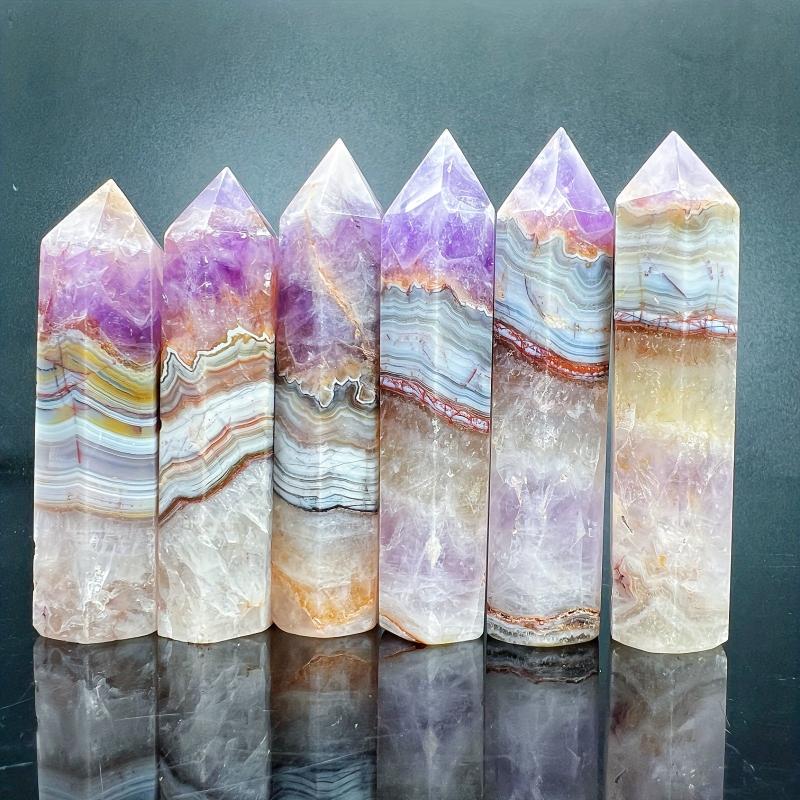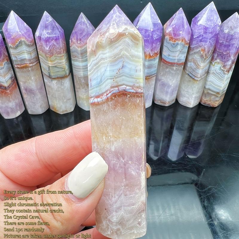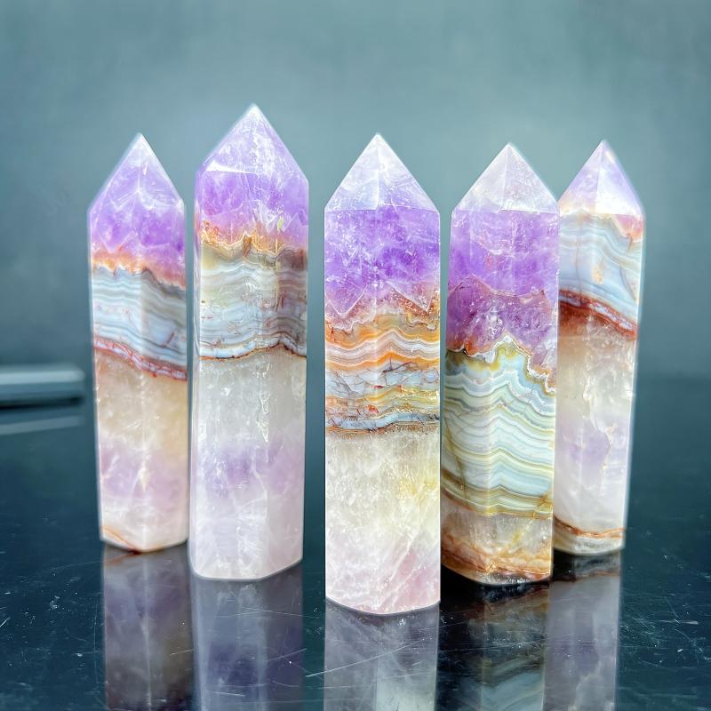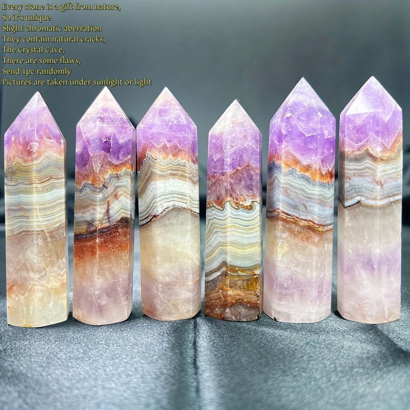 This unique amethyst quartz crystal tower features a natural rock formation with patterns, making it a perfect home decor desk accessory and thoughtful gift.