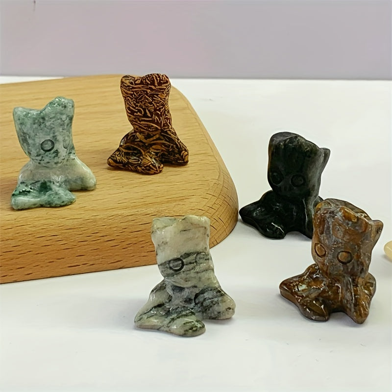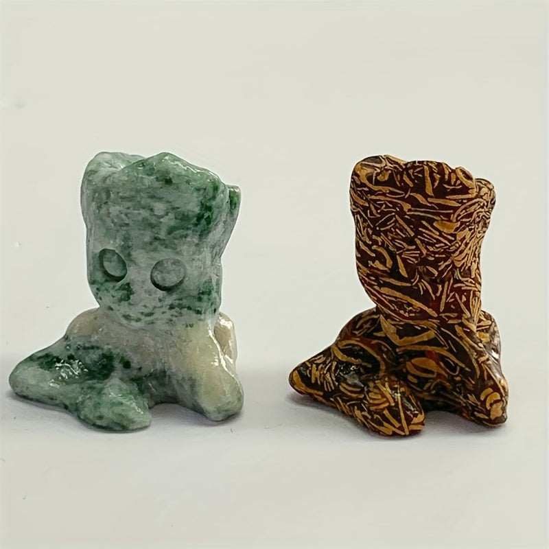 This unique crystal carving features a cartoon tree man character crafted from high-quality healing stones. It is a handcrafted energy stone that comes in many material options.