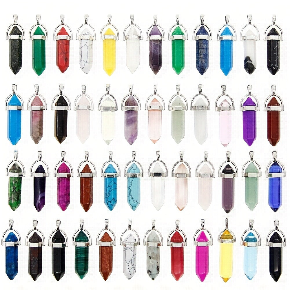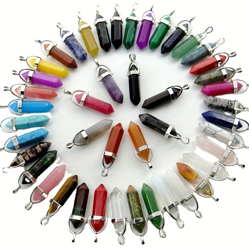 Elevate your style with this set of 50 hexagonal quartz stone pendants, each uniquely shaped and ready to be worn. Keep them organized and safe in the included storage bag.