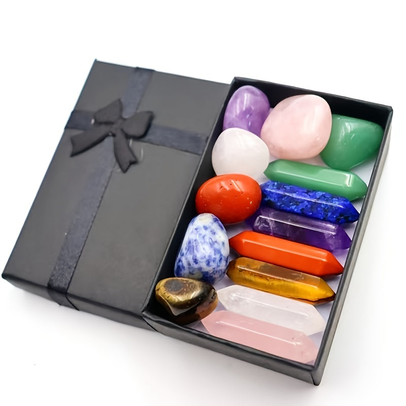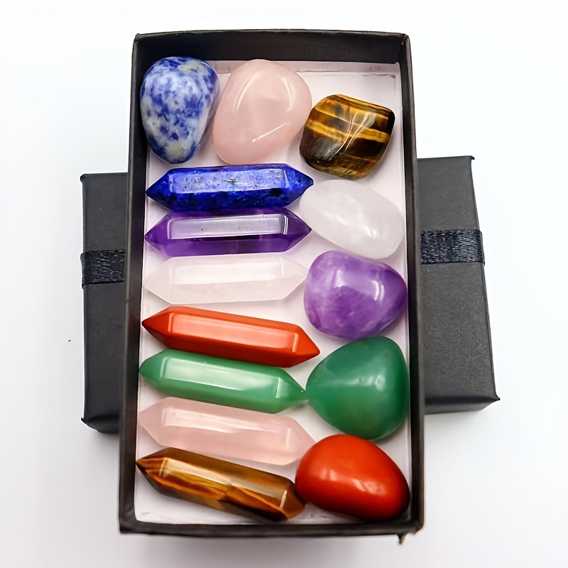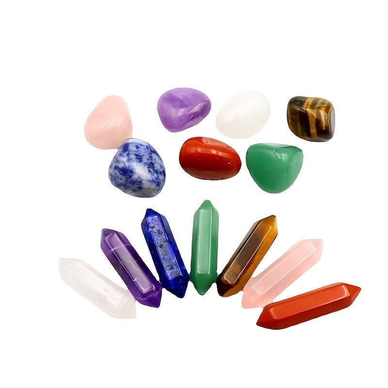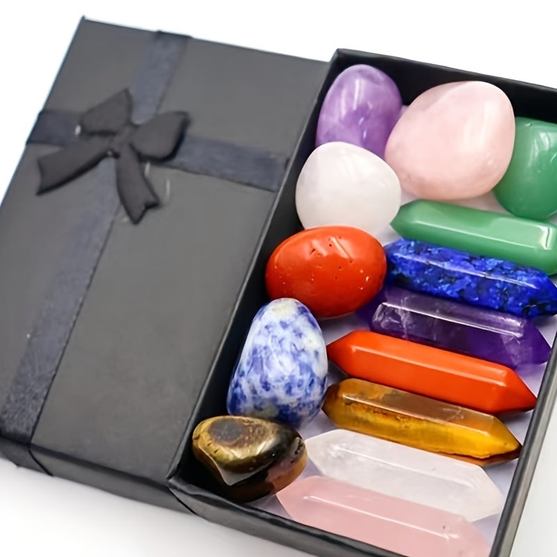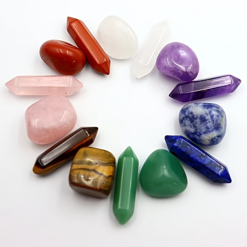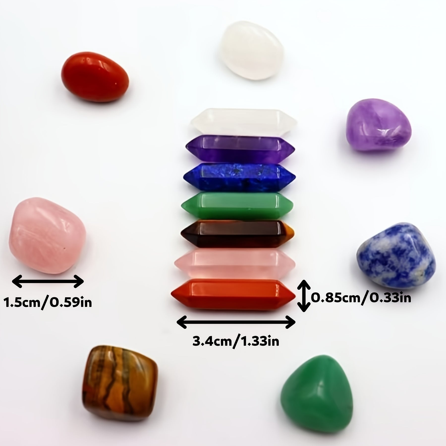Experience the power of real chakra crystals with this set including healing stones, wands, and a crystal tower. Ideal for spiritual meditation and Reiki practices.