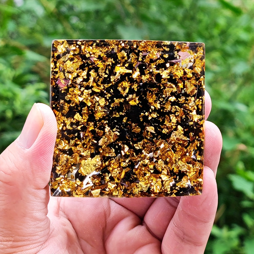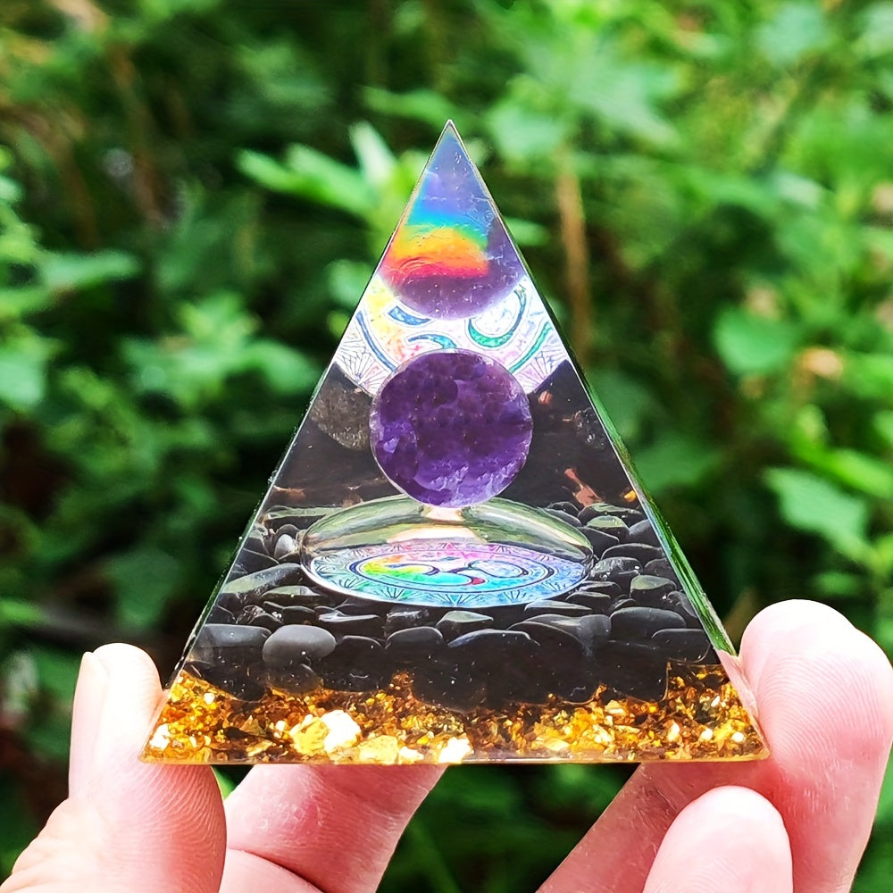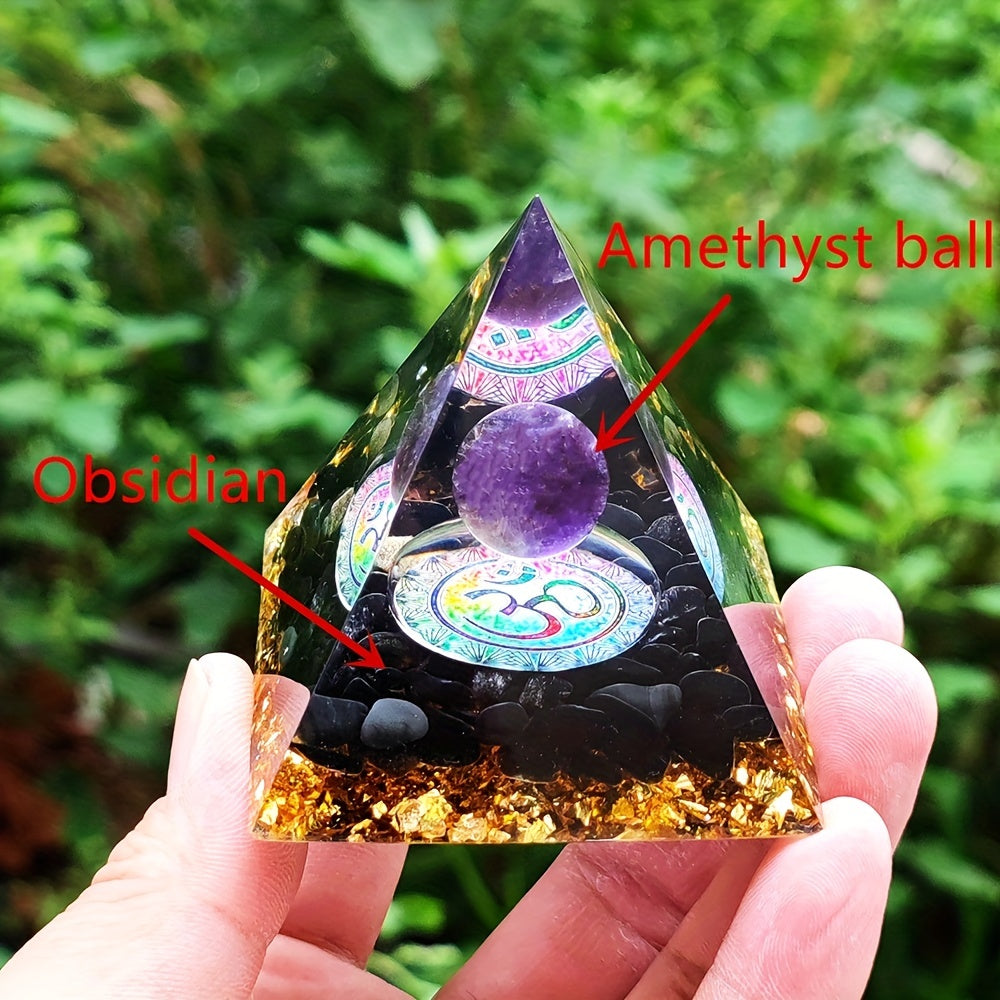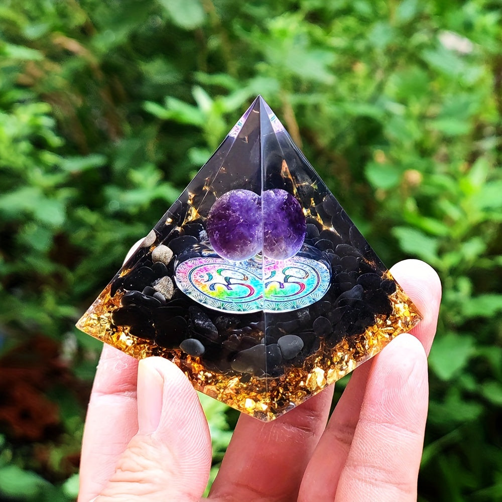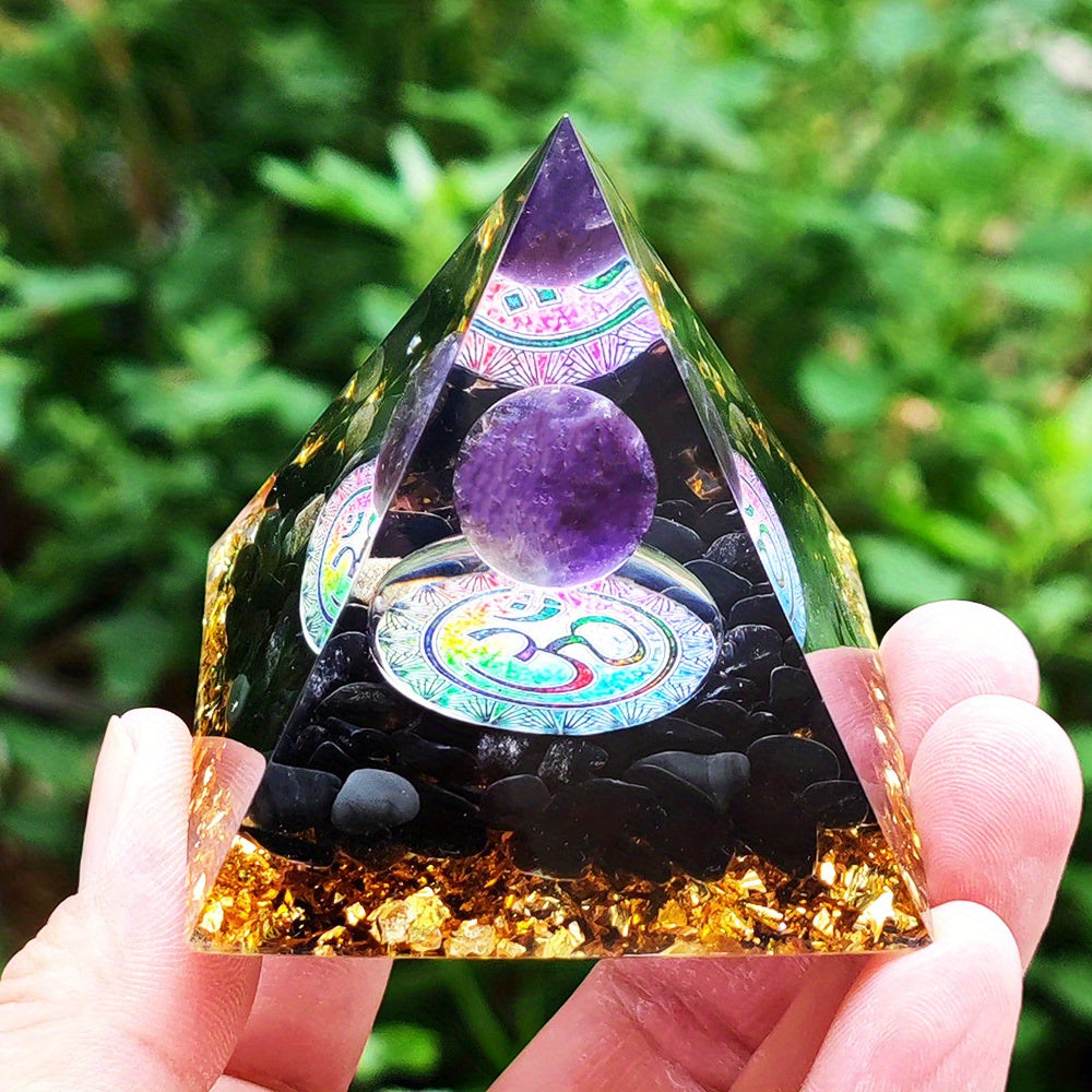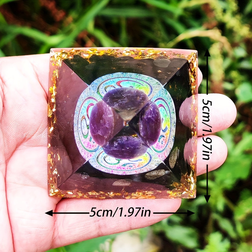 Experience the healing power of this orgonite pyramid with natural crystals for meditation, reiki, and energy balance.