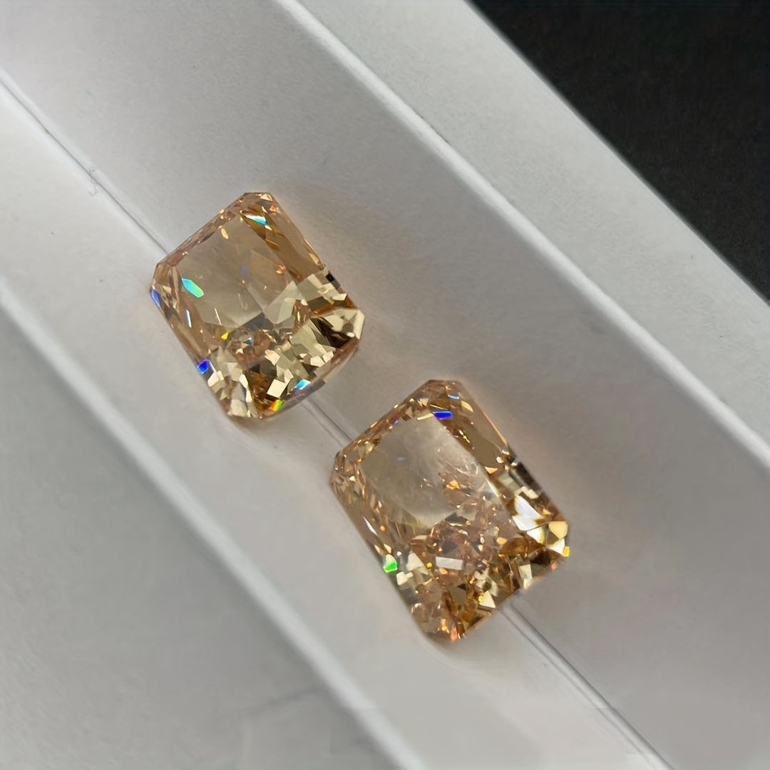 Elegant rectangular chamfered zirconia ice cut zircon bare stone jewelry accessories in champagne color.
