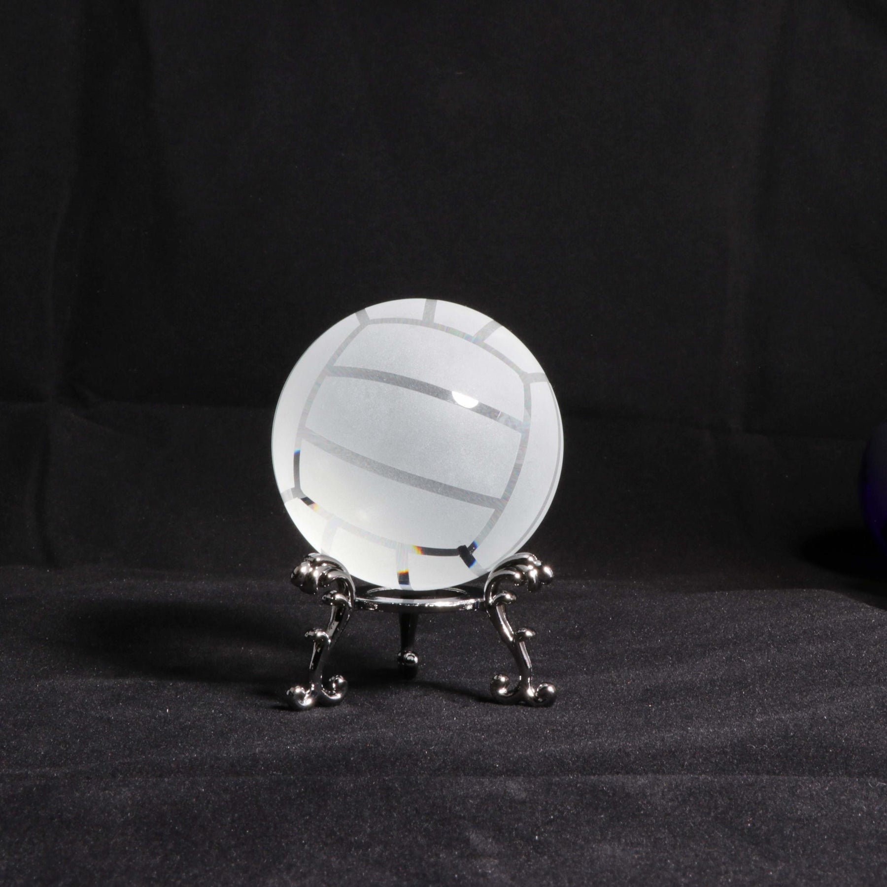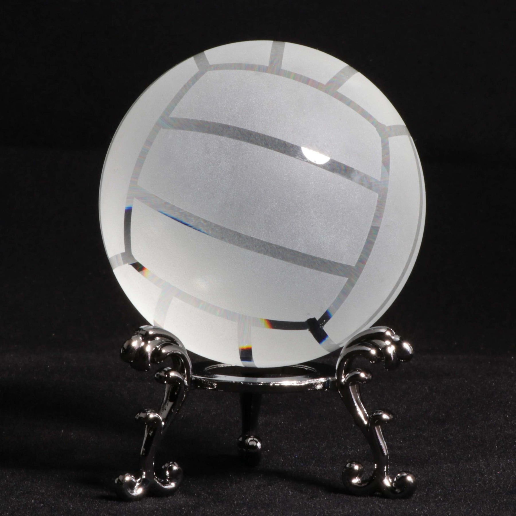 Add a touch of elegance to your workspace with this exquisite clear crystal volleyball paperweight. Show off your love for the sport with this glass sport ball that comes with a base stand.