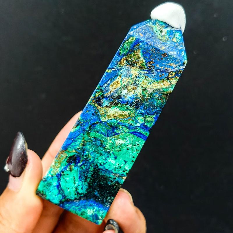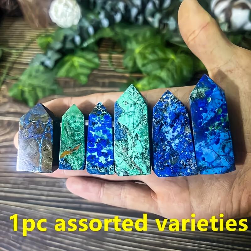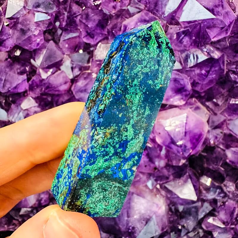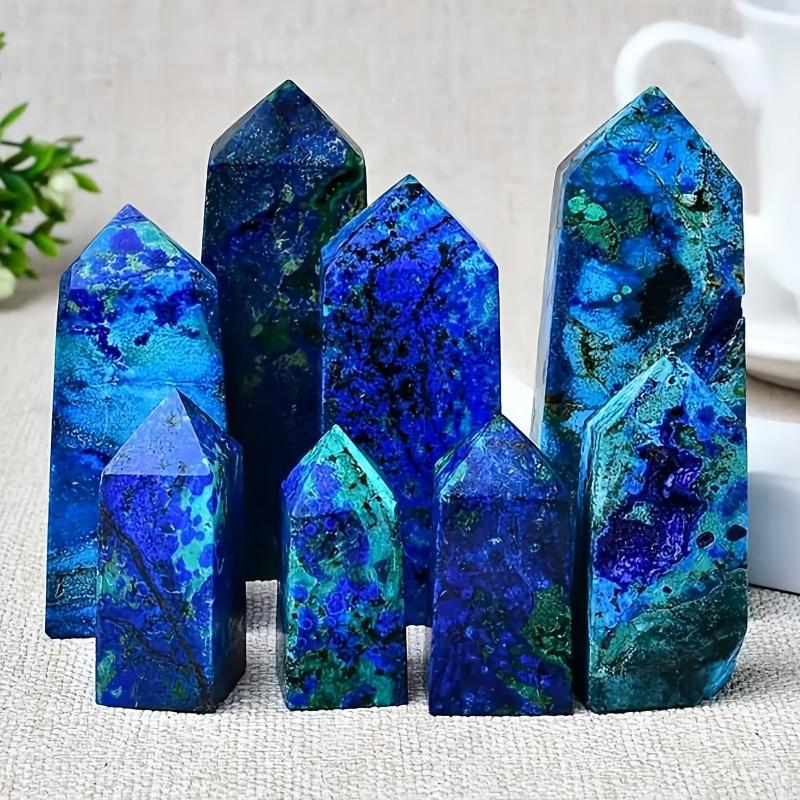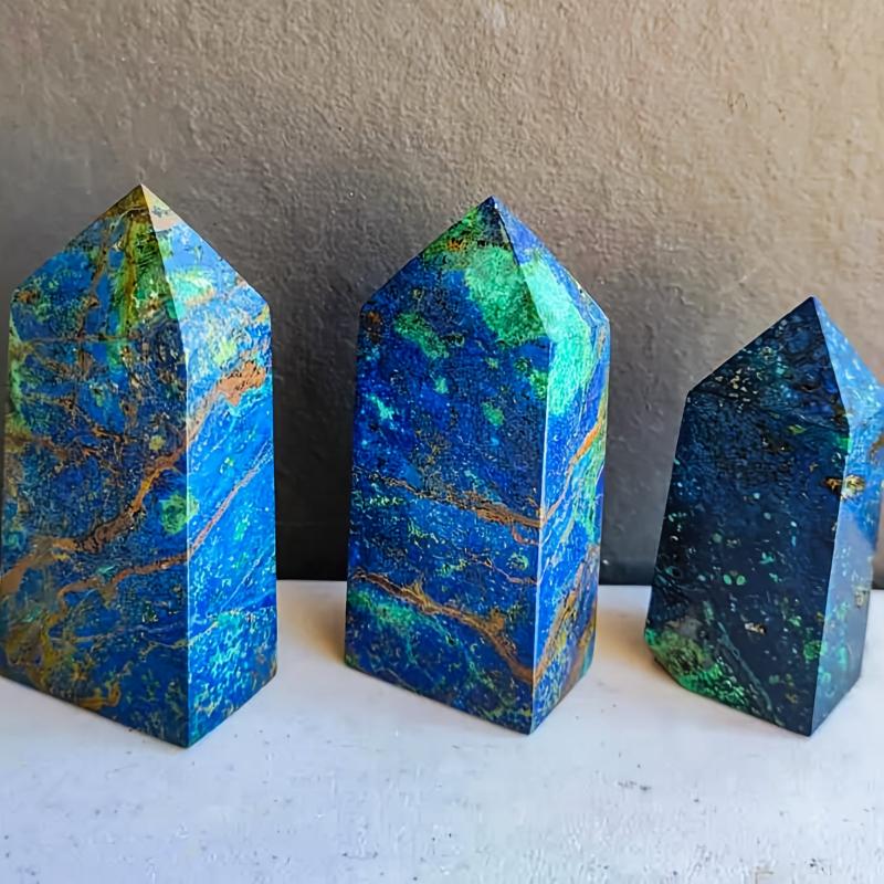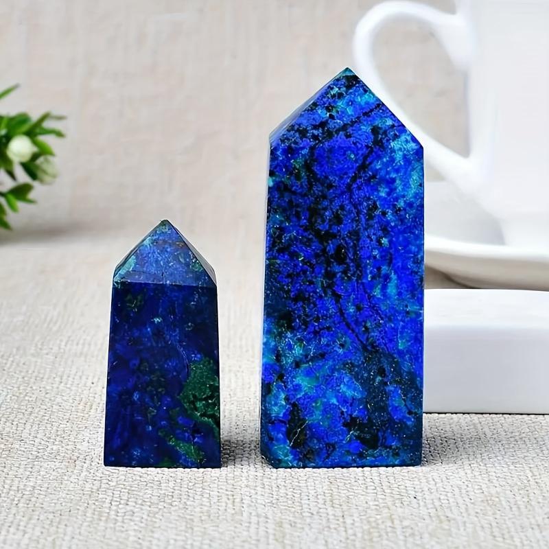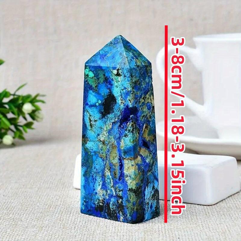 This high-end natural copper mineral and peacock stone crystal tower features vibrant and green irregular patterns, making it a beautiful and unique addition to your home decor and desk accessories.