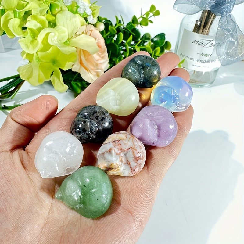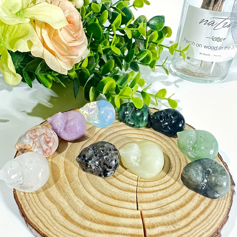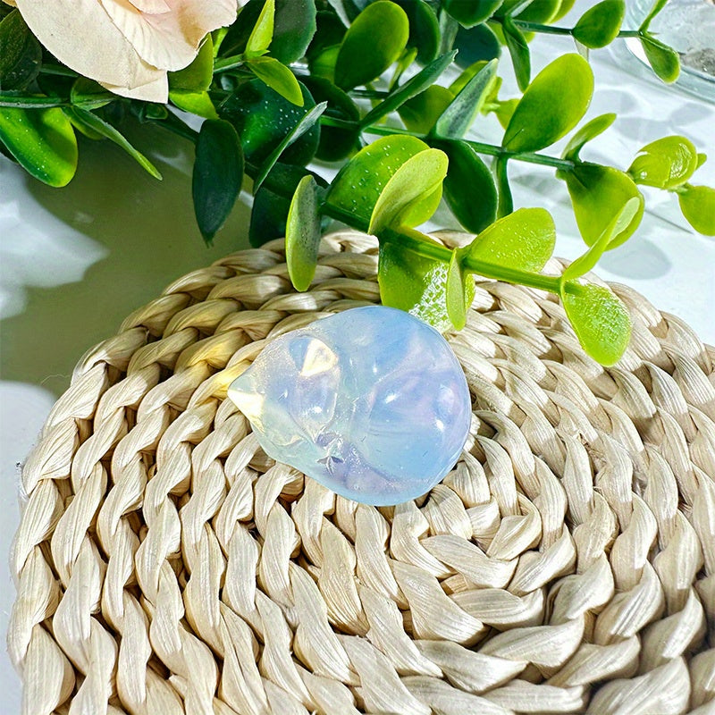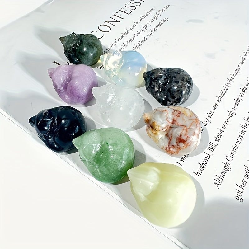 This crystal carved sleeping cat statue is a beautiful pocket decoration made from bare stone crystal, perfect for meditation and healing. It can also be a lovely gift or a kid's toy.
