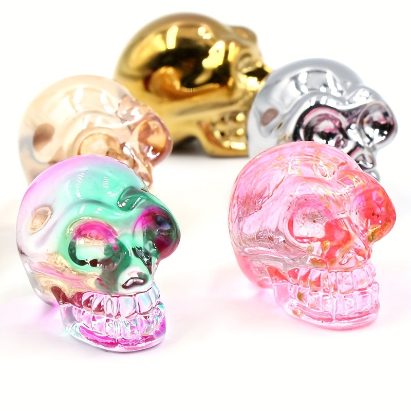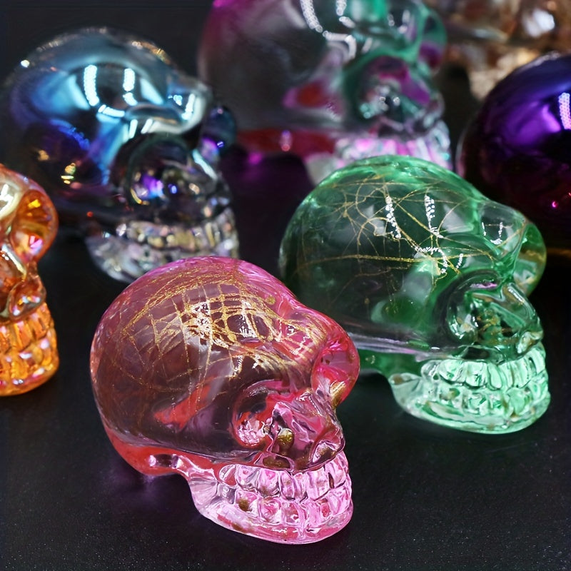 This crystal carving skull ornament is a spooky addition to your Halloween decor. The intricate design and electroplating craftsmanship bring out the eerie detail of a human skull ghost head.