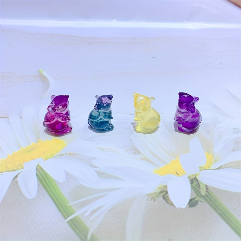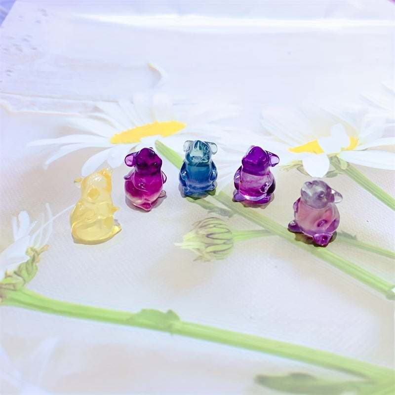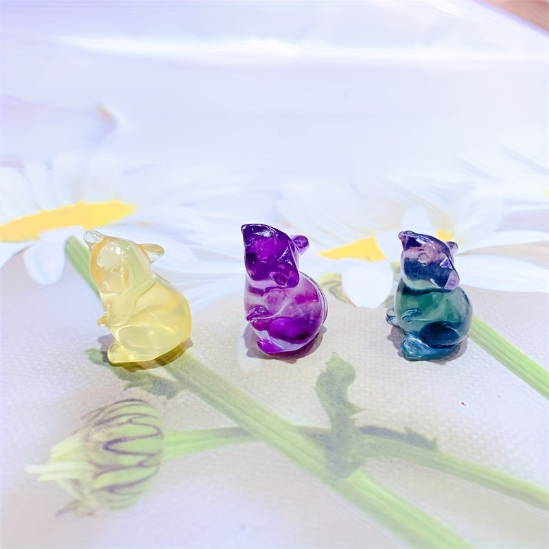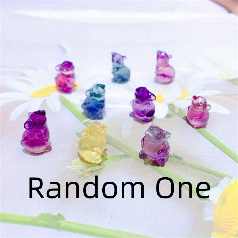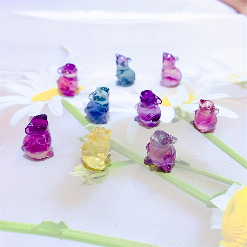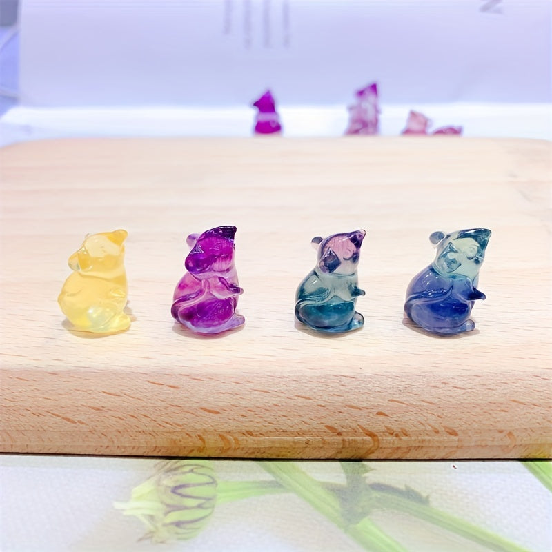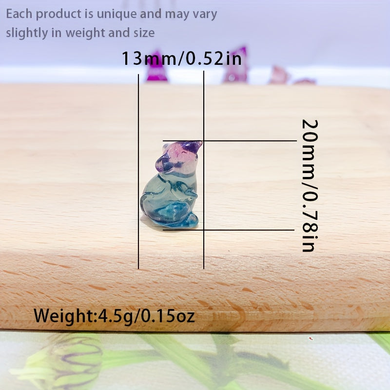 Add a touch of whimsy to your home decor with this beautiful 20mm rainbow fluorite crystal mouse. Handcrafted with care, this colorful animal figurine is perfect for adding a unique and elegant touch to any room.
