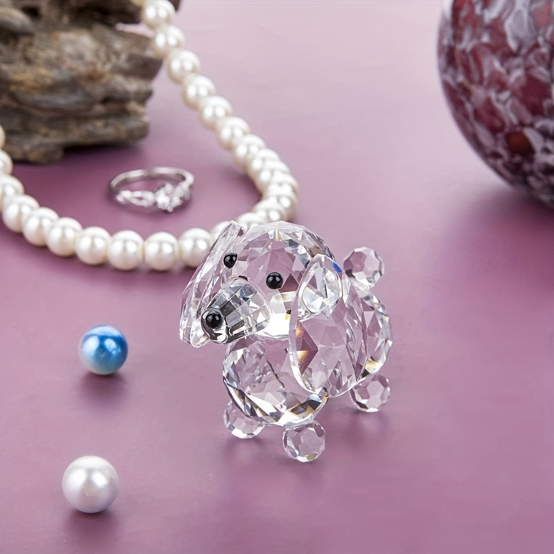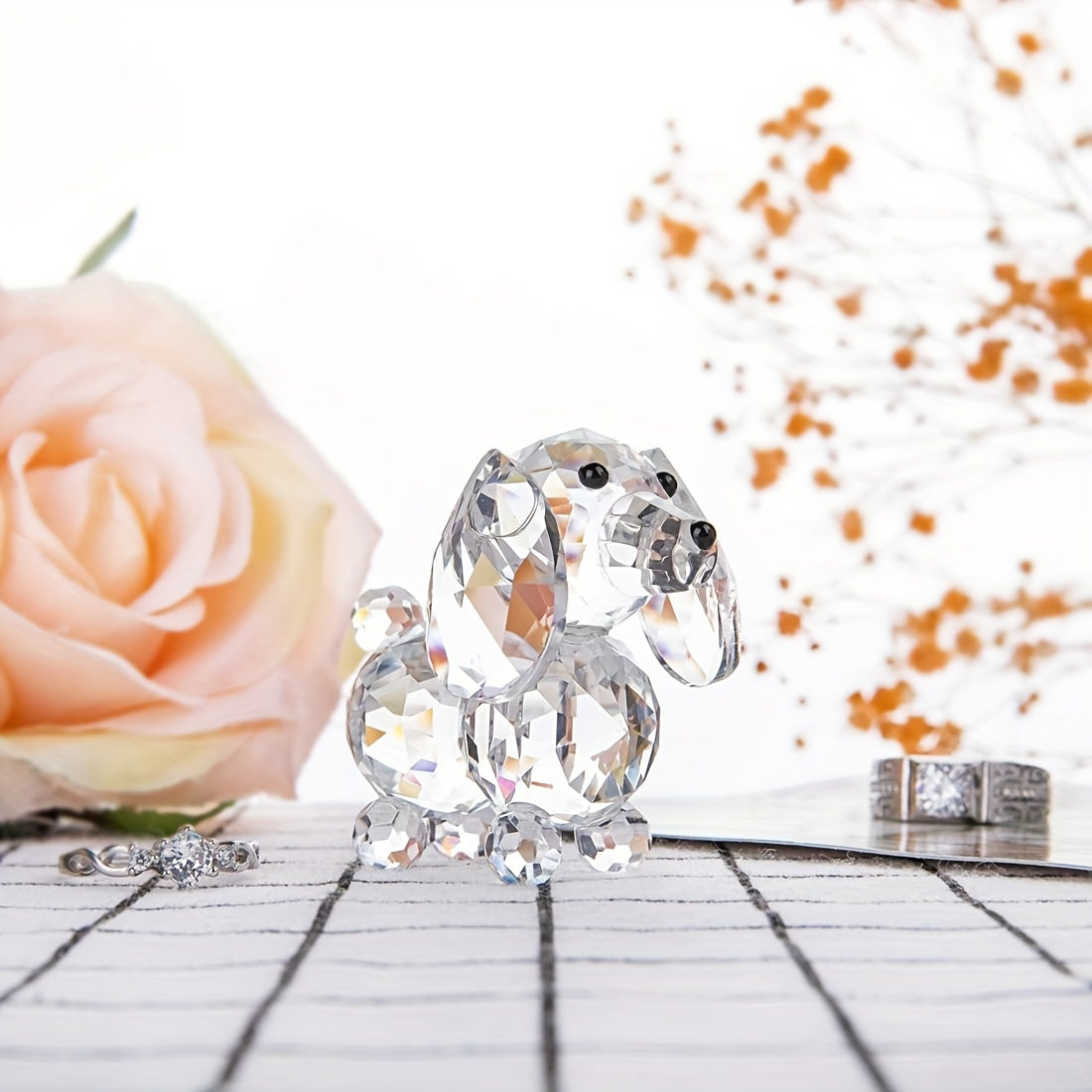This beautiful crystal dog figurine is a stunning cut glass ornament that adds elegance to any space. Perfect for collectors or as a decorative piece for home or office.