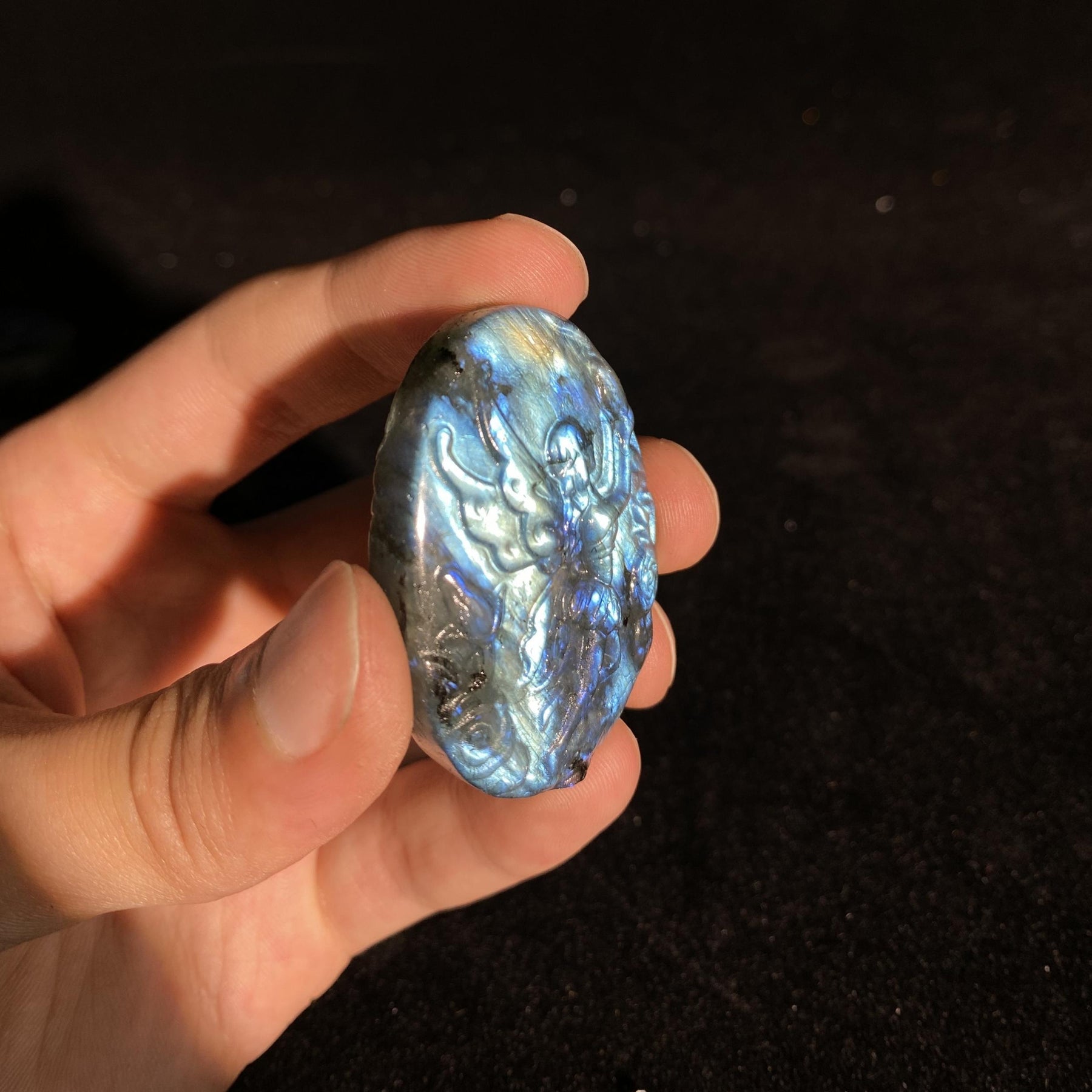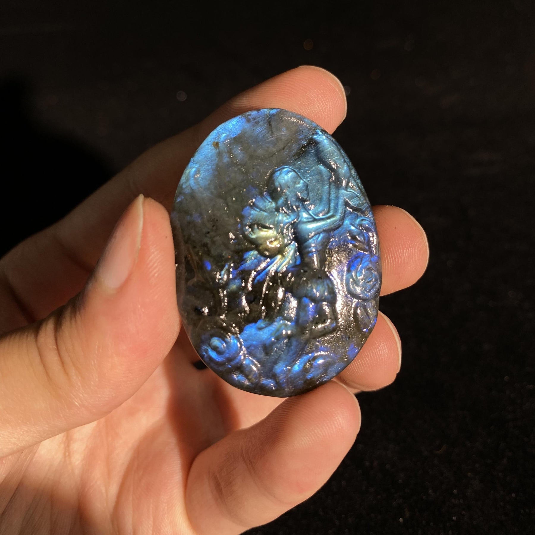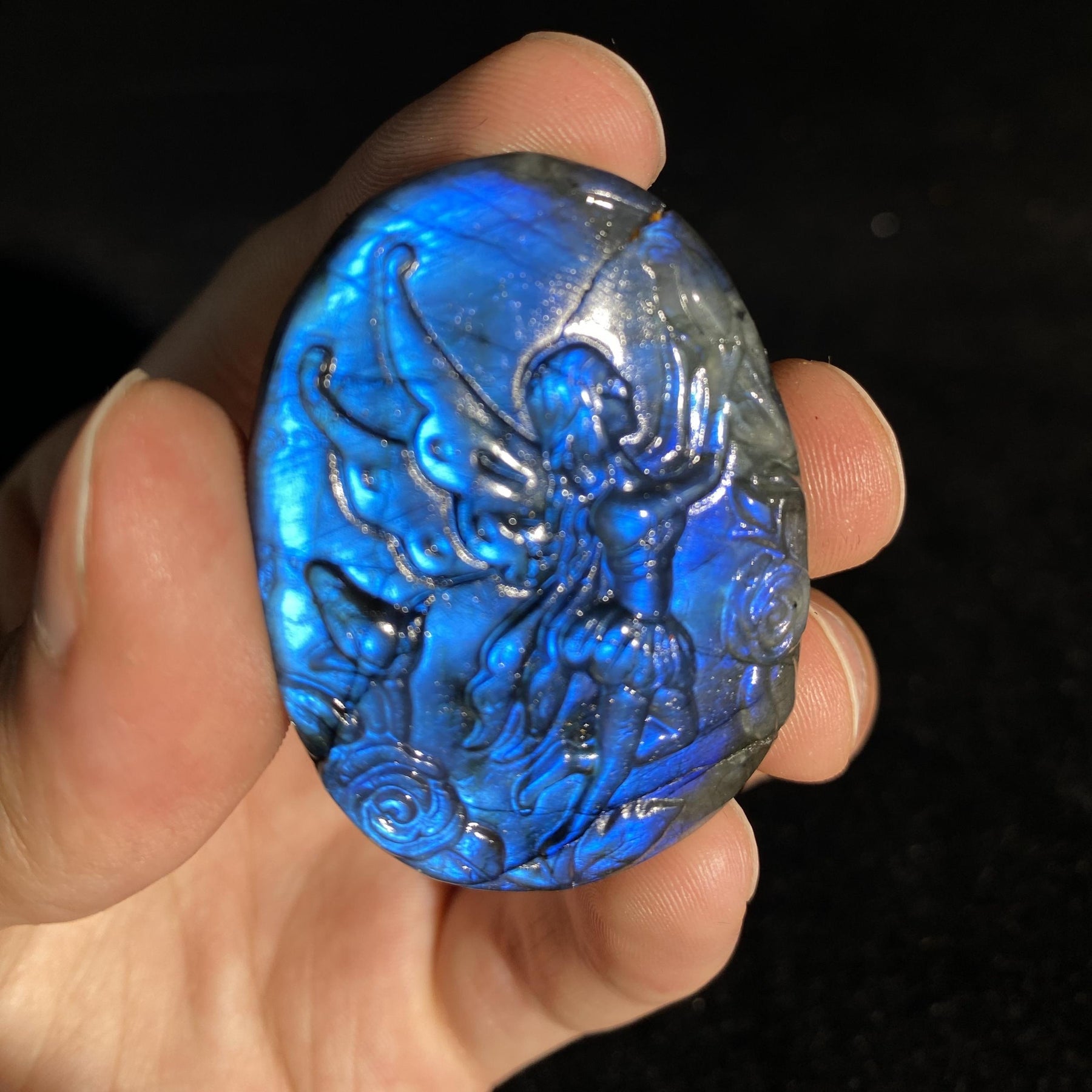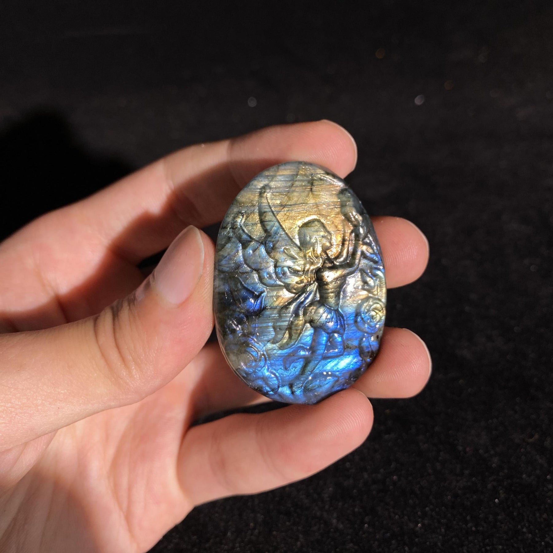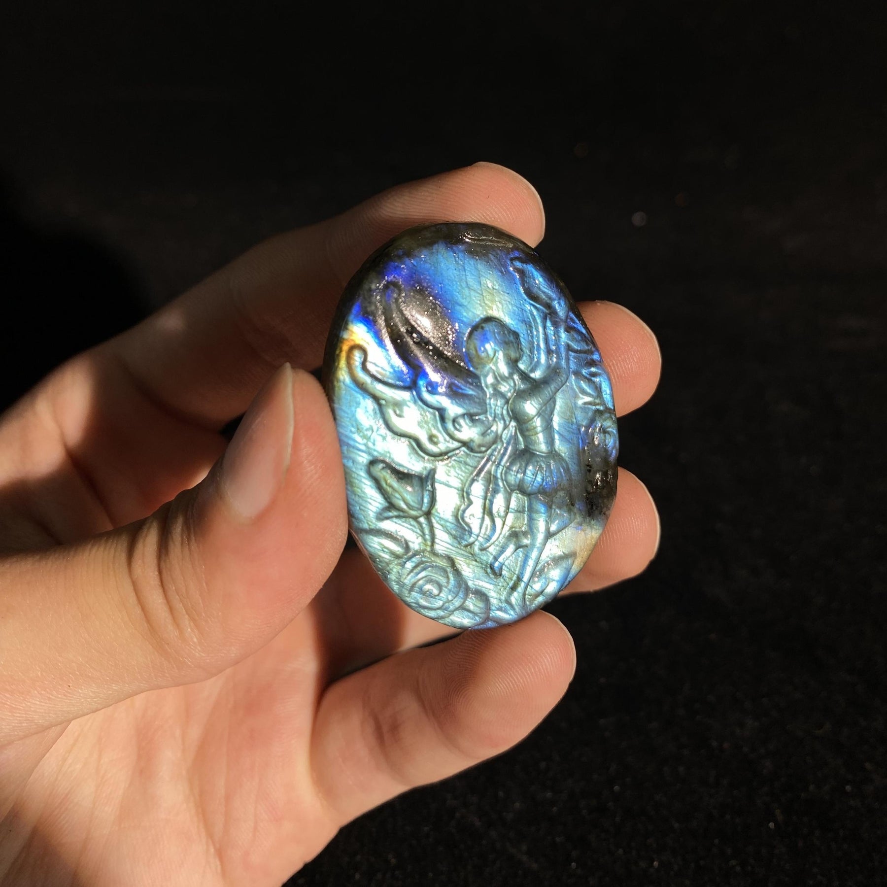 This exquisite crystal pendant features a beautifully carved fairy pattern, perfect for adding a touch of magic to your jewelry creations or home decor.