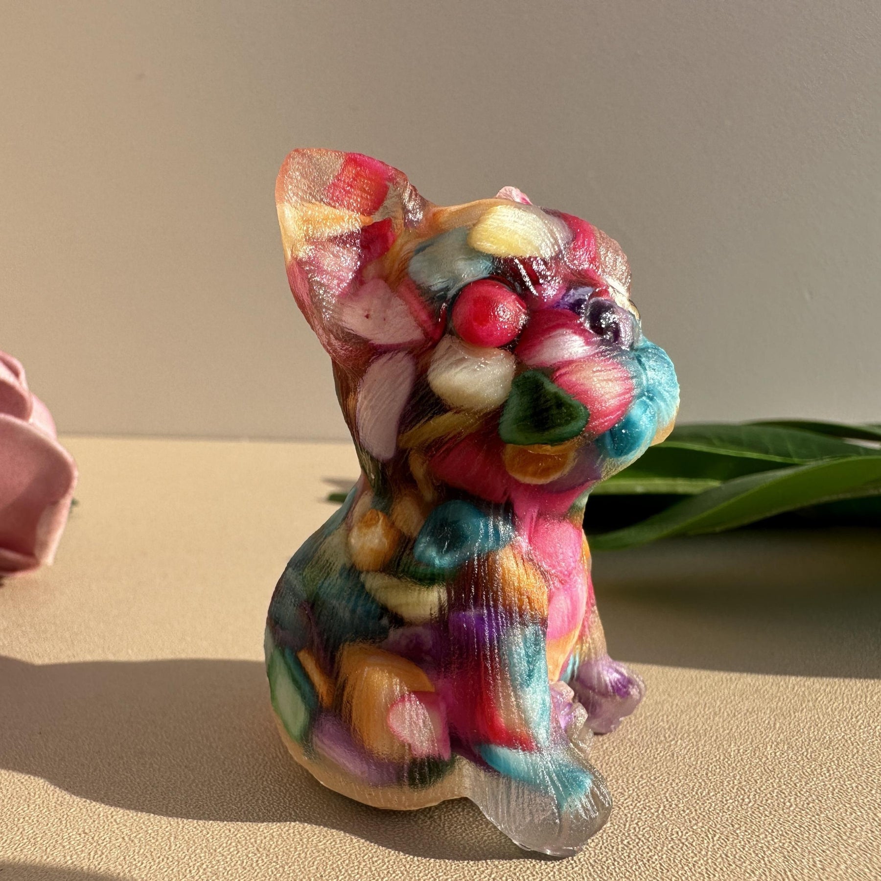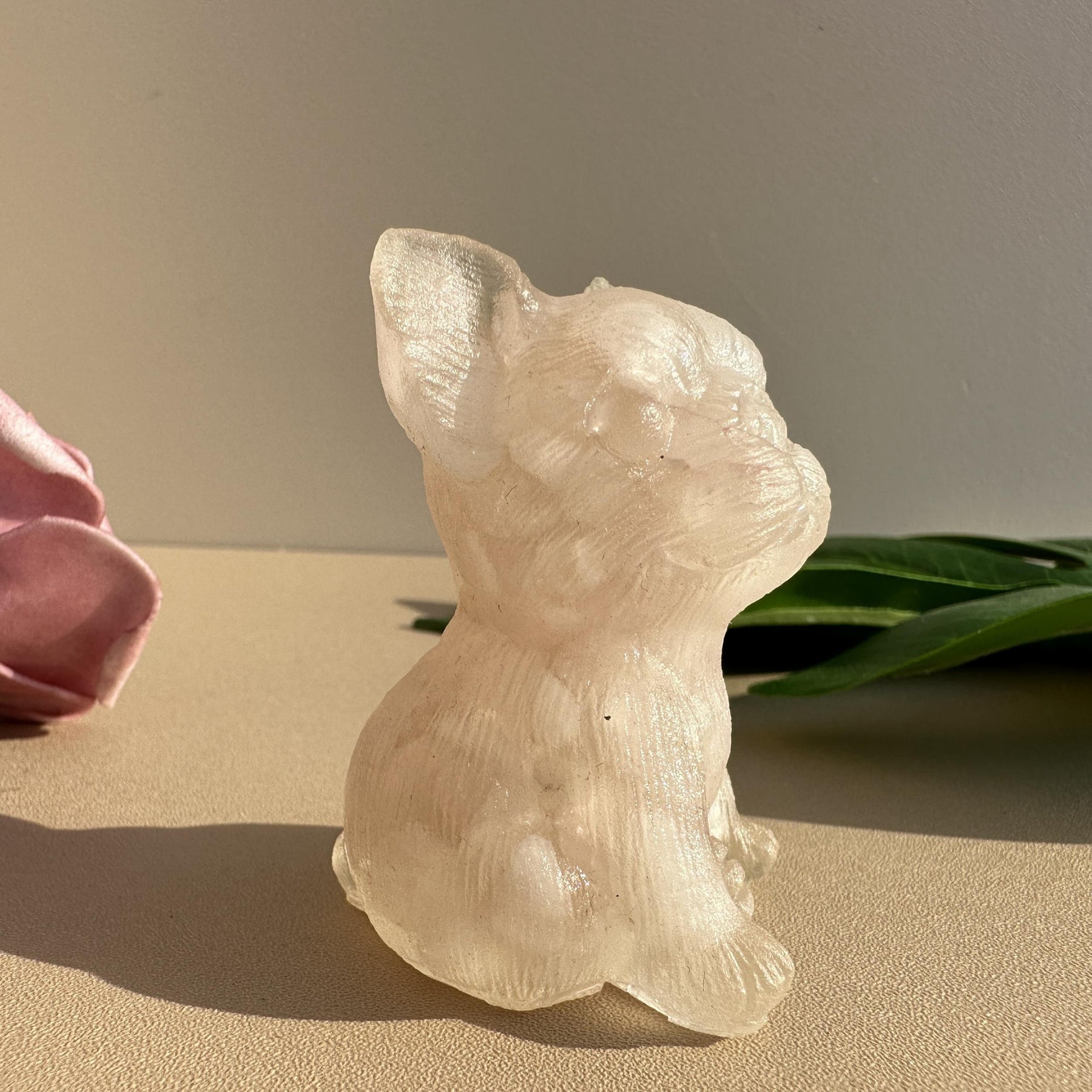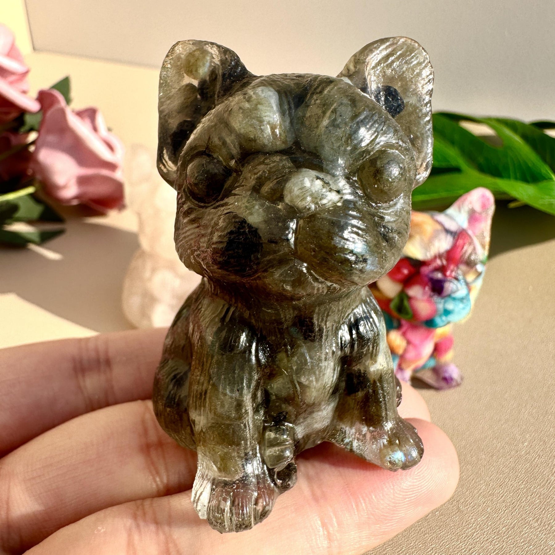 This stunning crystal French Bulldog resin ornament features a crystal ball seat. It is a perfect gift or decoration for dog lovers.