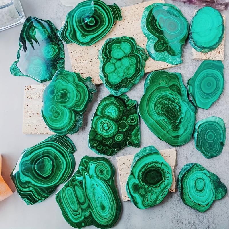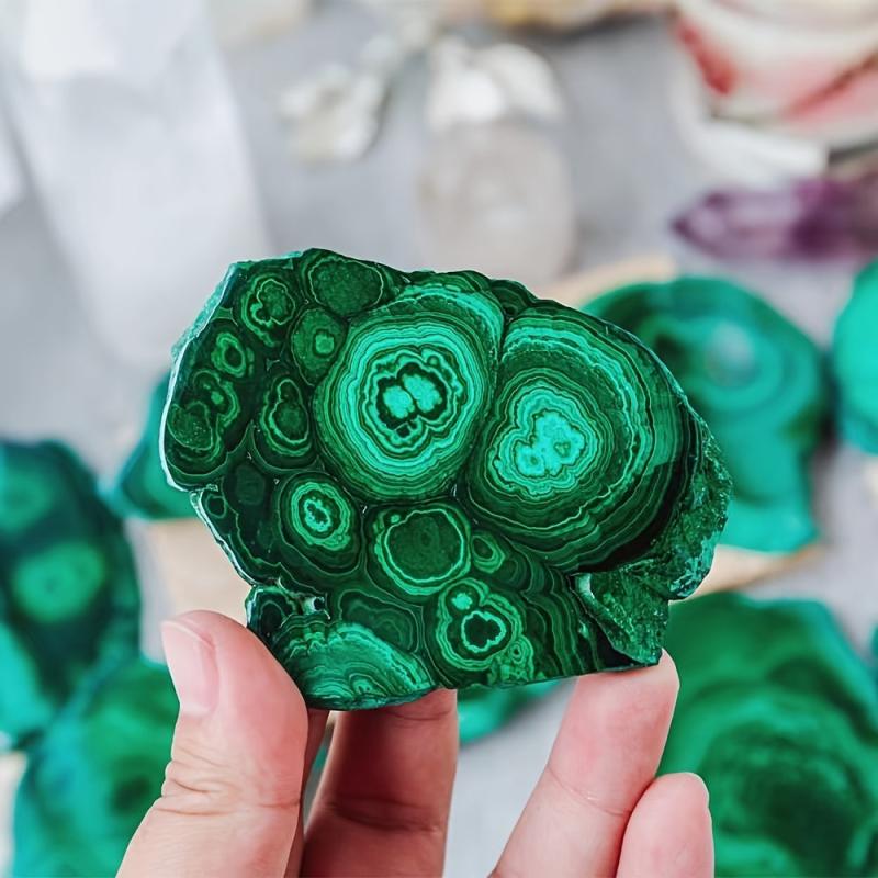 Add a touch of natural beauty to your space with this Malachite raw stone slab. Perfect for decorating your home or office, this mineral specimen features stunning green eyes that will catch the light and add a unique touch to any room.