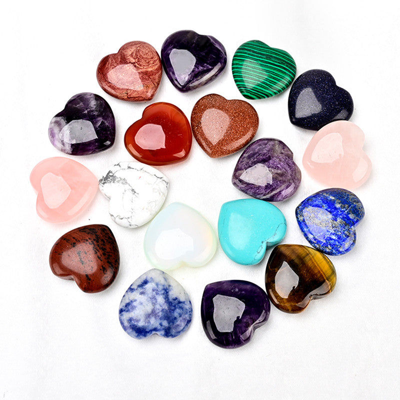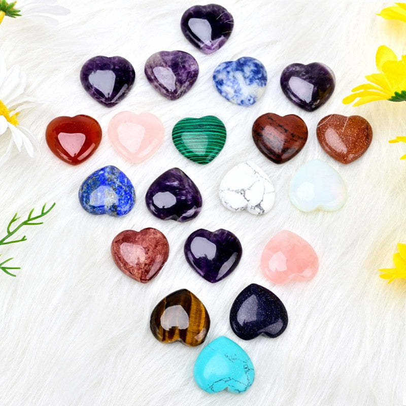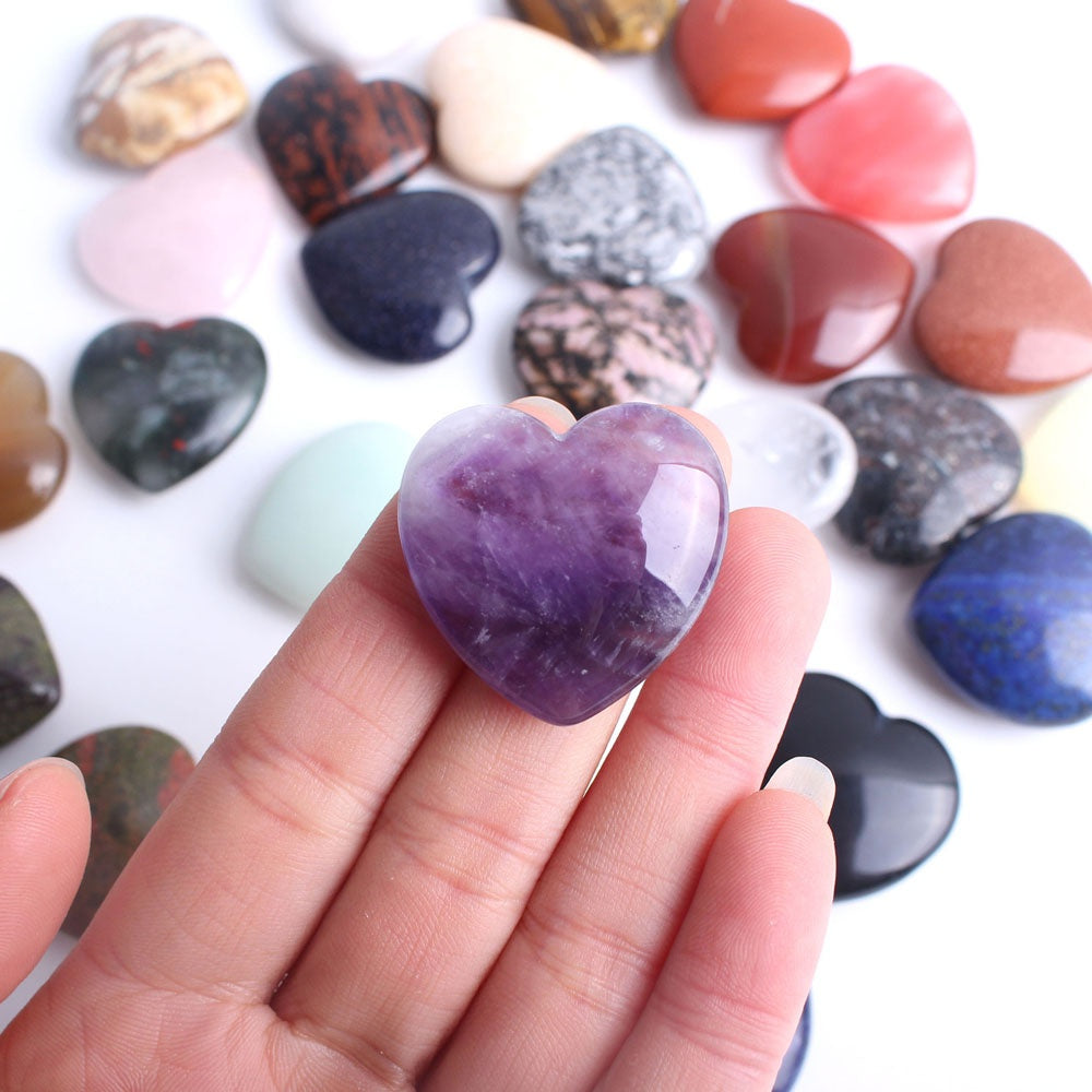 Explore the beauty of natural crystal heart shaped stones with this assorted set. Perfect for crafting love ornaments and DIY projects. These non-porous gemstones are ideal for various crafts.