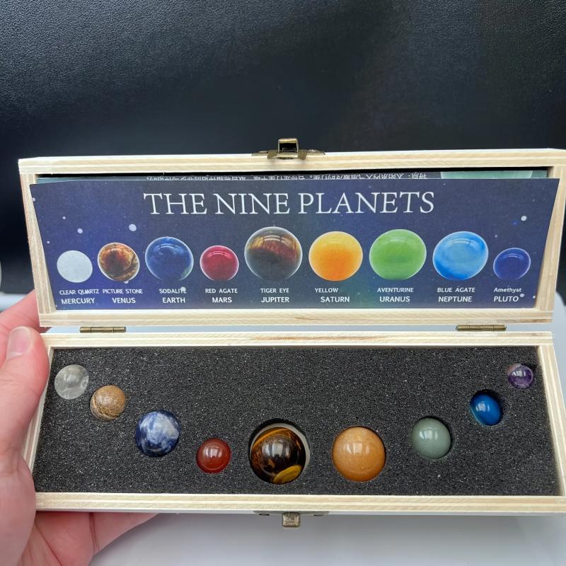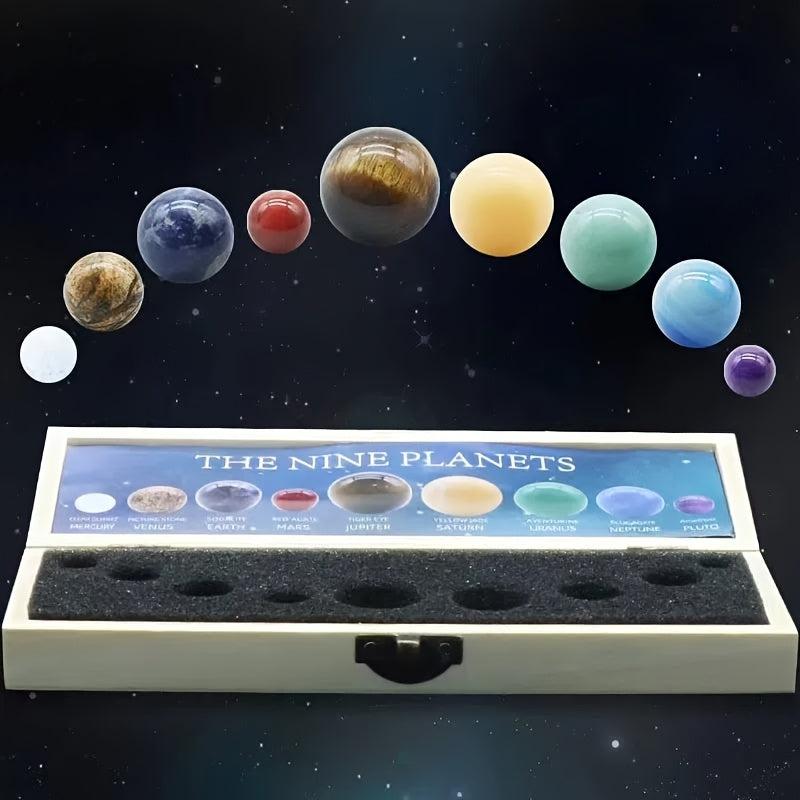 Explore the universe with this set of crystal mineral specimens representing the nine planets in our solar system. Each stone reflects the unique characteristics of a specific planet, making it a perfect educational and decorative gift.