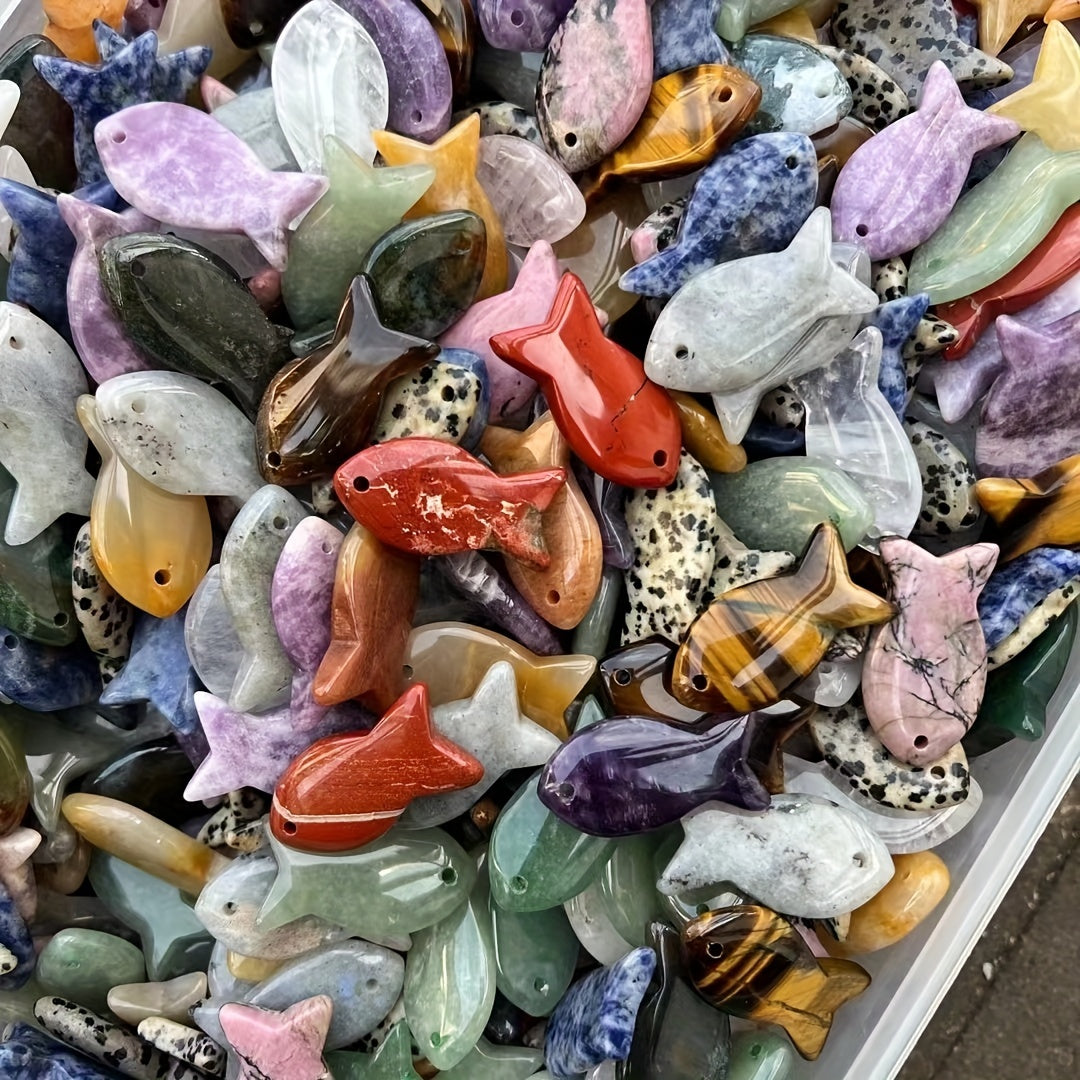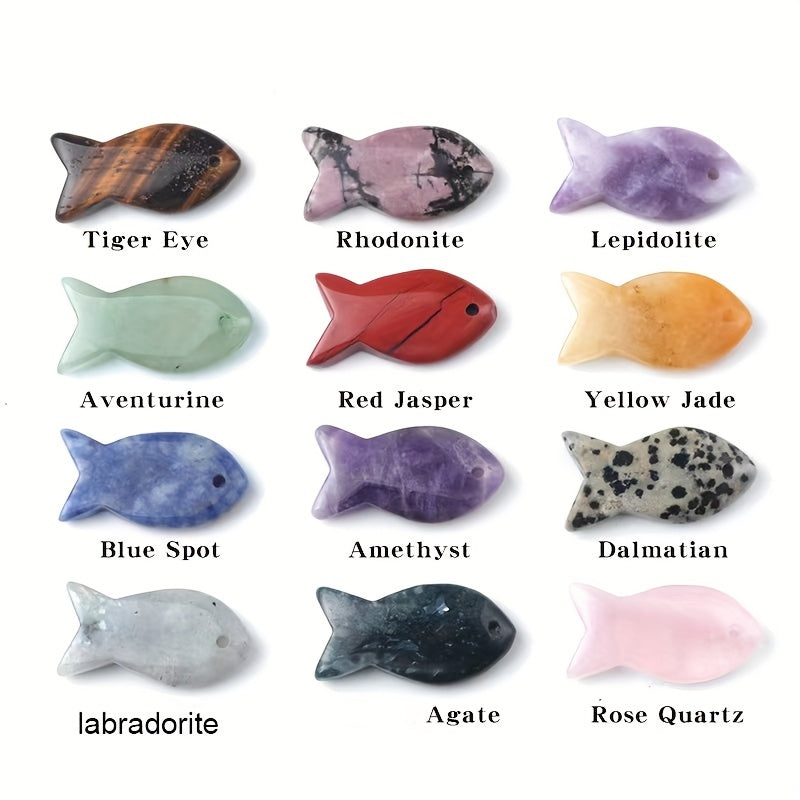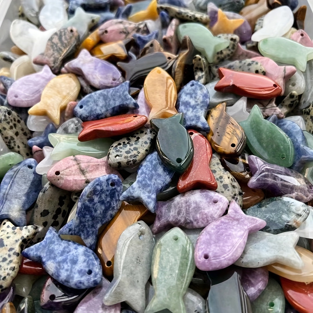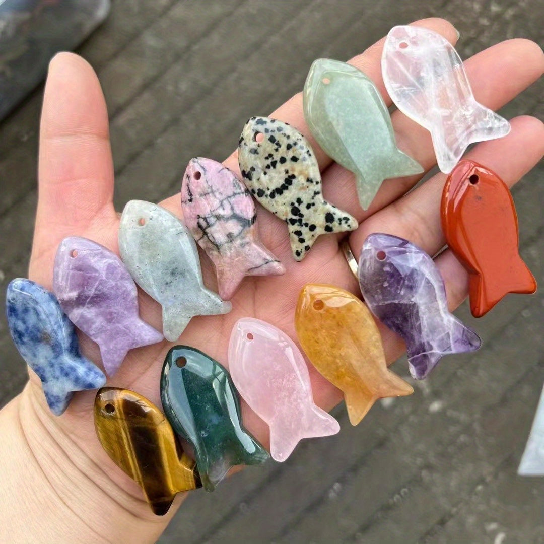 This crystal mini fish animal carving is made from natural gemstone, perfect for jewelry making, decoration, or DIY projects.