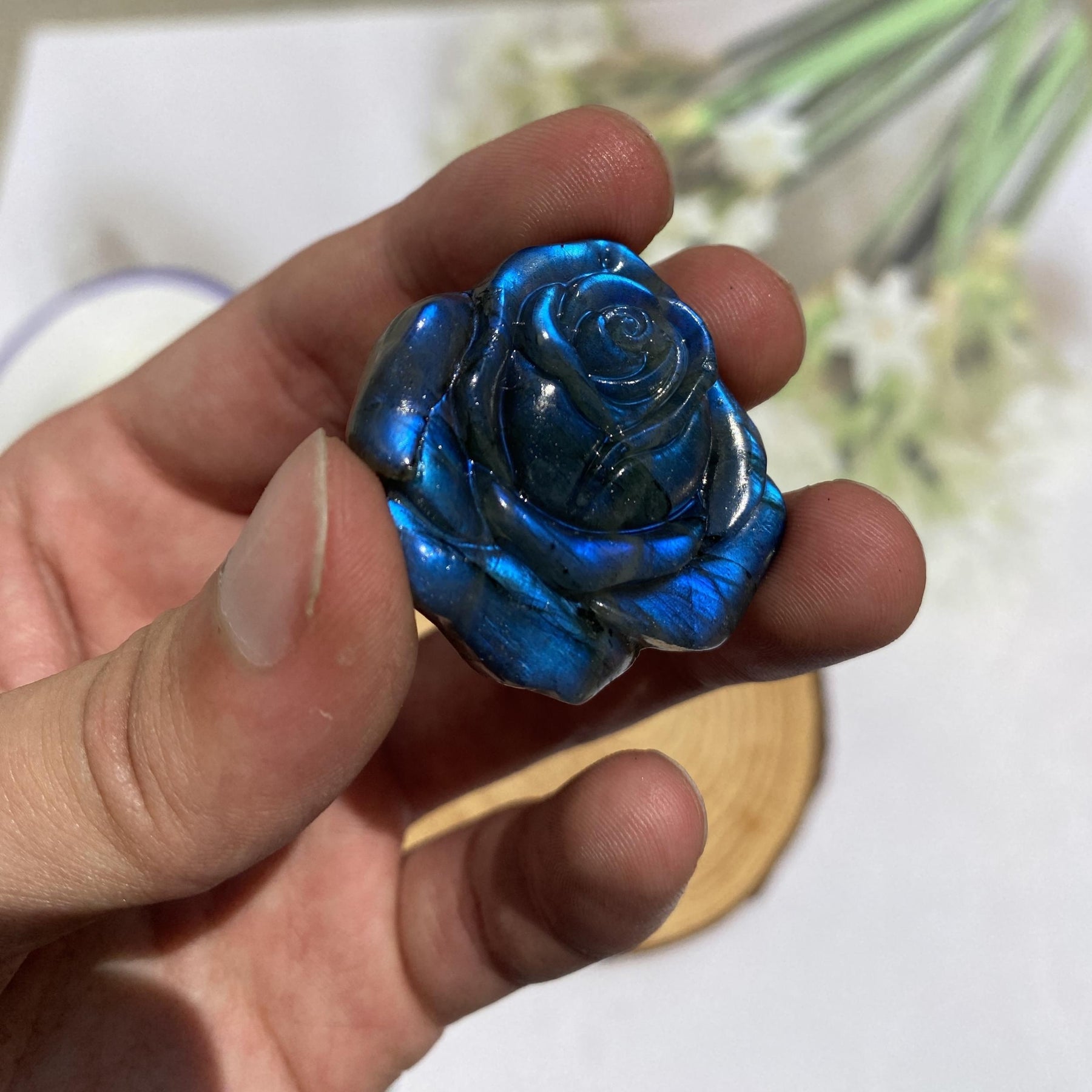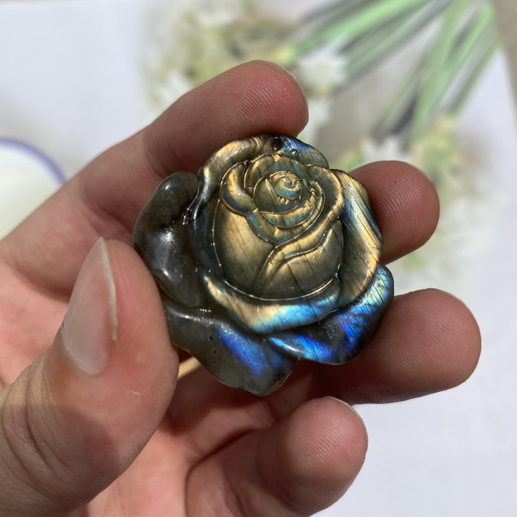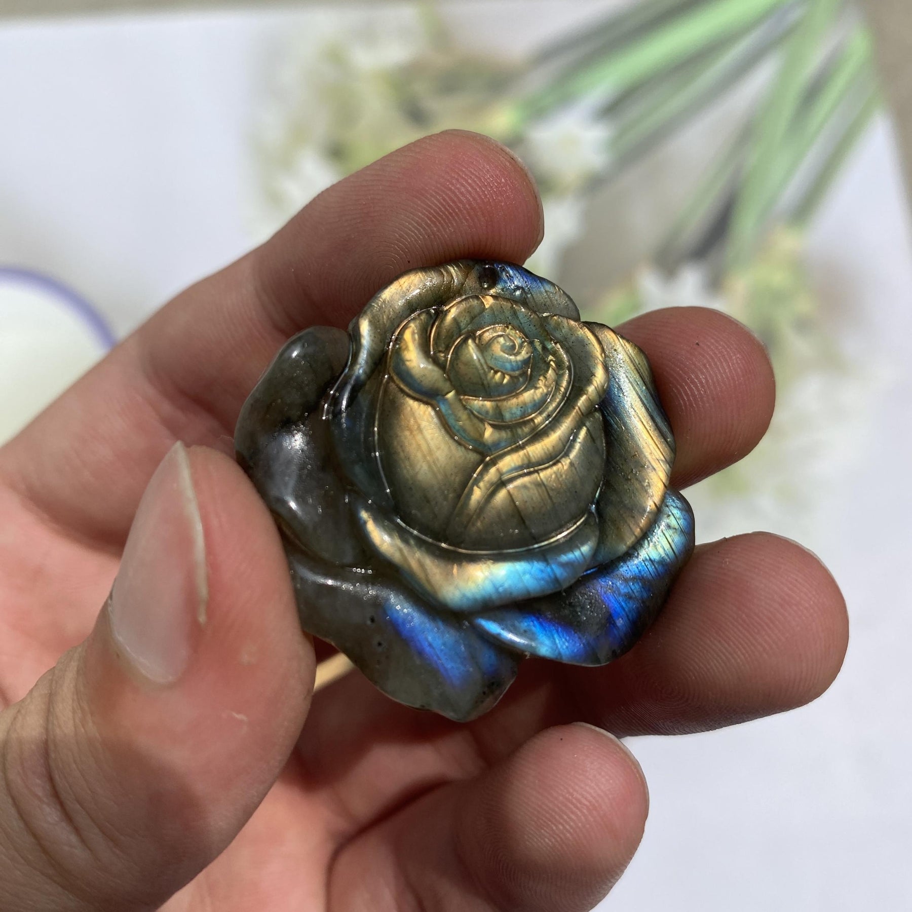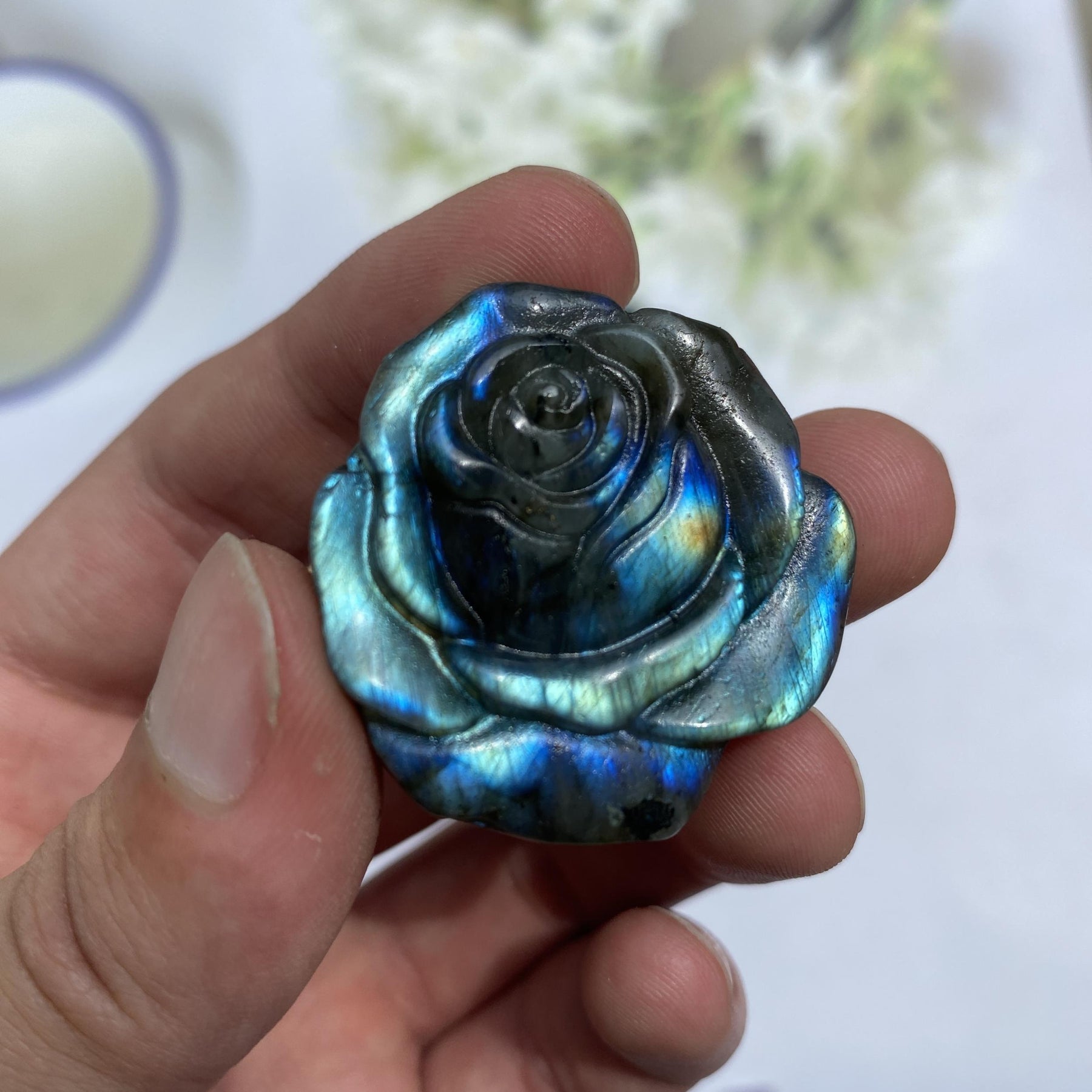 This exquisitely carved crystal petal ornament is perfect for adding elegance to your desktop decor or creating stunning jewelry pieces.