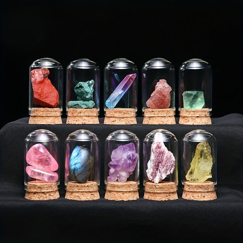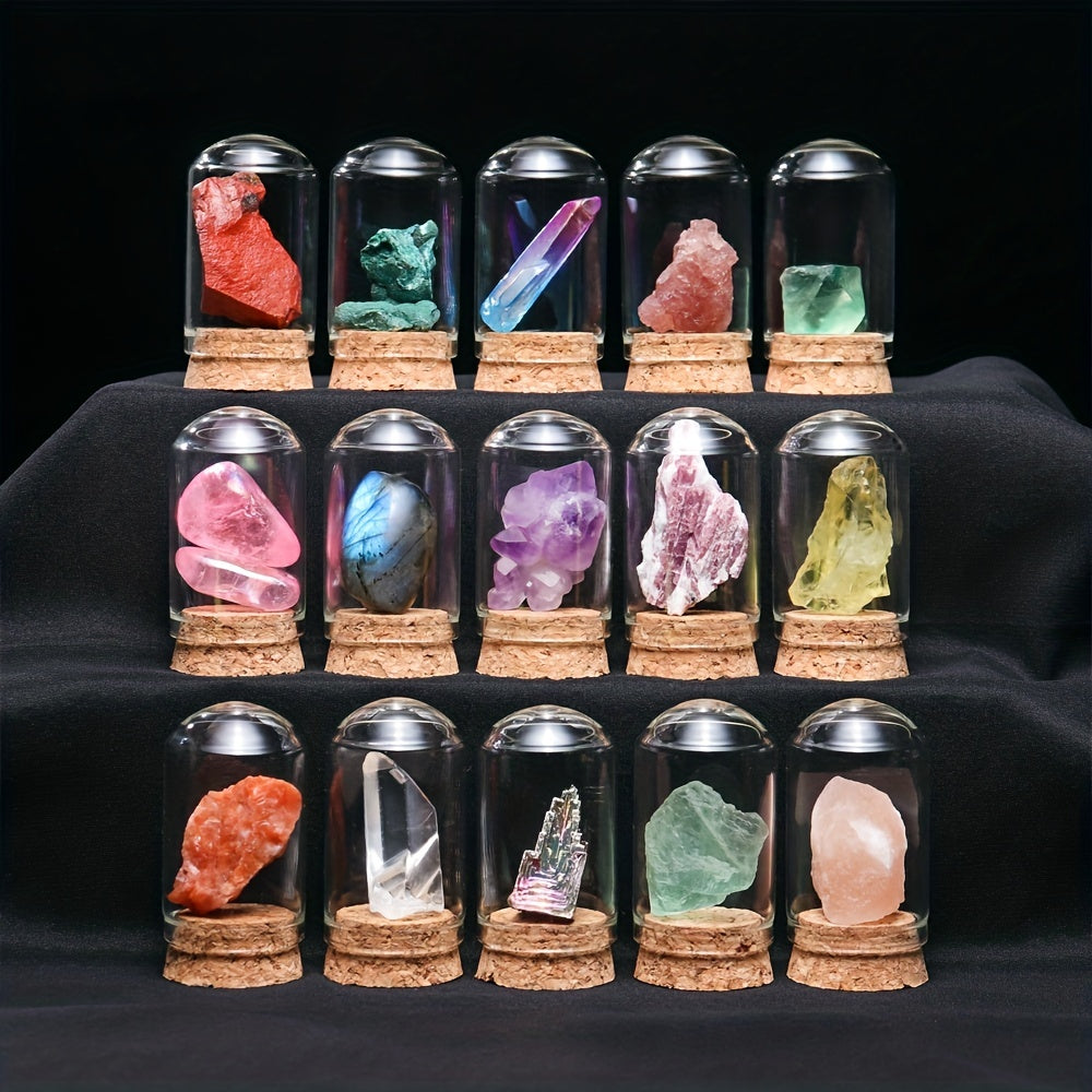 Explore the world of mineral crystals with this natural crystal quartz specimen bottle. Perfect for kids' science education and learning about minerals.