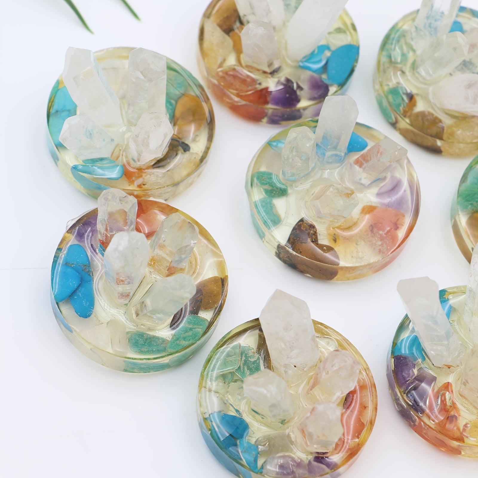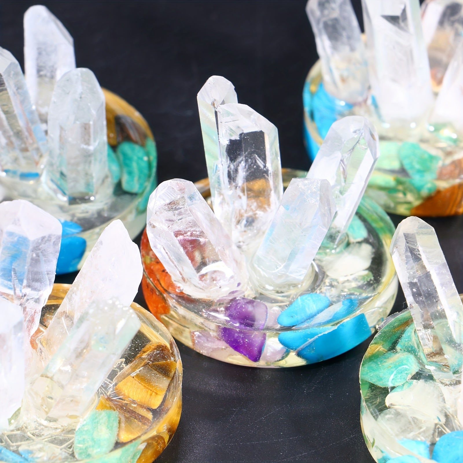 Enhance your home decor with this beautiful crystal resin statue featuring clusters. Perfect for reiki healing and as a unique jewelry display piece.