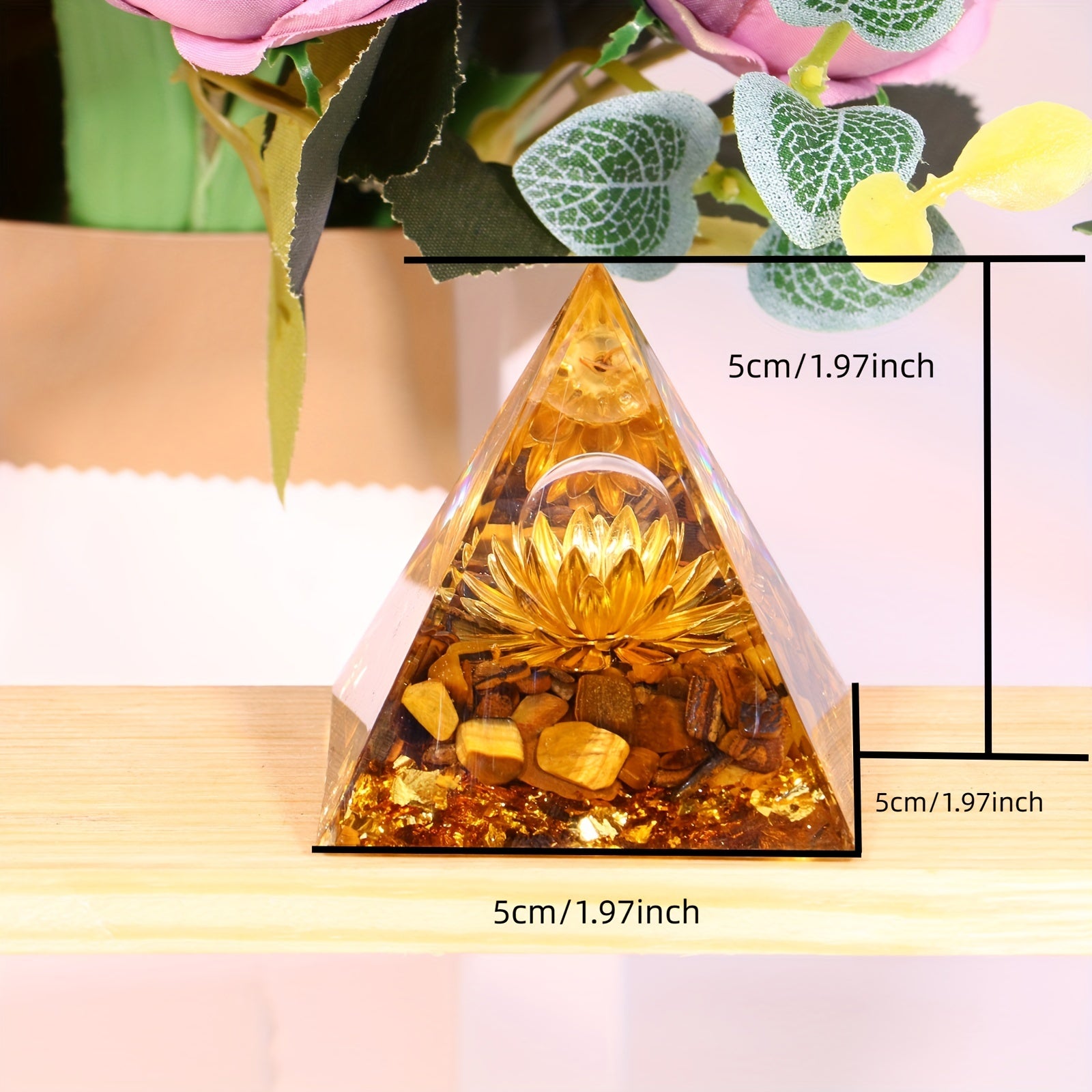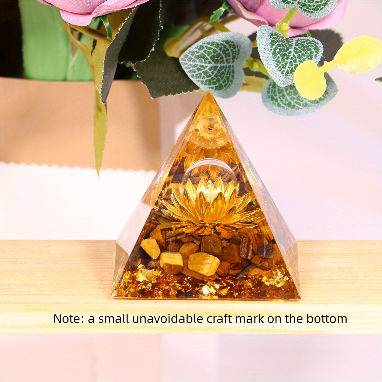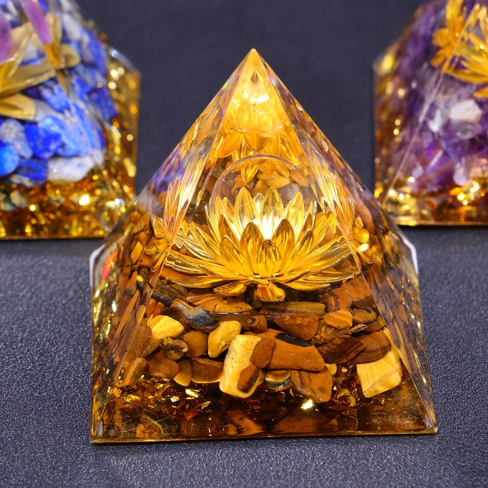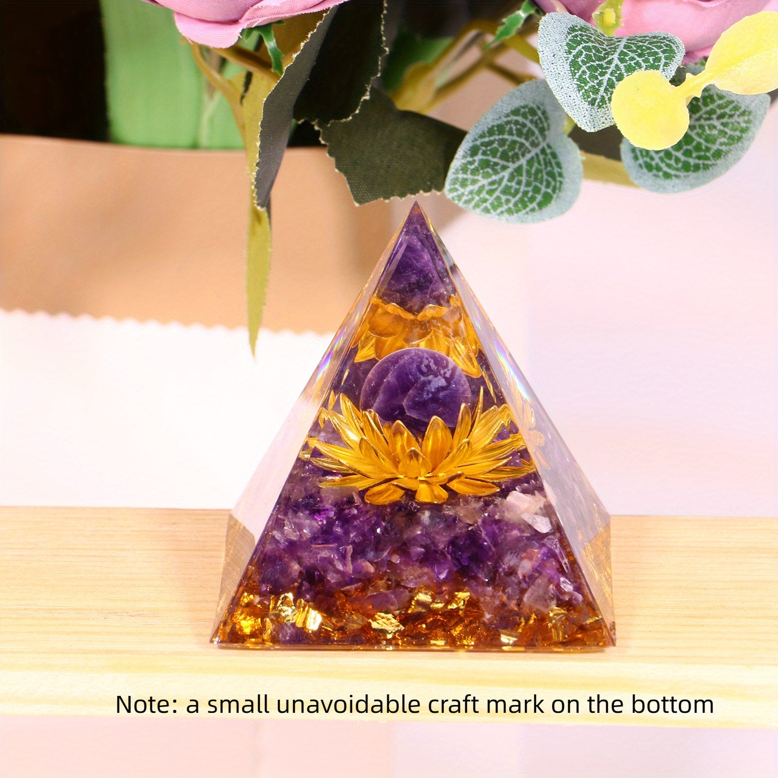 Enhance your space with this stunning orgonite pyramid featuring a mix of crystal stones. Perfect for work, home decor, birthday gift, and meditation. Crafted with resin for a unique touch.
