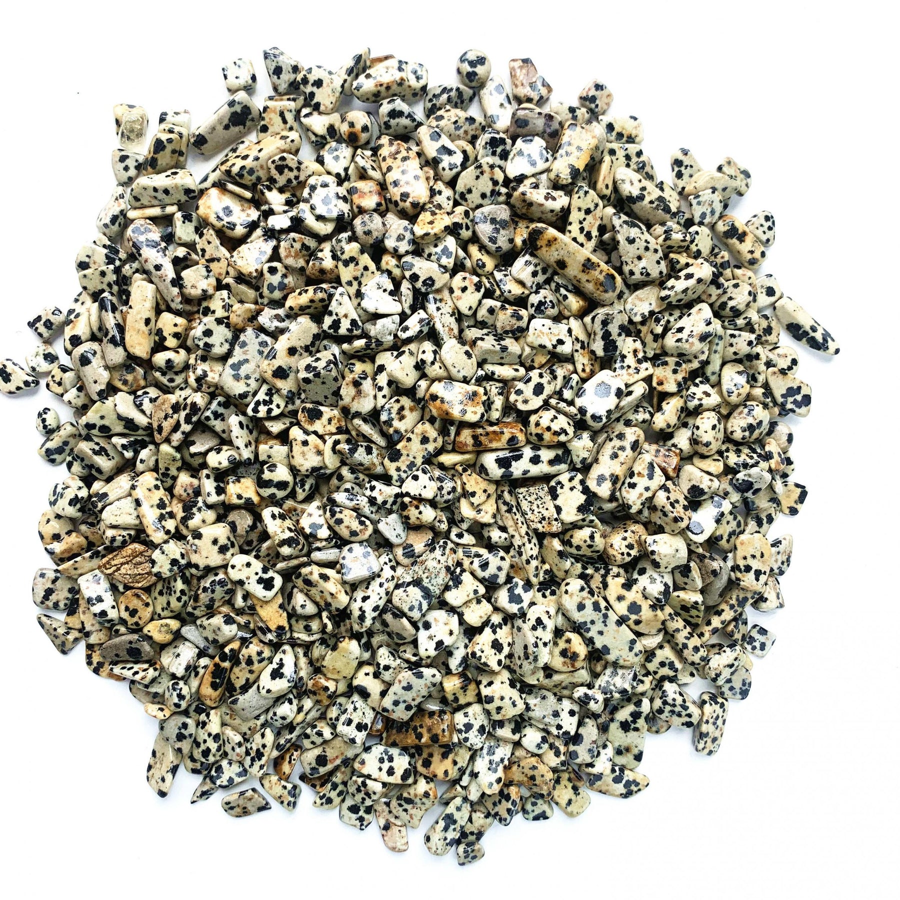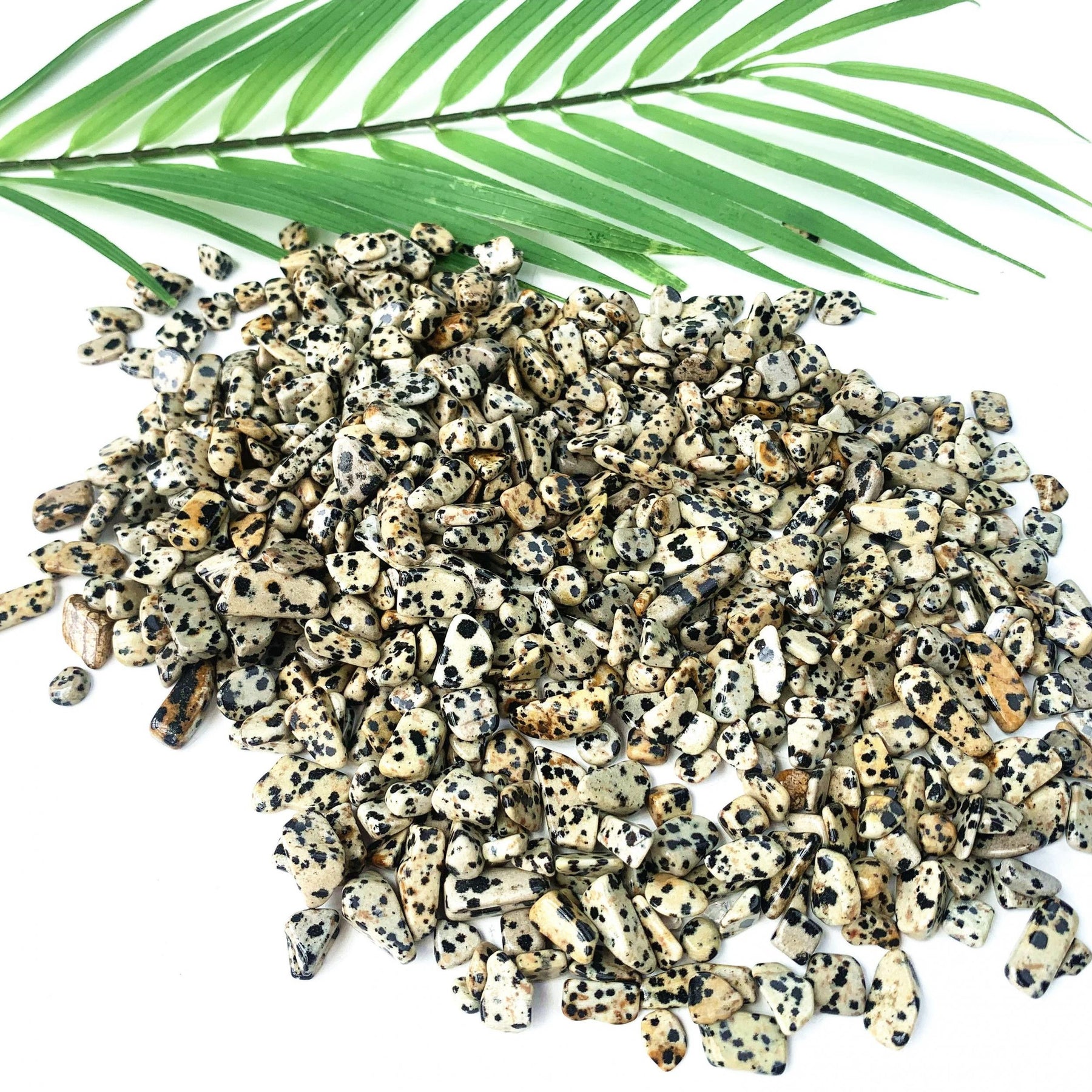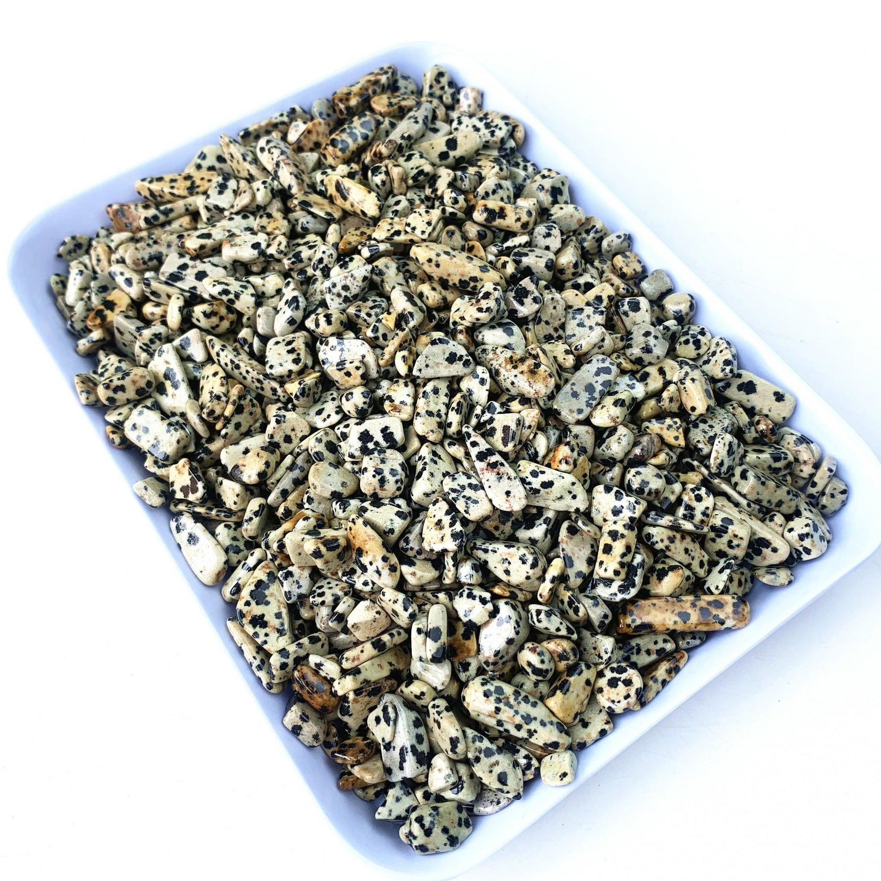 Enhance your healing and energy work with these 100g of Dalmatian Stone crystal chips. Each stone is natural and polished, offering a unique blend of beauty and metaphysical properties.