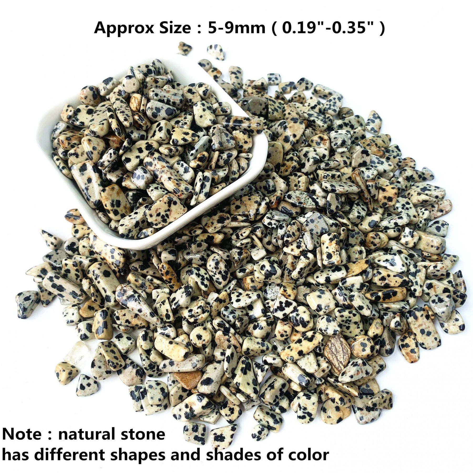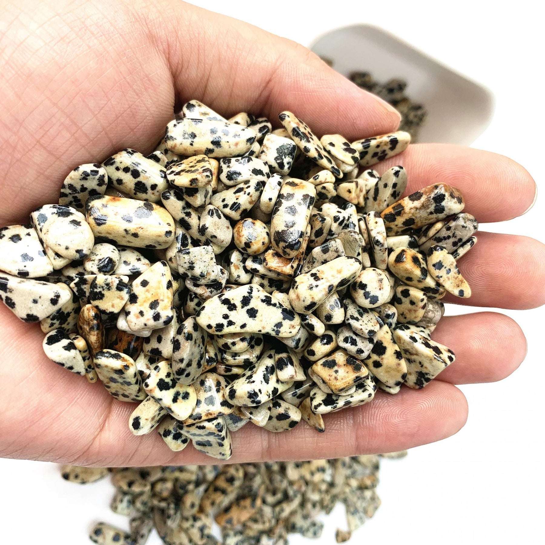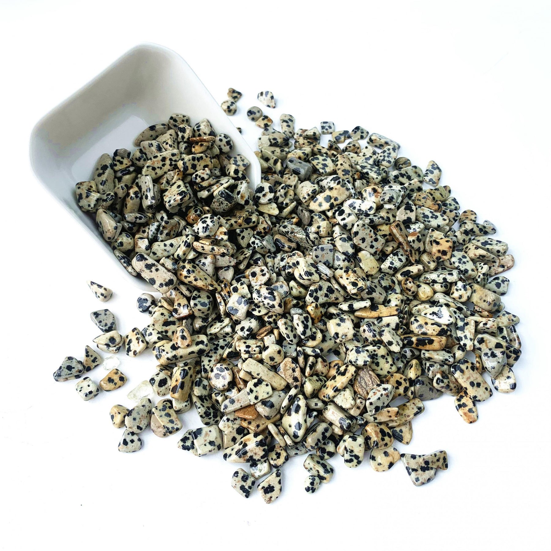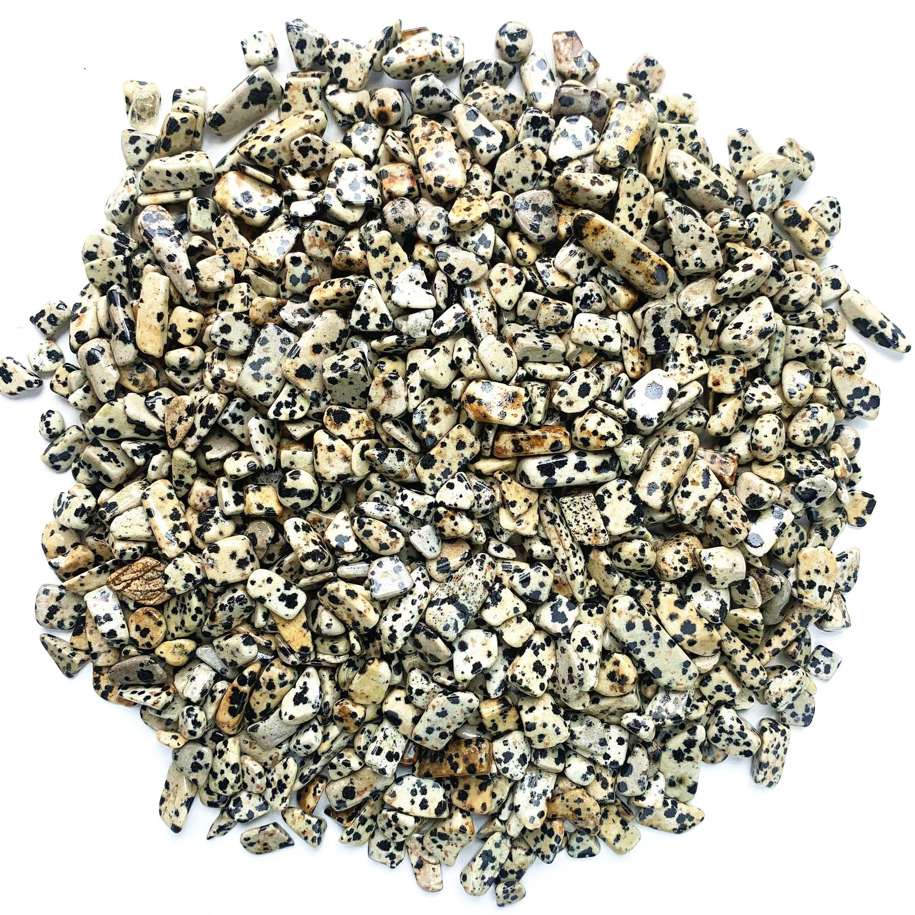 Enhance your healing and energy work with these 100g of Dalmatian Stone crystal chips. Each stone is natural and polished, offering a unique blend of beauty and metaphysical properties.