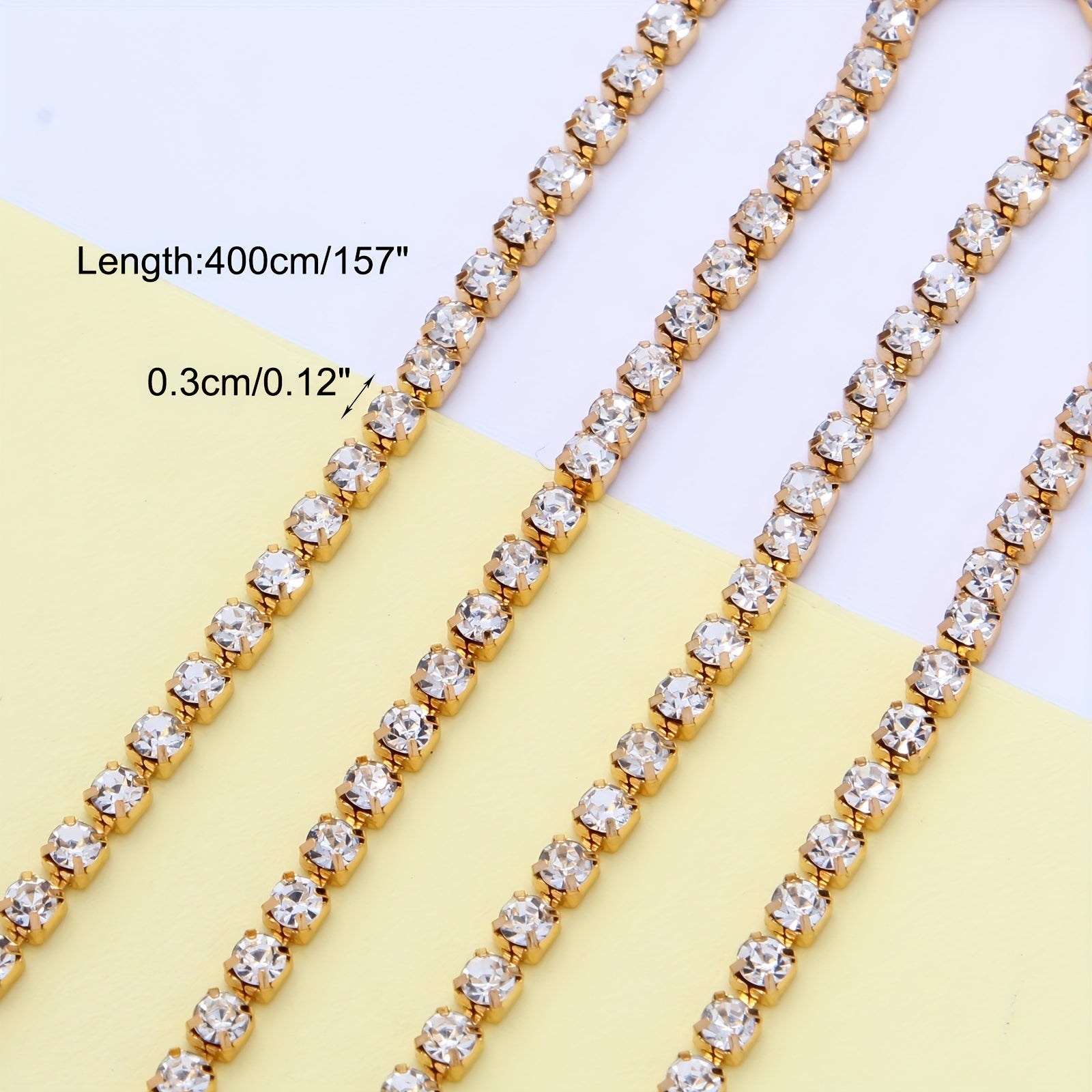 Get creative with this 400cm (157.48 inch) rhinestone chain featuring 12 dense claws. Perfect for shoe and clothing decoration, nail art, headgear, bracelets, necklaces, waist chains, and more.