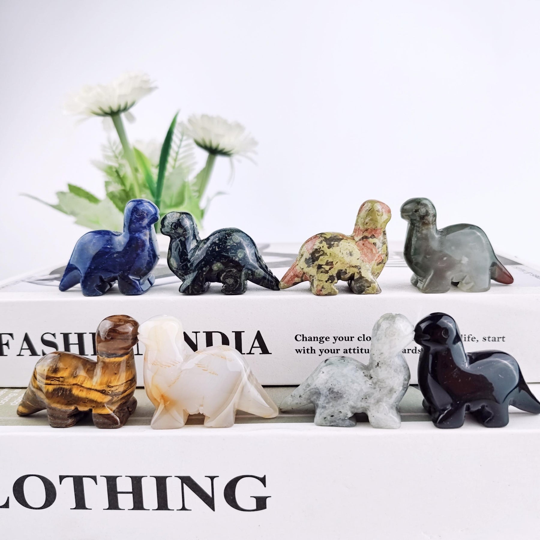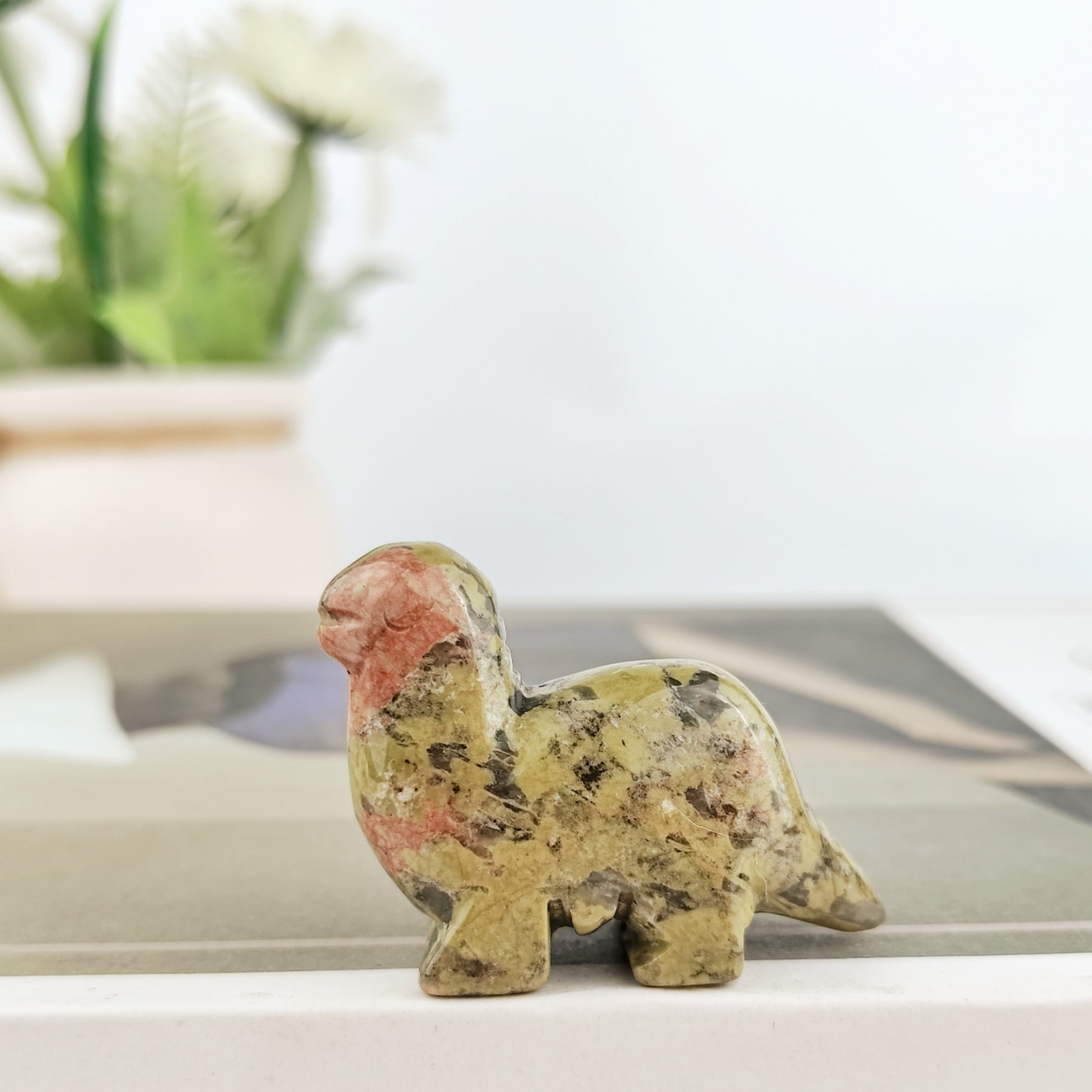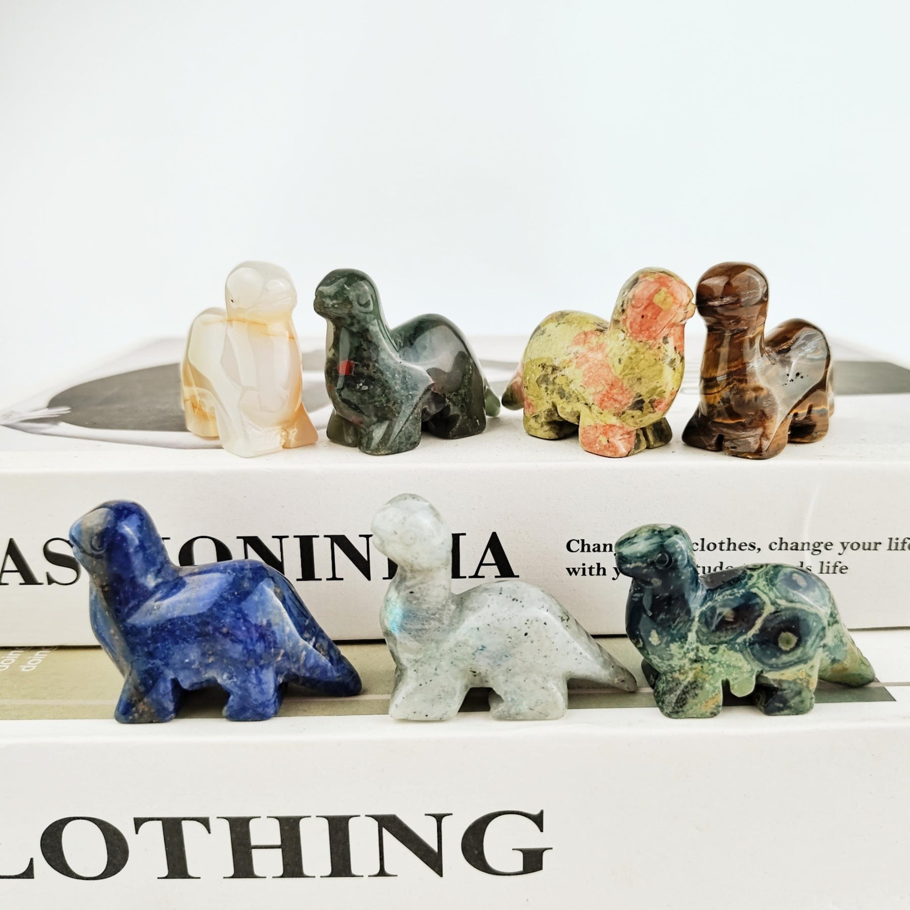 This creative natural crystal carving features a dinosaur design, perfect for adding a touch of whimsy and healing energy to your space. Ideal for crystal enthusiasts and collectors.