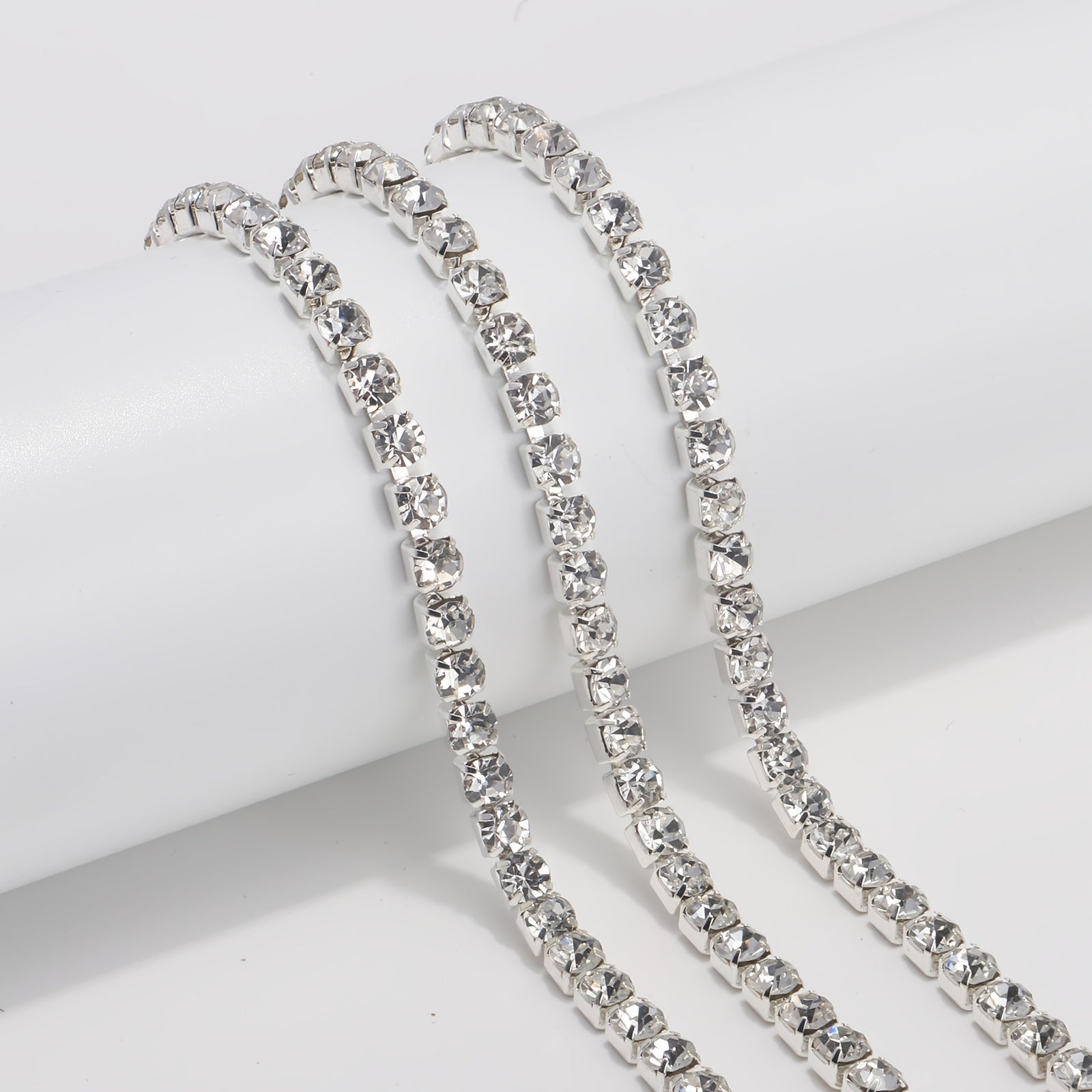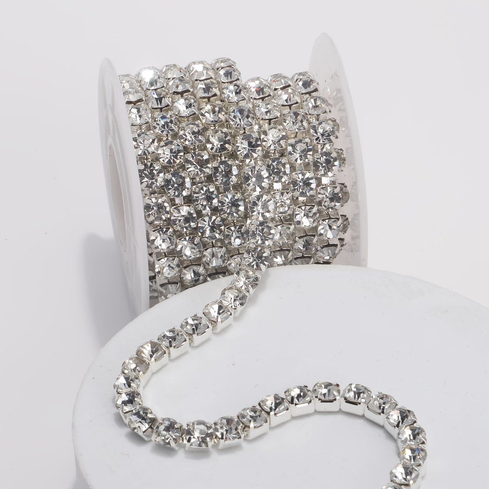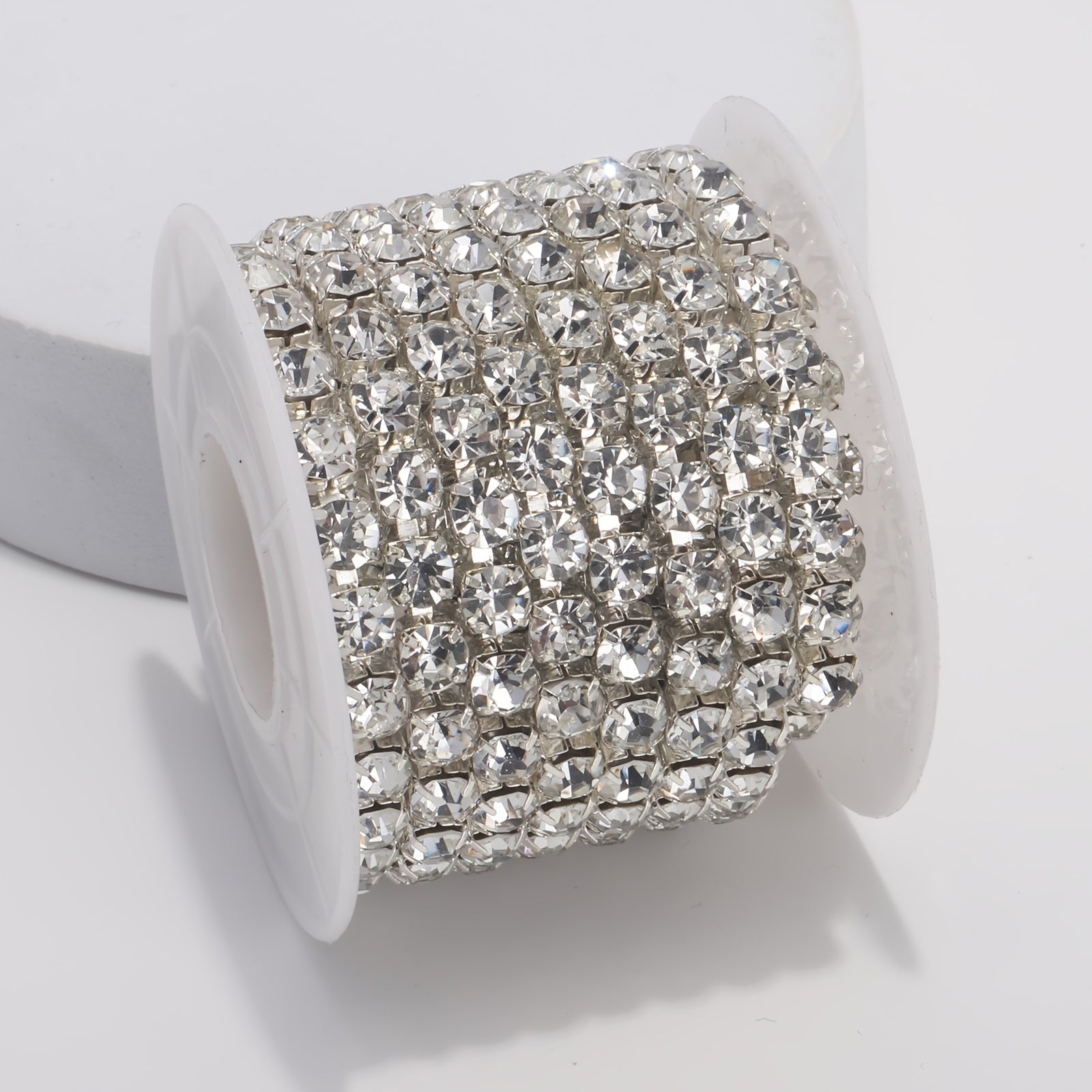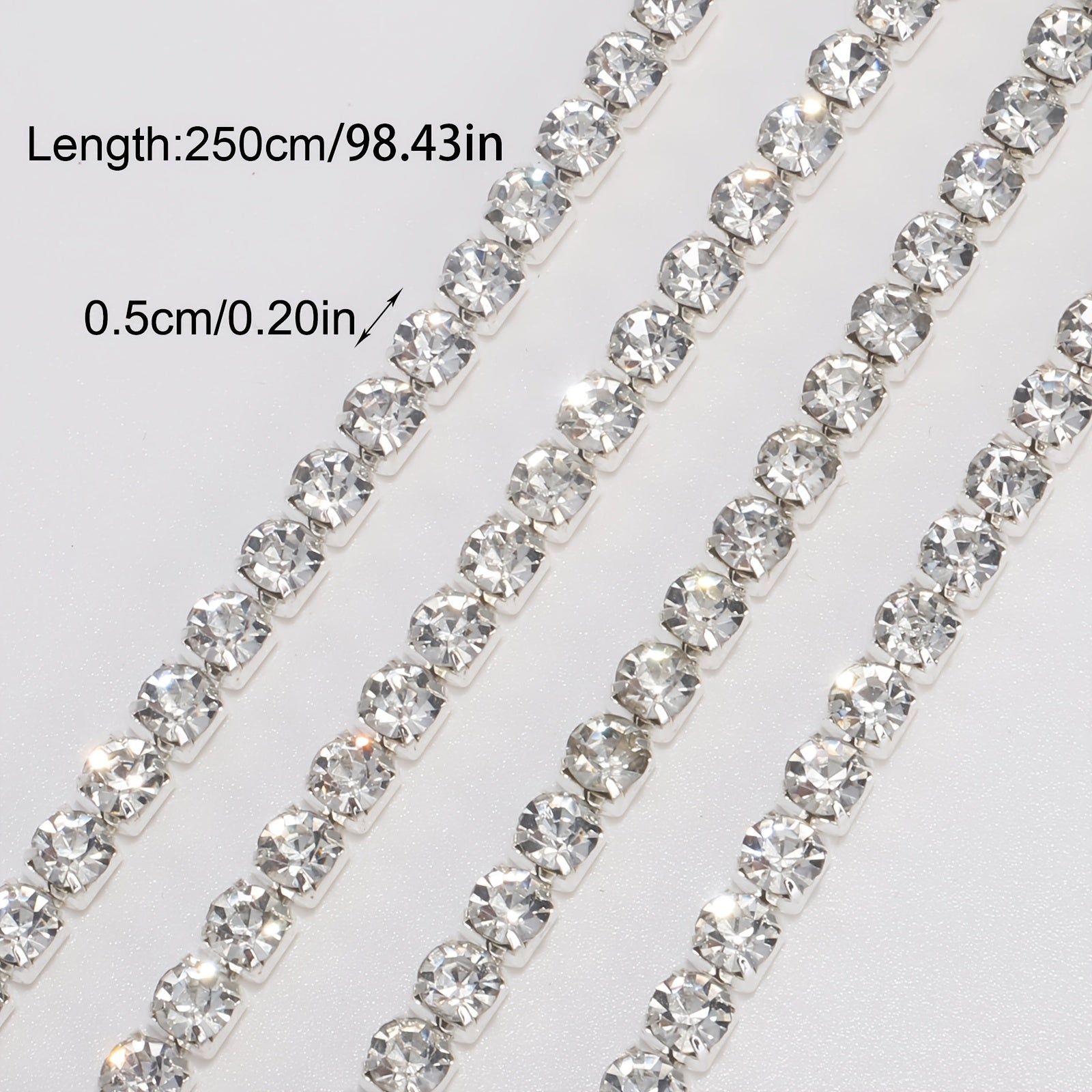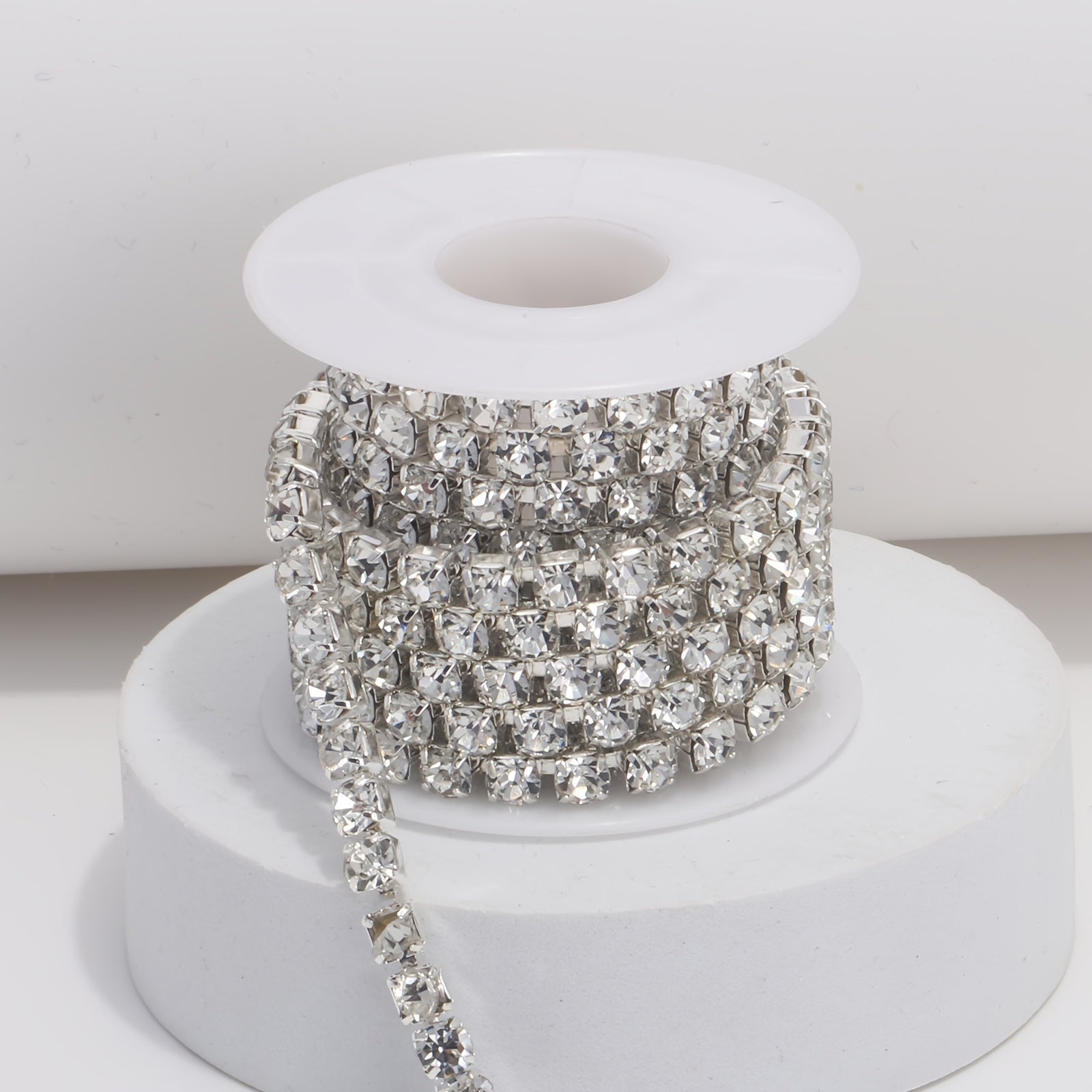 Add sparkle to your projects with this DIY ultra silver rhinestone chain that can be used for various decorations like nail art, shoe embellishments, water glass accents, and mobile phone case decoration.