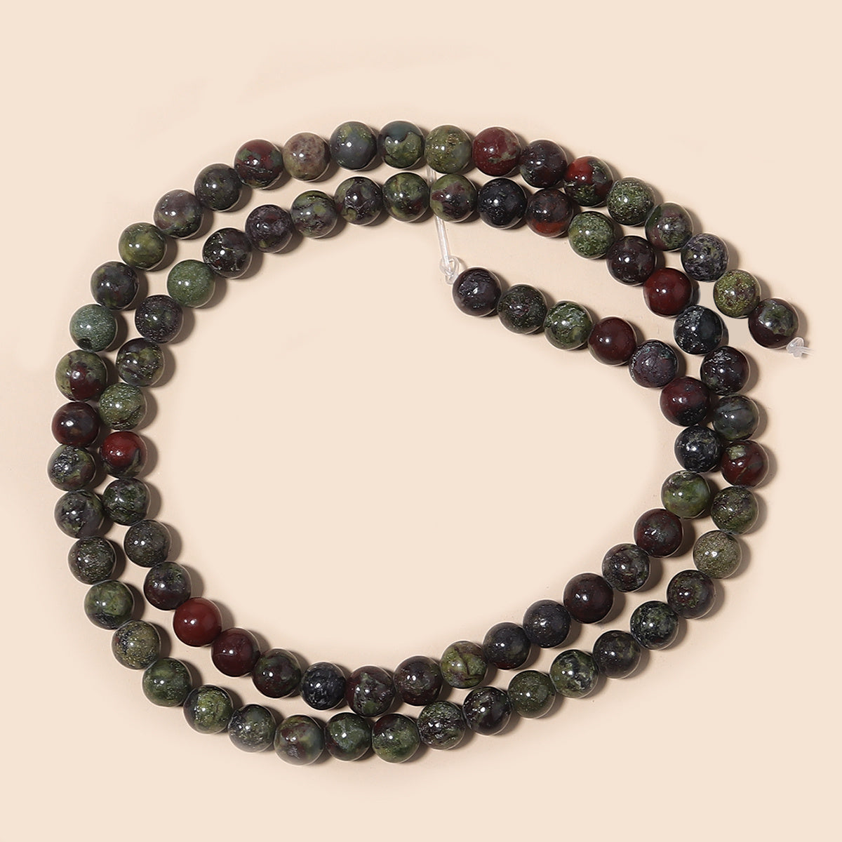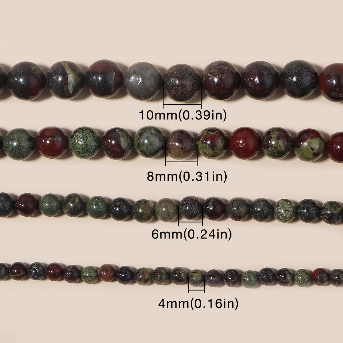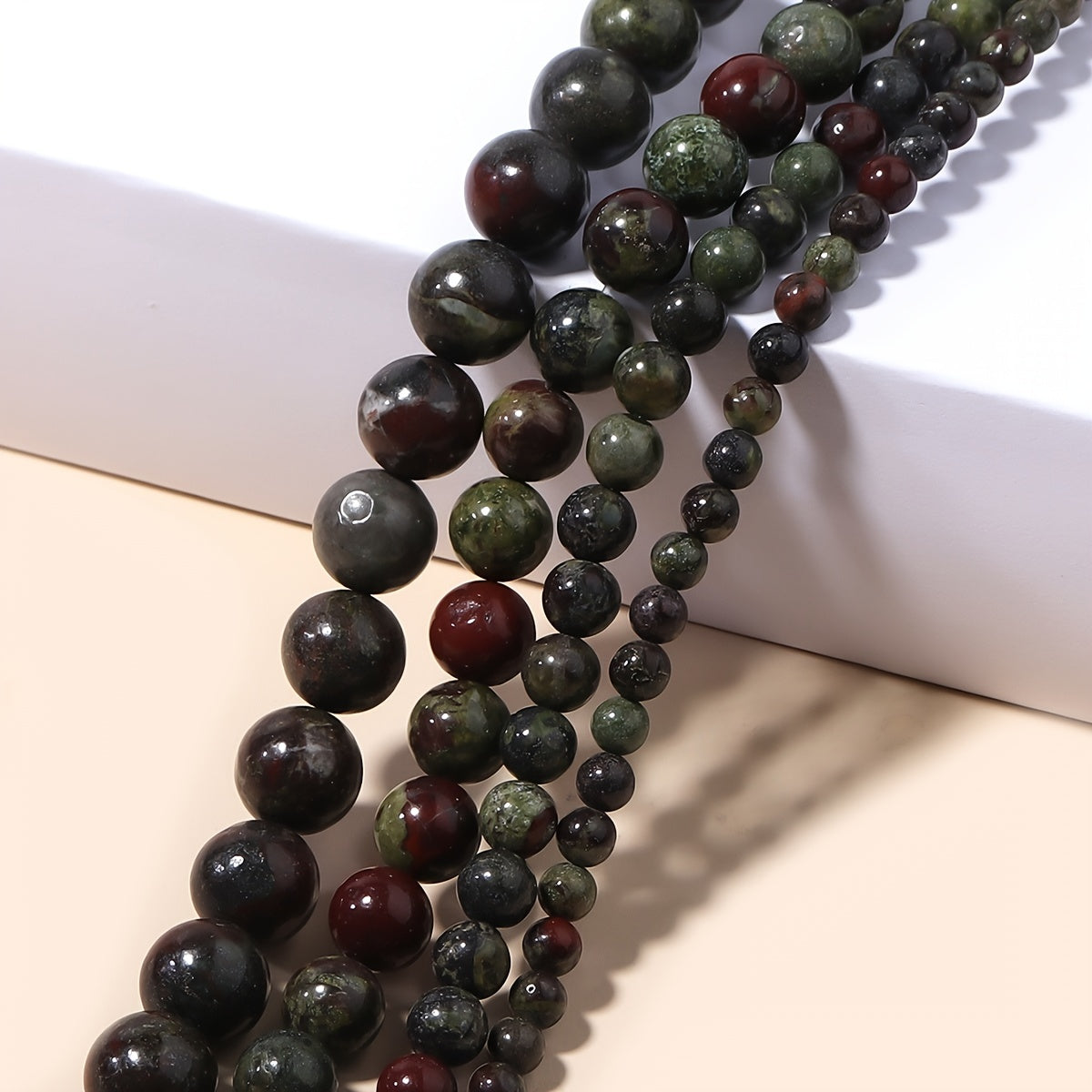 Add a touch of natural beauty to your jewelry creations with these Dragon Blood Stone gemstone beads. Each strand contains round beads in sizes of 4mm, 6mm, 8mm, and 10mm.