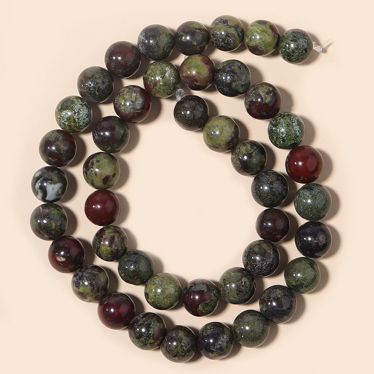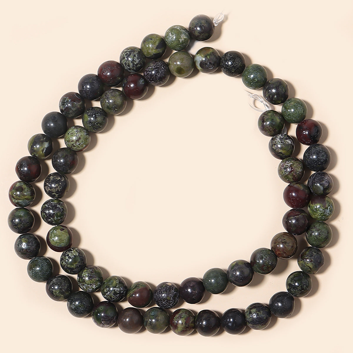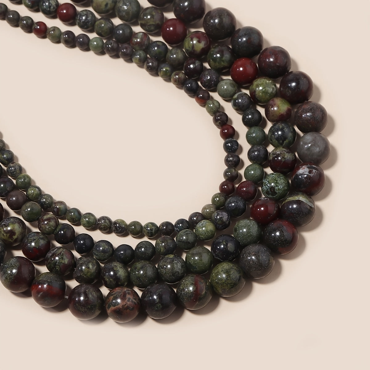 Add a touch of natural beauty to your jewelry creations with these Dragon Blood Stone gemstone beads. Each strand contains round beads in sizes of 4mm, 6mm, 8mm, and 10mm.