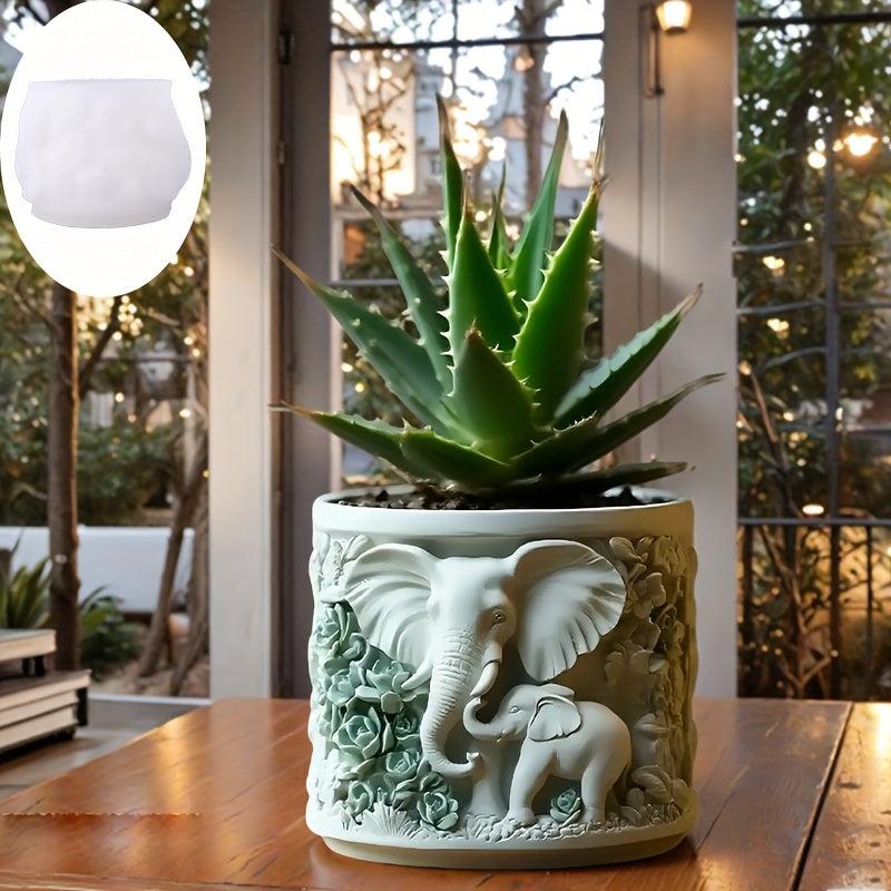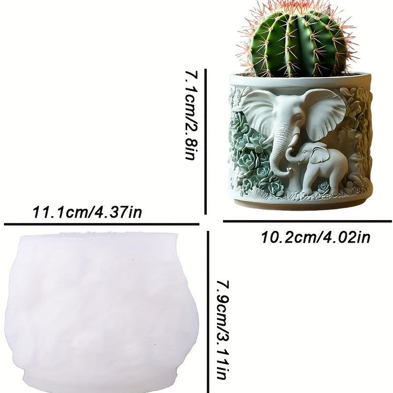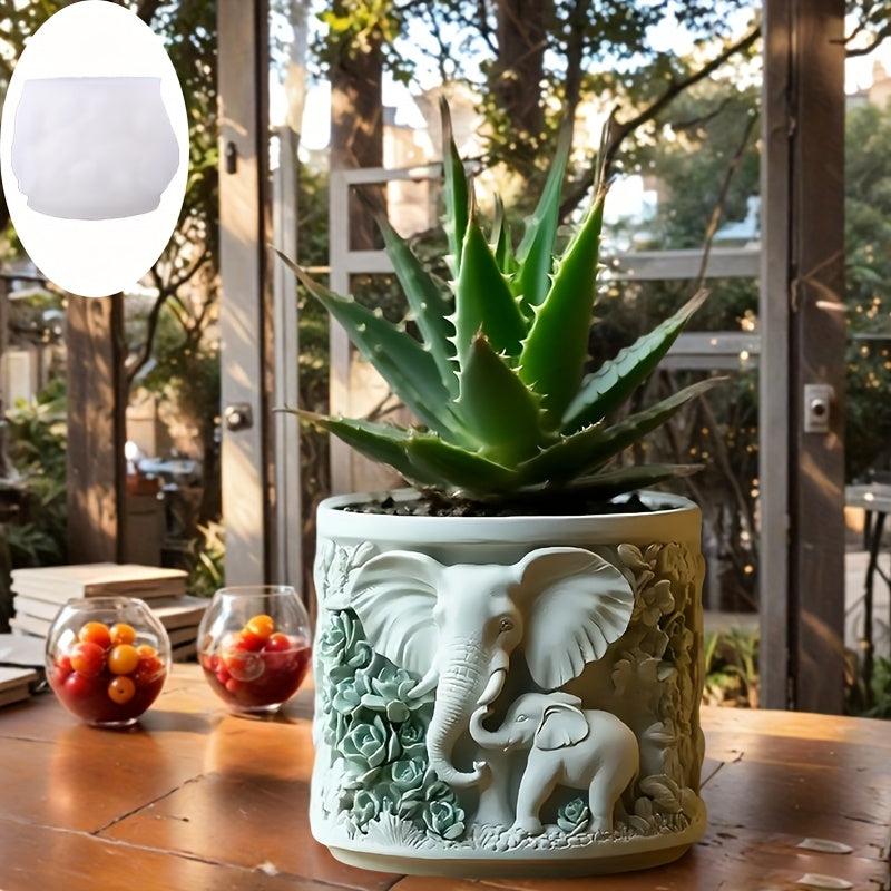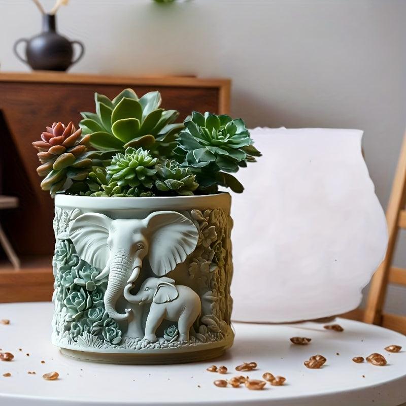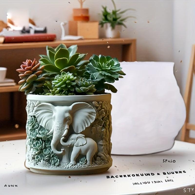 This creative fine embossed mold features an elephant theme, perfect for home flower pots. The easy watering design makes it practical and decorative.
