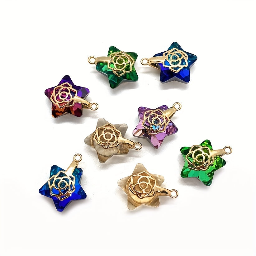 This natural stone pendant features a faceted crystal in a pentagram shape, perfect for DIY jewelry projects.