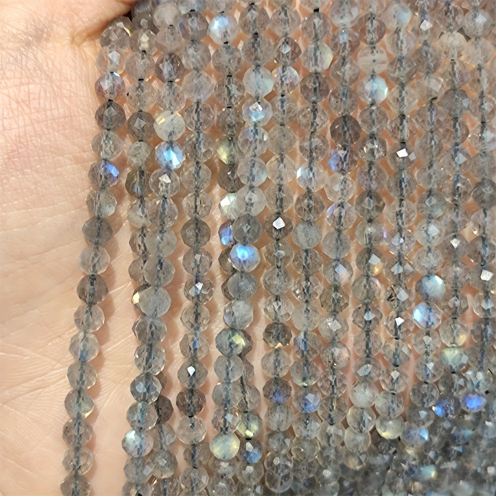 Enhance your jewelry making with this strip of faceted labradorite and malachite crystal beads. Perfect for creating unique bracelets and necklaces.
