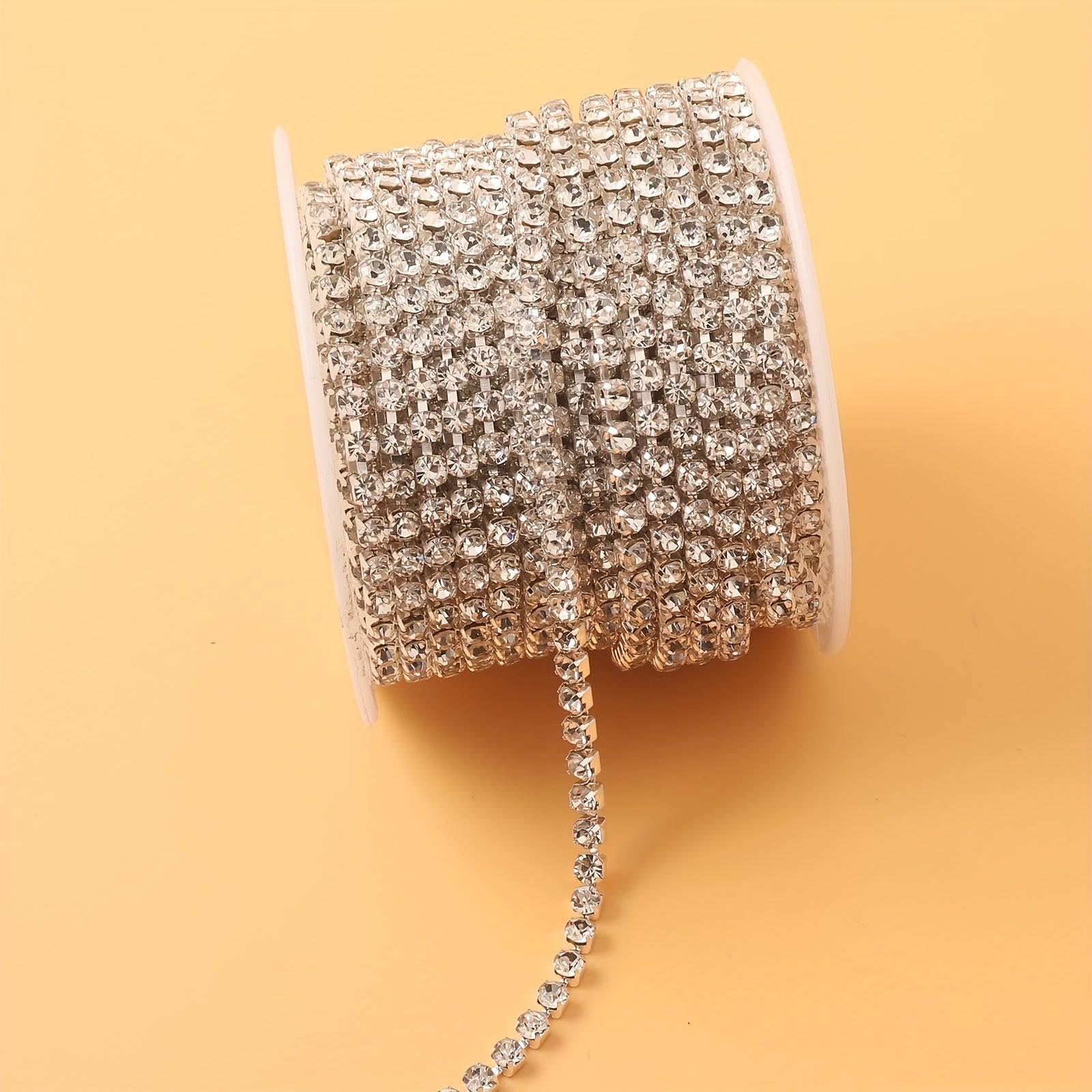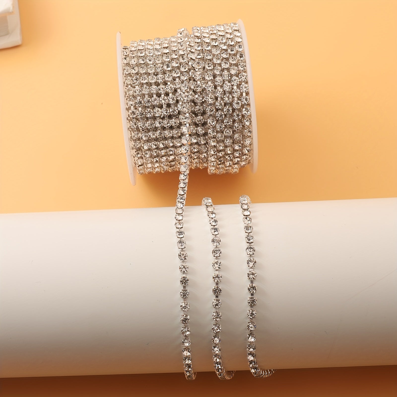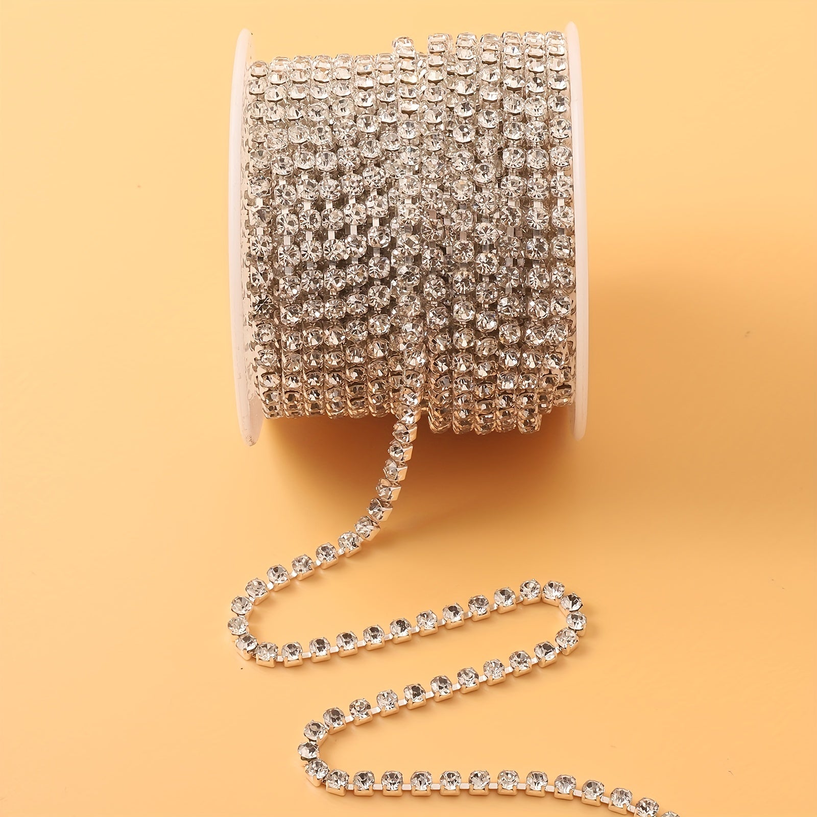 Add a glamorous touch to your shoes, clothing, or phone case with this 177 cm silver rhinestone chain. Perfect for making statement pieces!