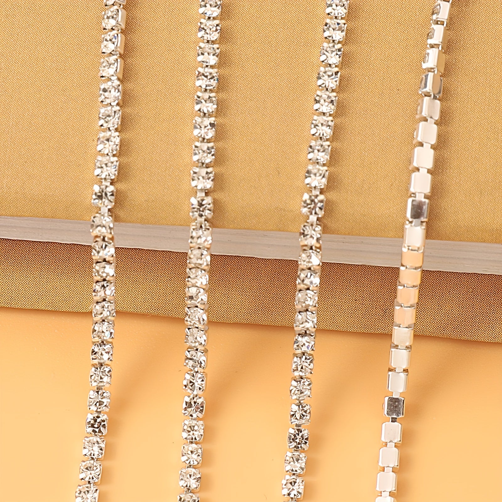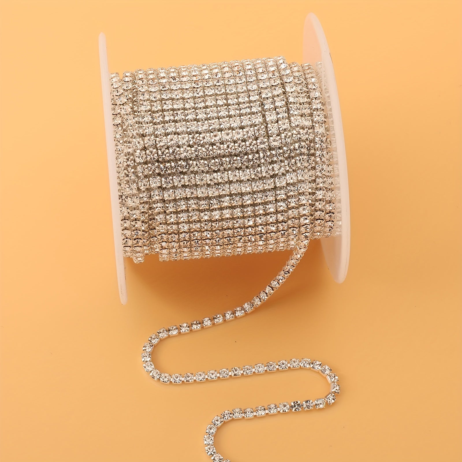 Add a touch of glamour and sparkle to your shoes or clothing with this silver rhinestone chain. Perfect for creating unique nail art designs or embellishing accessories.