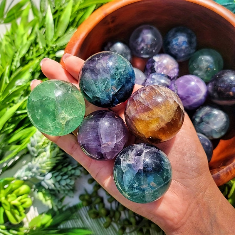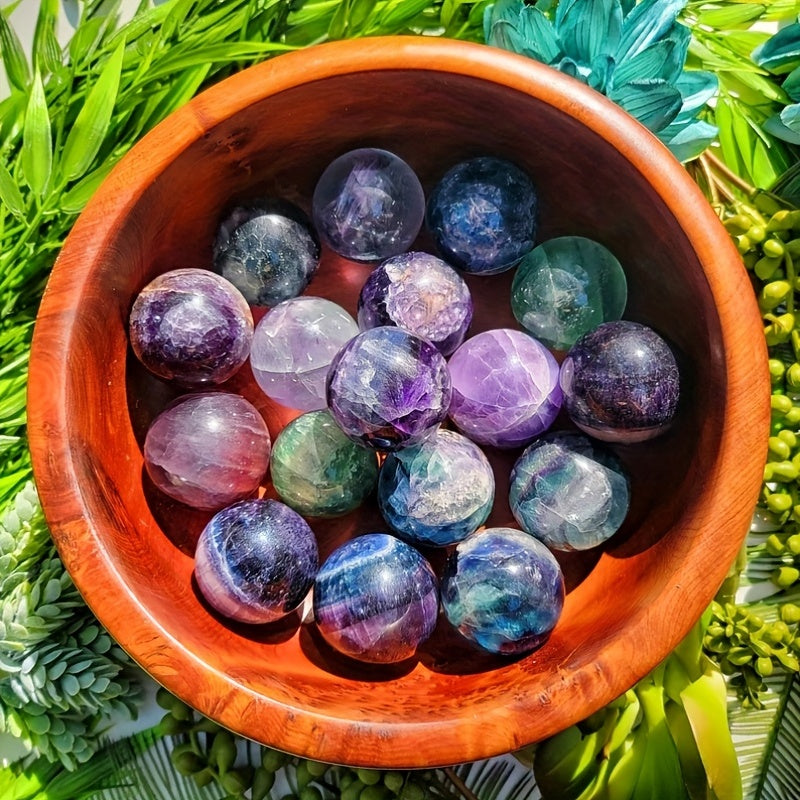 Enhance your space with the beauty and energy of Fluorite Crystal Balls. These natural Fluorite crystals come in various sizes and are perfect for decorative purposes or energy work.