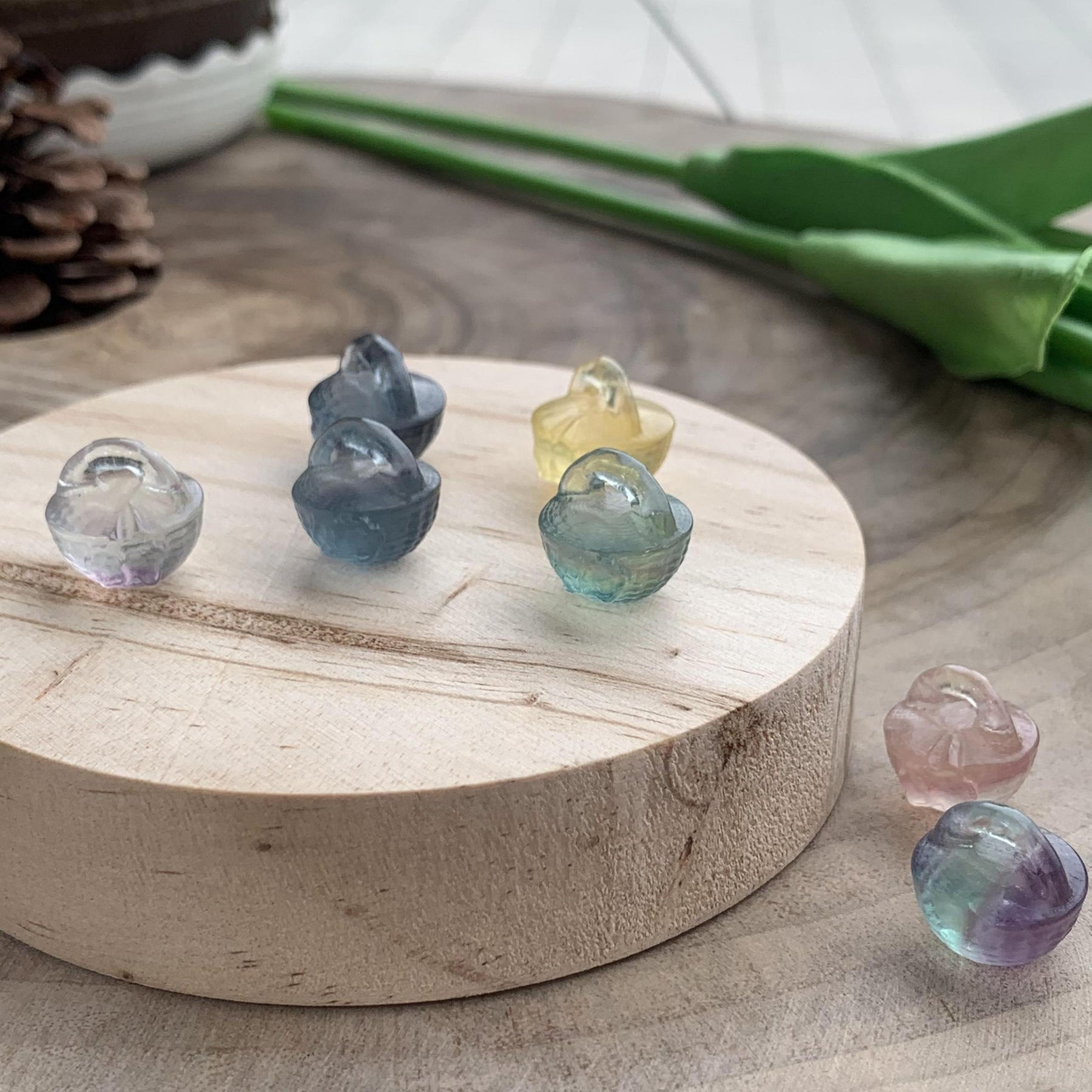 Bring the healing energy of natural fluorite crystal into your home with this beautifully carved vegetable basket. Perfect for decor and healing purposes.