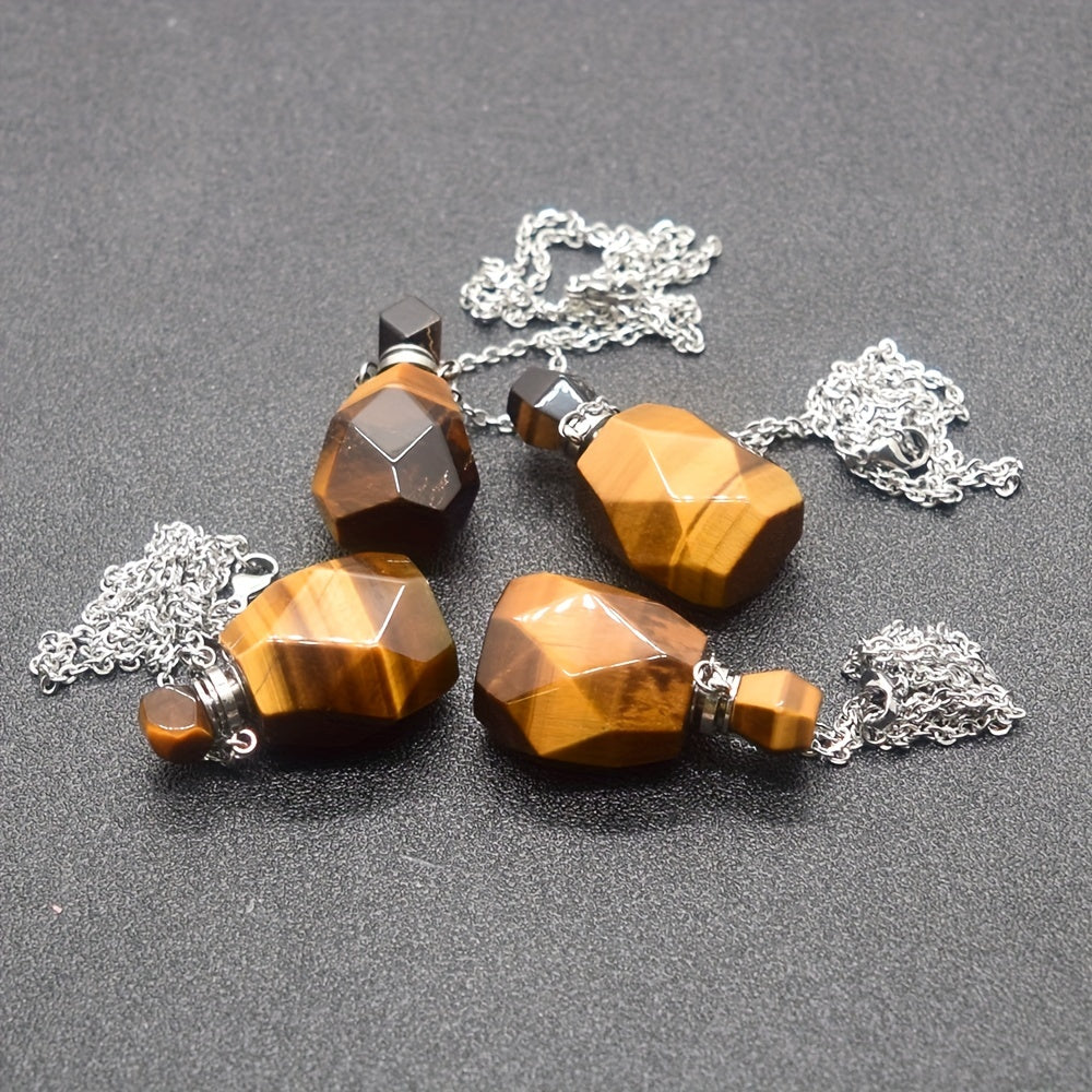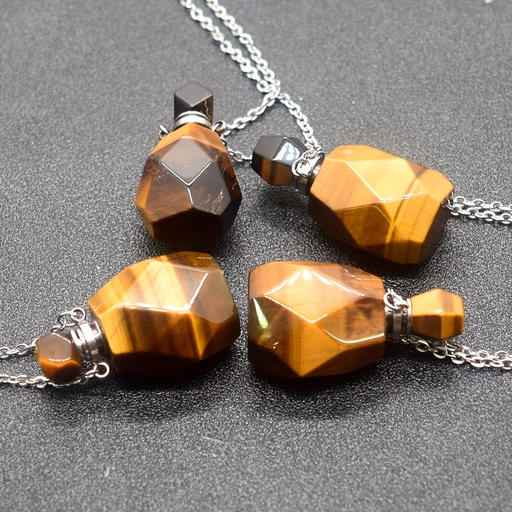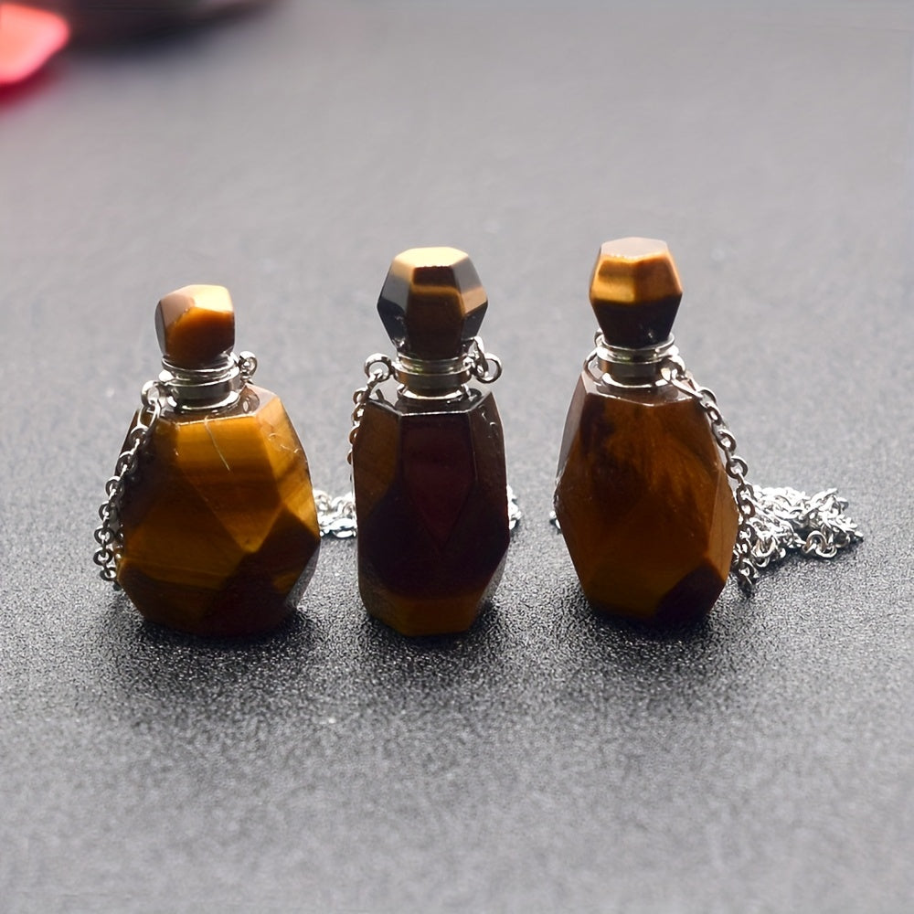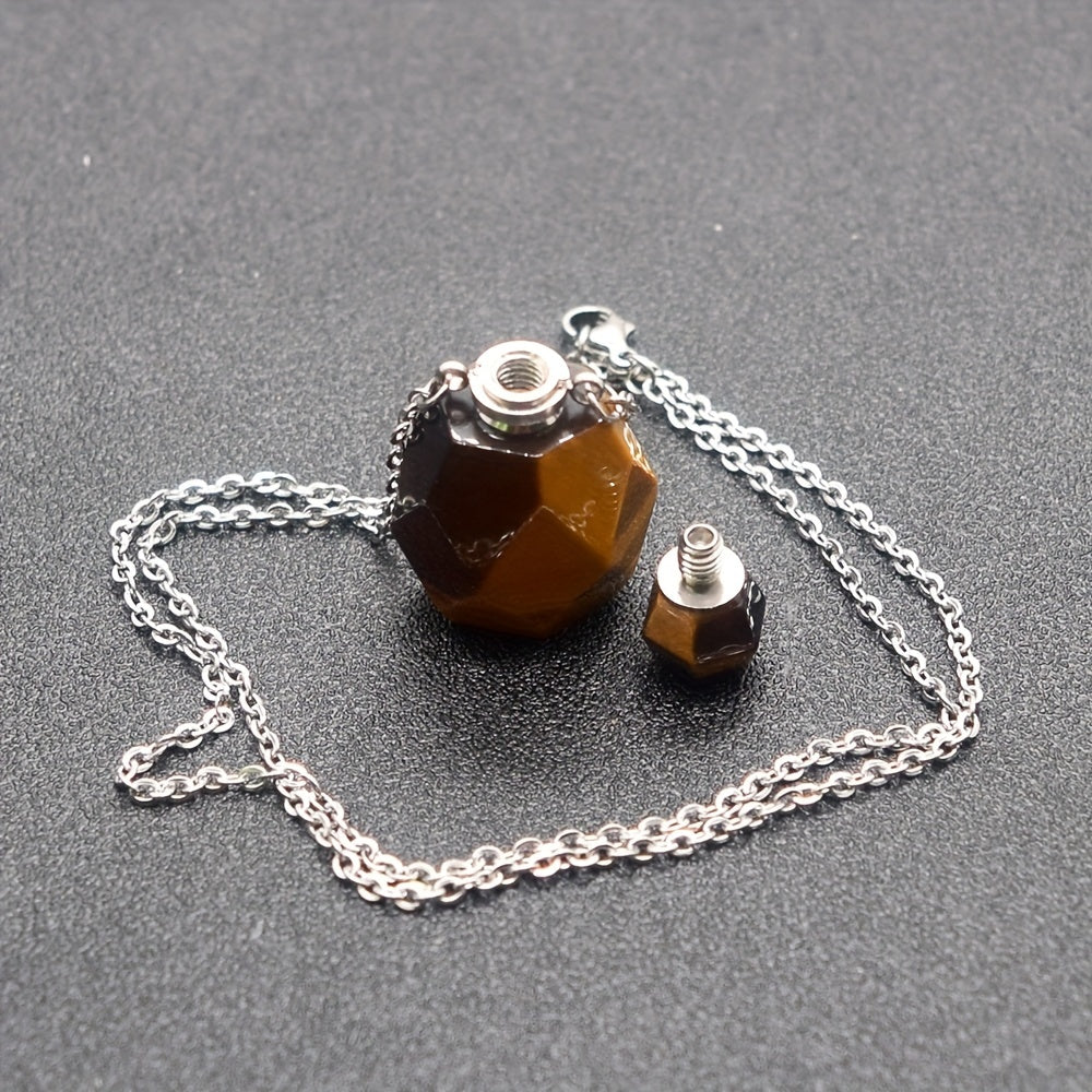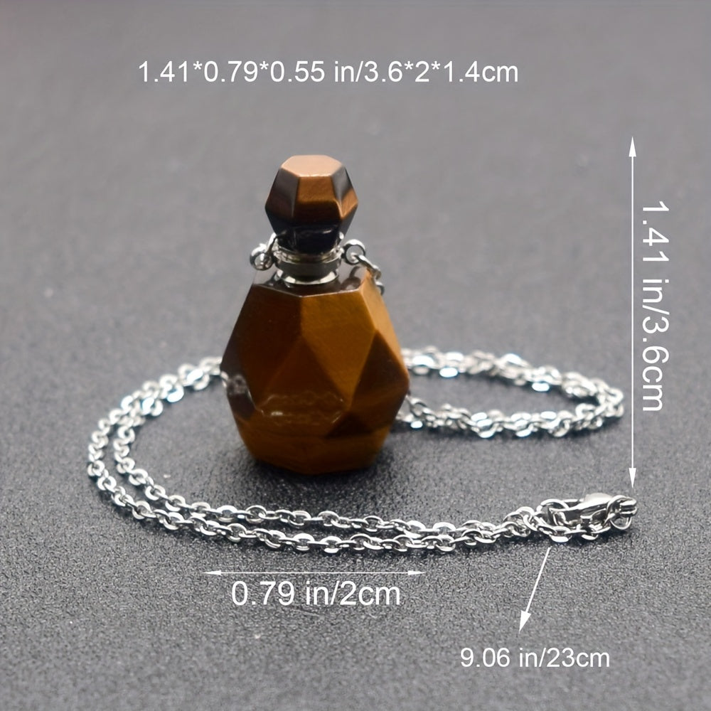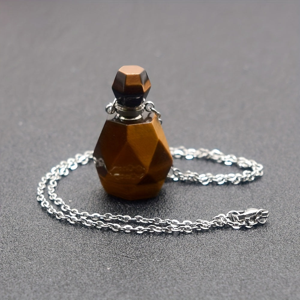This exquisite necklace features a carved and faceted gemstone perfume bottle design. It is a unique accessory that is perfect for Father's Day, Mother's Day, or as a summer gift.