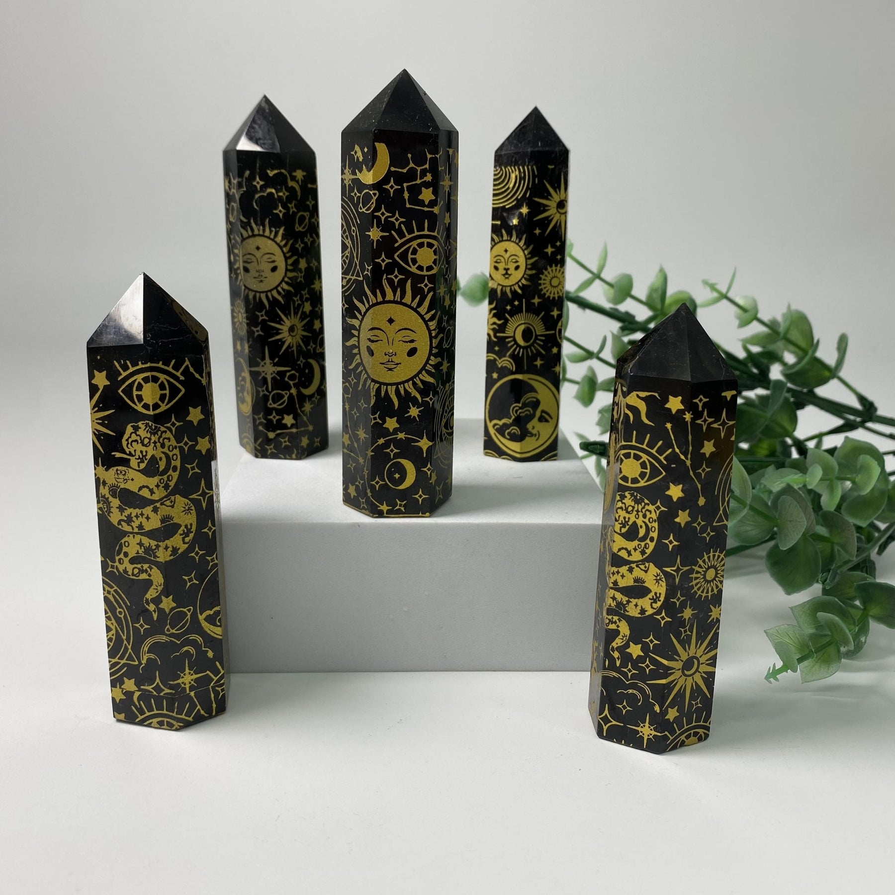 Add a touch of elegance to your space with this Golden Obsidian Snake Sun Moon crystal stone. Perfect for interior decoration, healing practices, and as a thoughtful gift for your loved ones. Bring peace and love into your home with this beautiful piece.