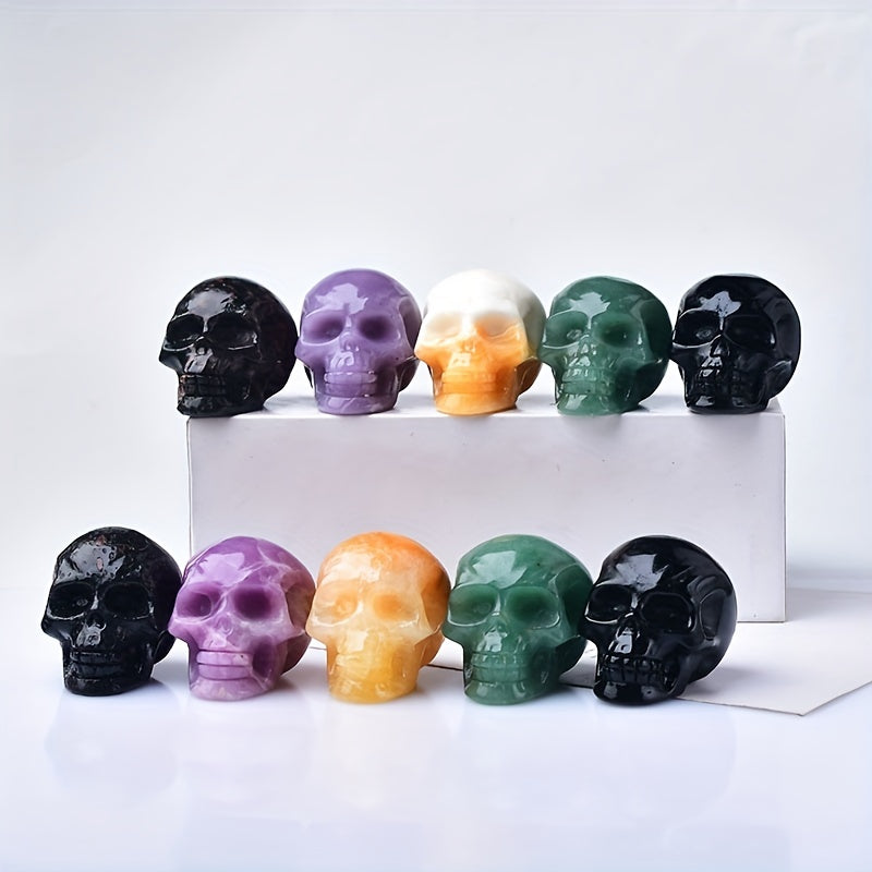 Add a touch of funky punk style to your decor with this colorful crystal stone skull ornament. Perfect for Halloween or any time you want to add a unique touch to your space.