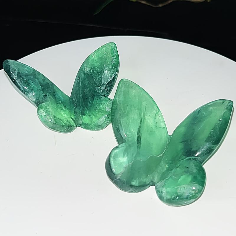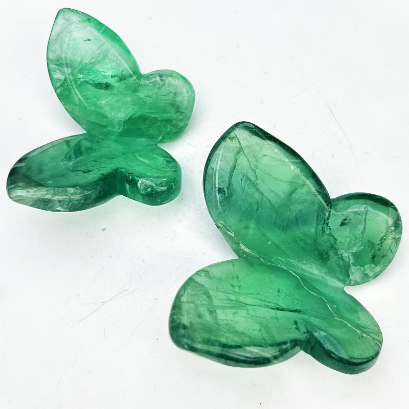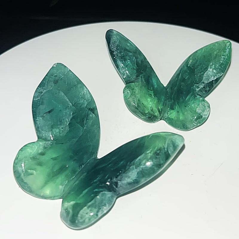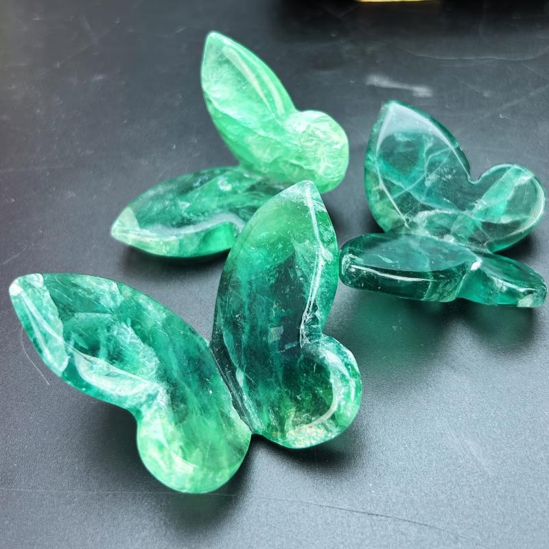 Enhance your space with this beautiful green fluorite butterfly decoration featuring a marble pattern. Perfect for home or office decor.