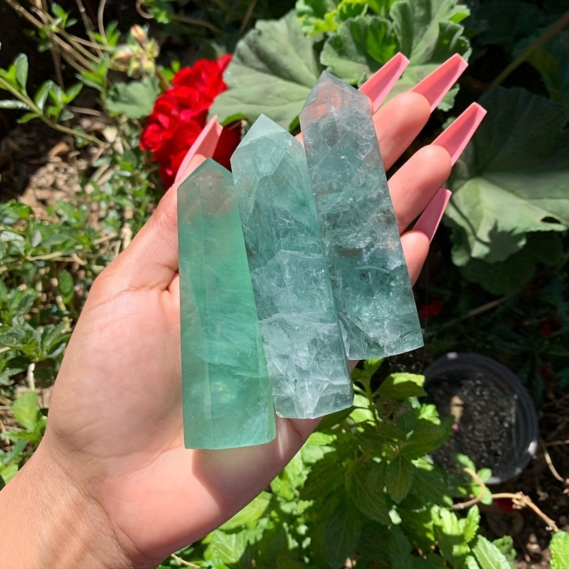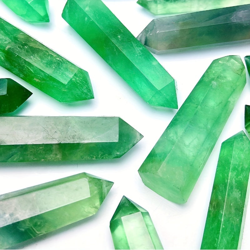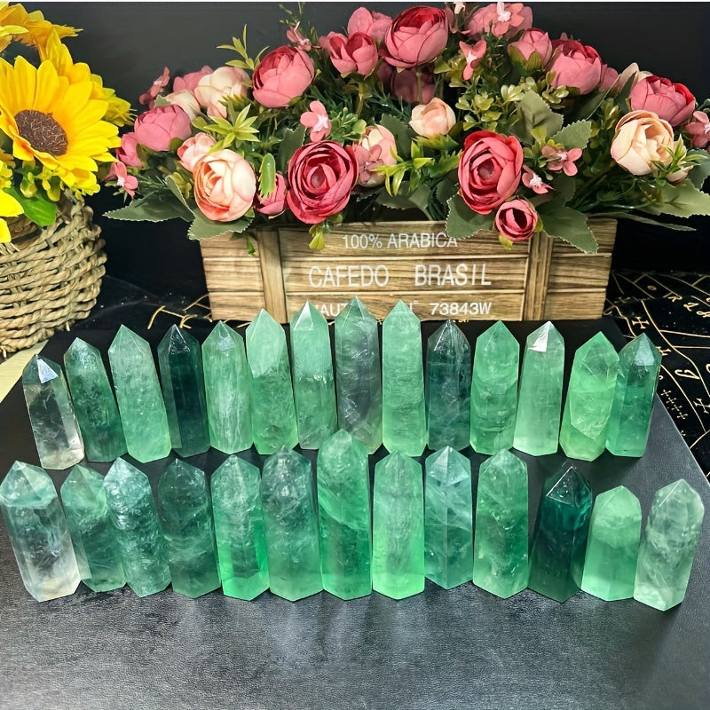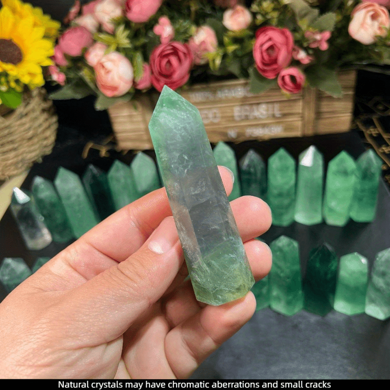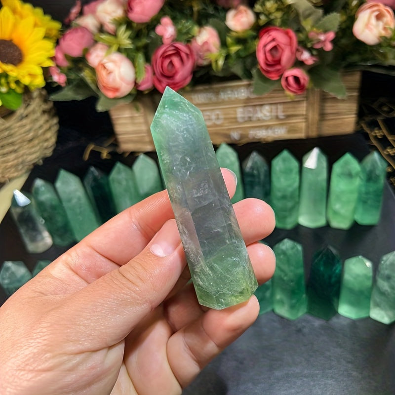 This natural green fluorite obelisk is a powerful healing crystal wand that can be used for Reiki, Chakra balancing, and as decor. It makes a thoughtful gift for anyone interested in crystal healing.