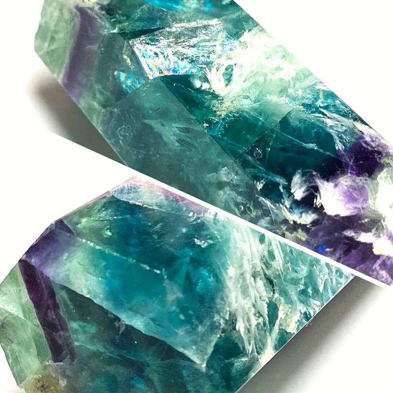 This bohemian style crystal tower features rare green and purple colors with a beautiful feather snowflake pattern. Perfect for healing and decoration.