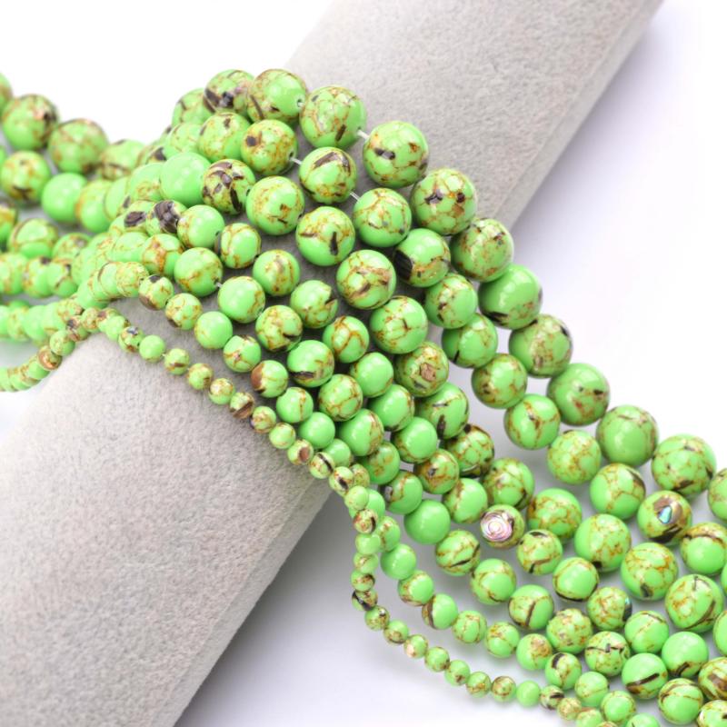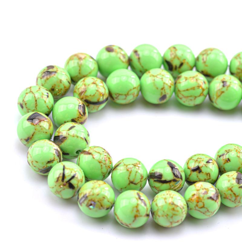 Create unique jewelry with these natural green shell pine stone round loose beads. Perfect for bracelets and other accessories for holidays and special occasions.
