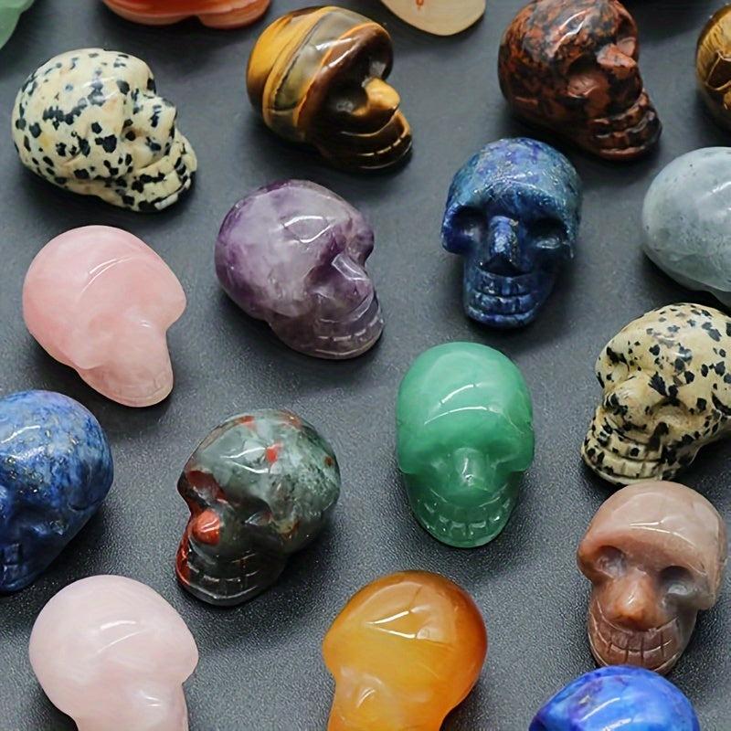 These hand-carved crystal skull figurines come in random mini skull designs with intricate geometric patterns. Each skull statue is unique and perfect for decoration or collecting.