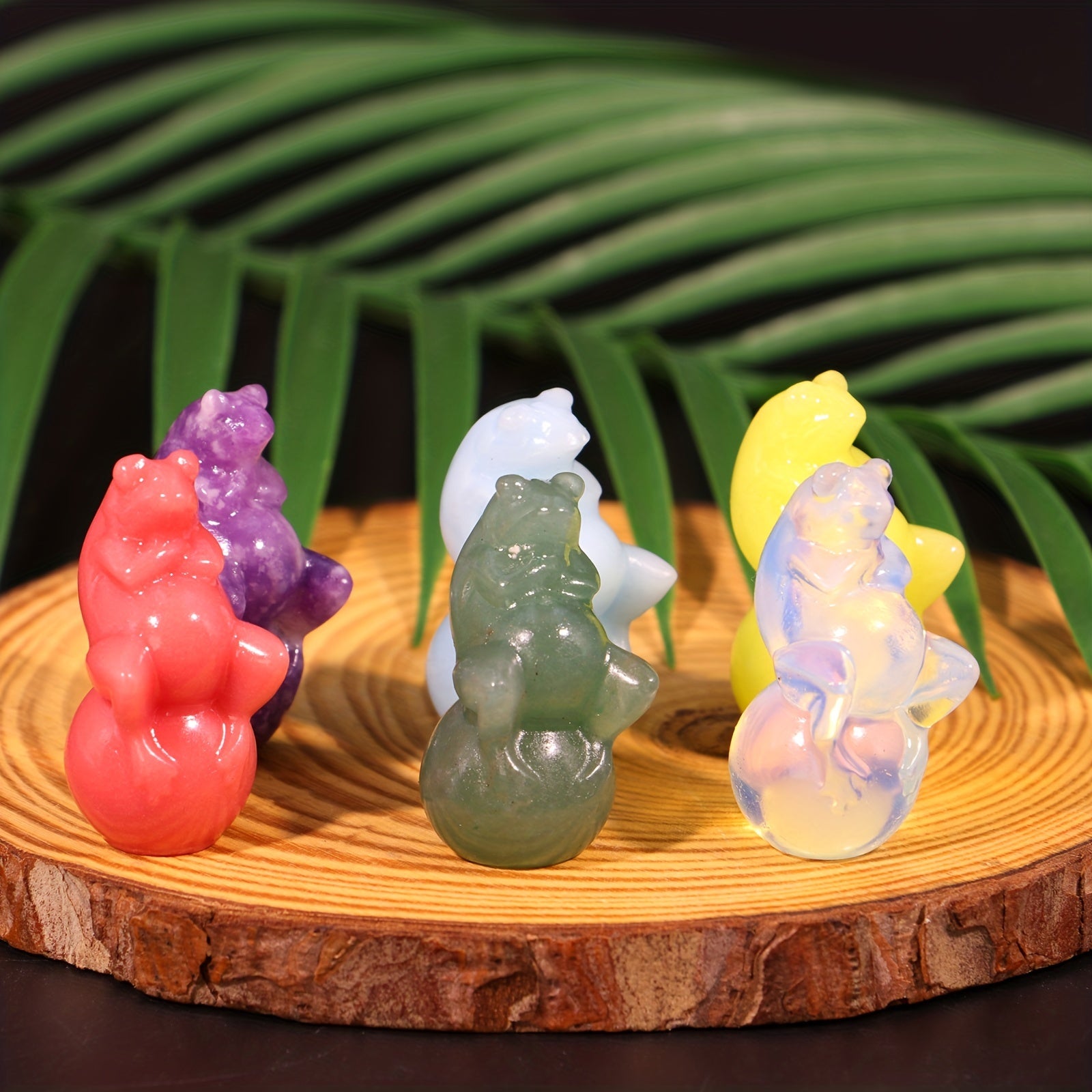 This beautiful frog statue is hand carved from opal, rose quartz, agate, and other natural stones to bring healing energy into your space. It can be used as a room ornament, reiki tool, or aquarium decor.
