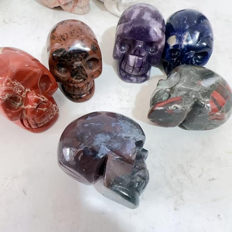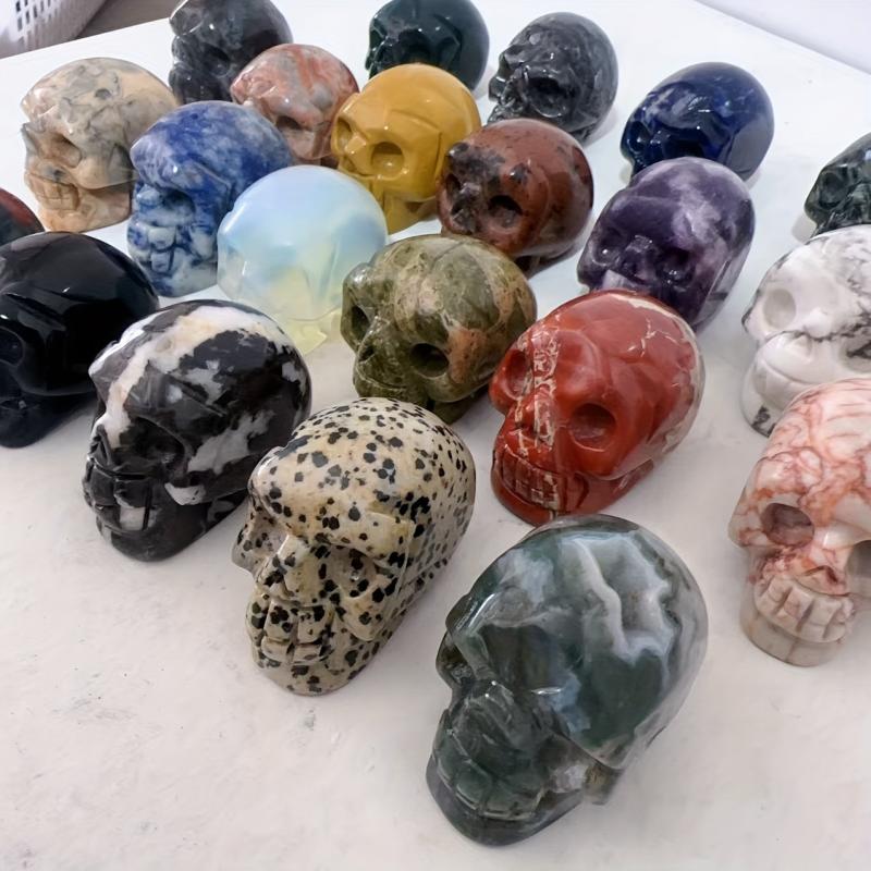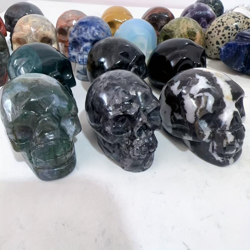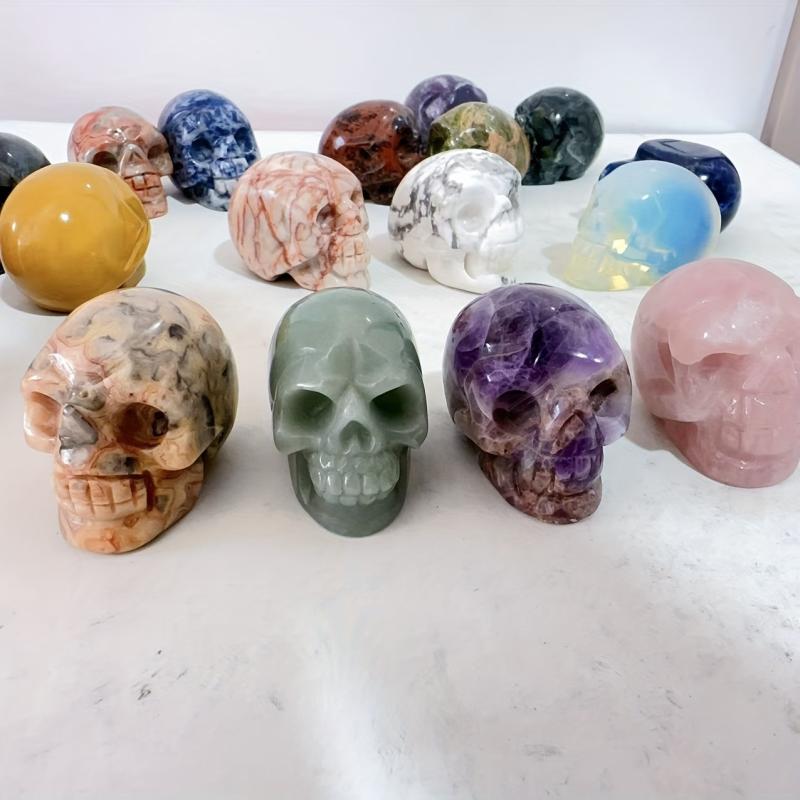 Bring a touch of mystique to your Halloween decor with these hand-carved quartz crystal skulls. Perfect for adding an eerie vibe to your home or party.