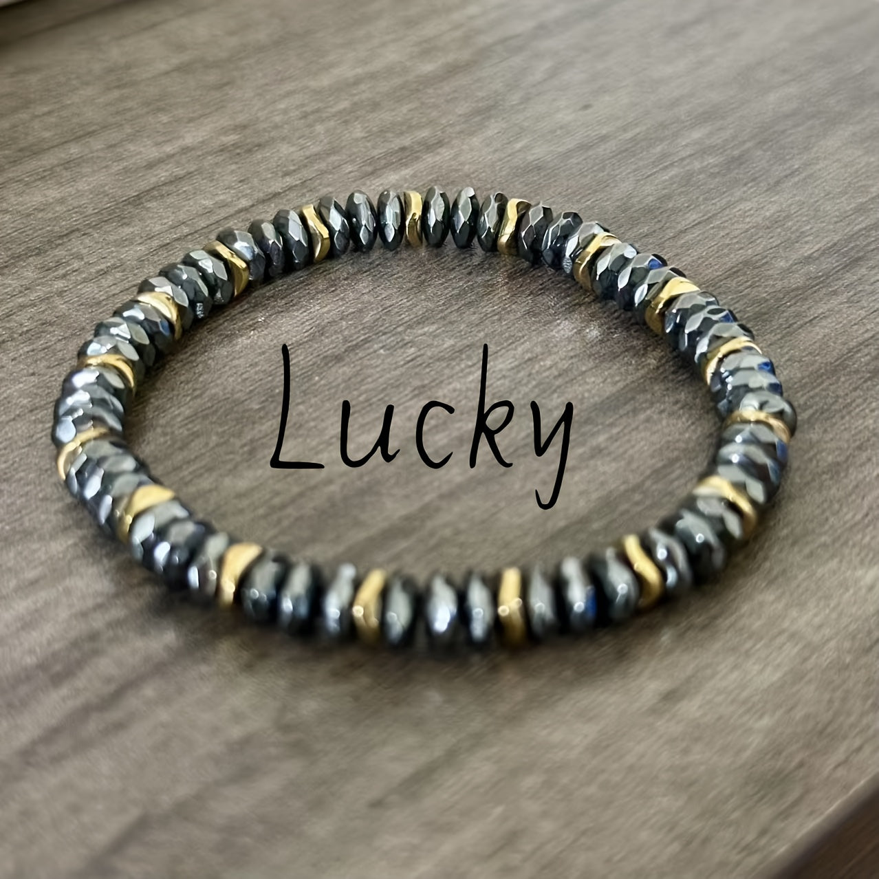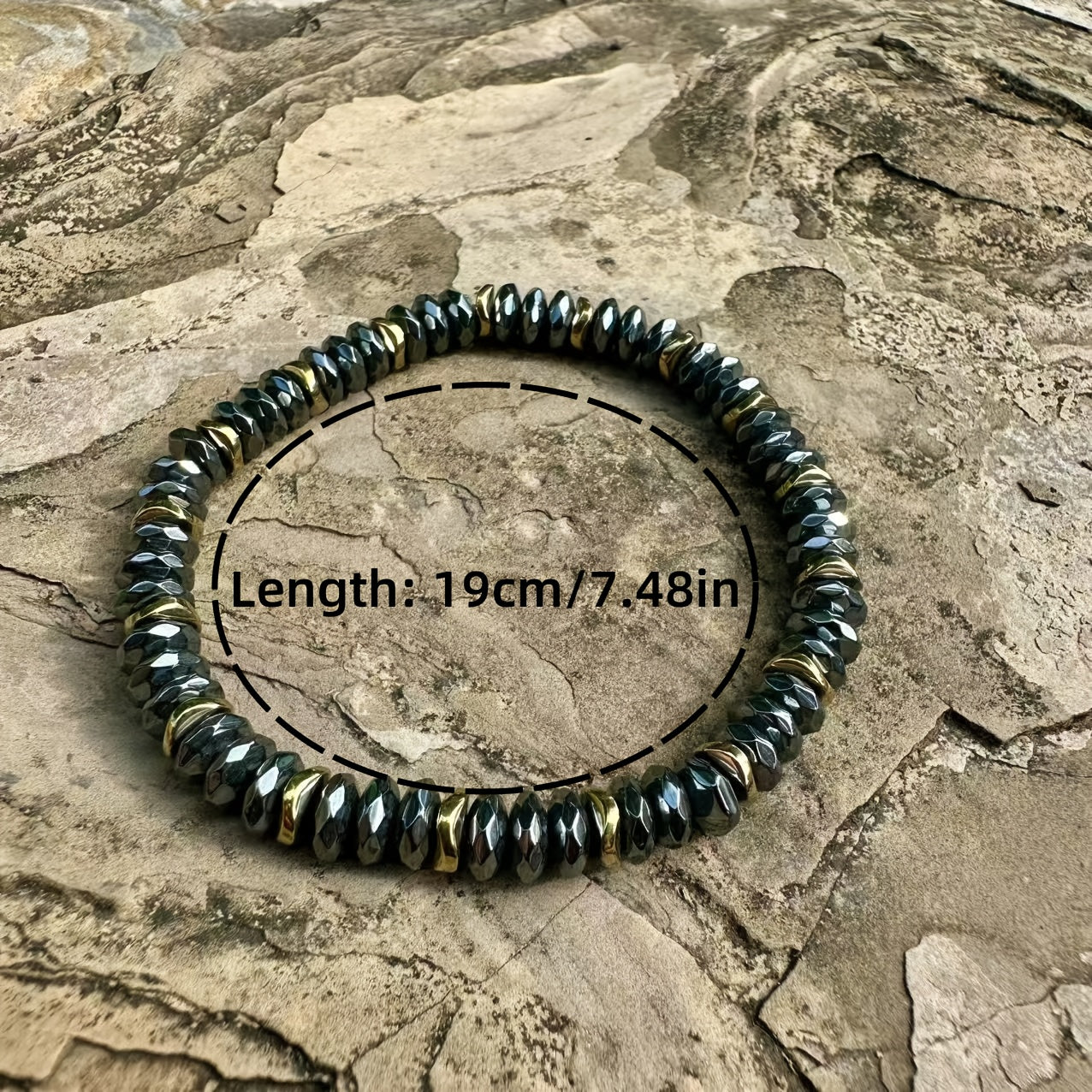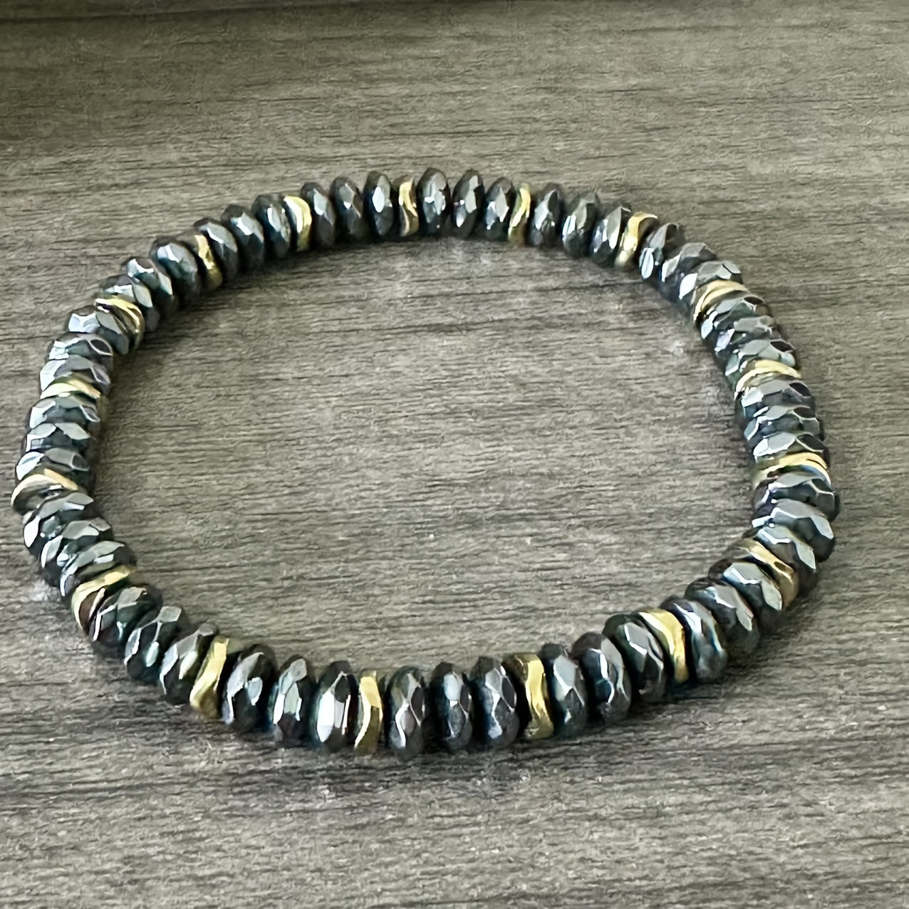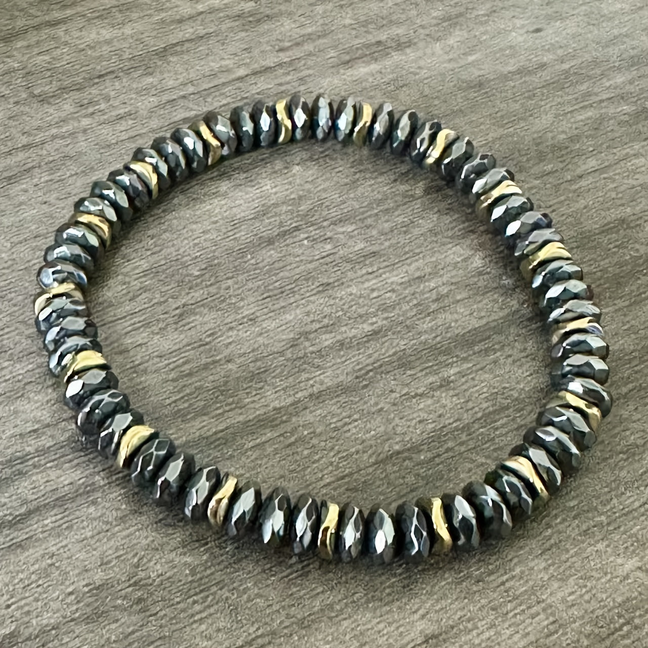 This bohemian style bracelet is designed with hematite beads and golden accents, perfect for success and grounding. It is suitable for men and women as durable everyday jewelry.