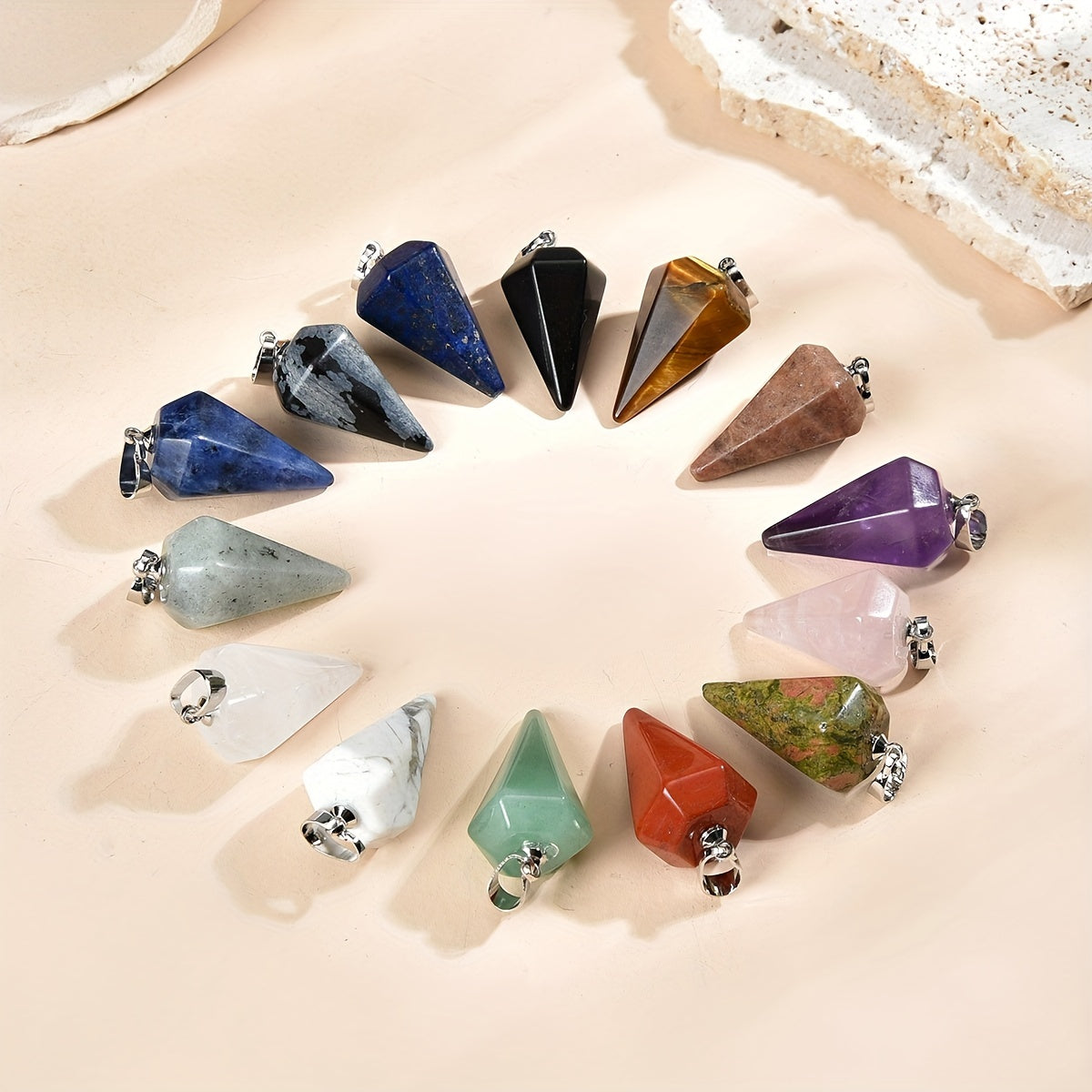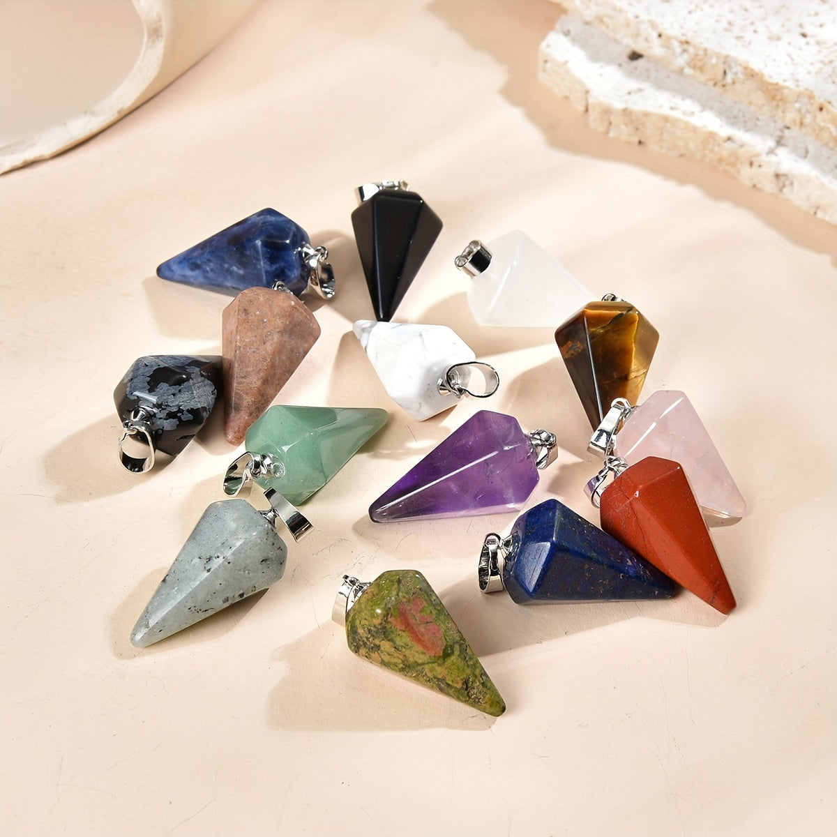 Beautiful hexagonal cone crystal pendant featuring a single stone of Amethyst or Lapis Lazuli. Perfect for enhancing your energy and style.
